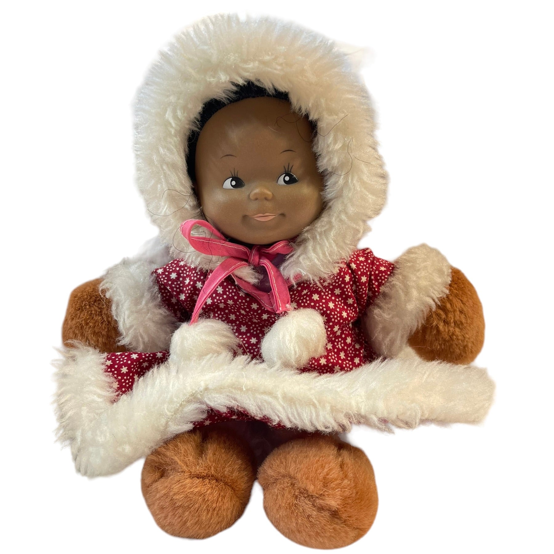 This sweet 10" baby doll is dressed in a traditional, 'fur' trimmed parka & mukluks. A lovely little baby doll for play, or as part of a collection.