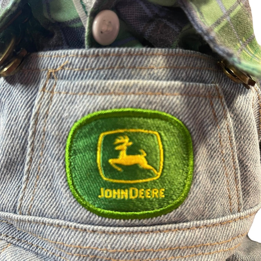 15" Bear Works Golden Brown Teddy in John Deere Coveralls & Green Plaid Shirt. Great used condition. Very cute!