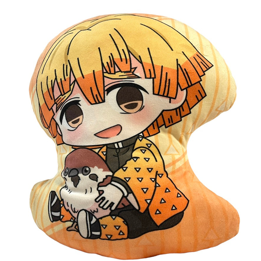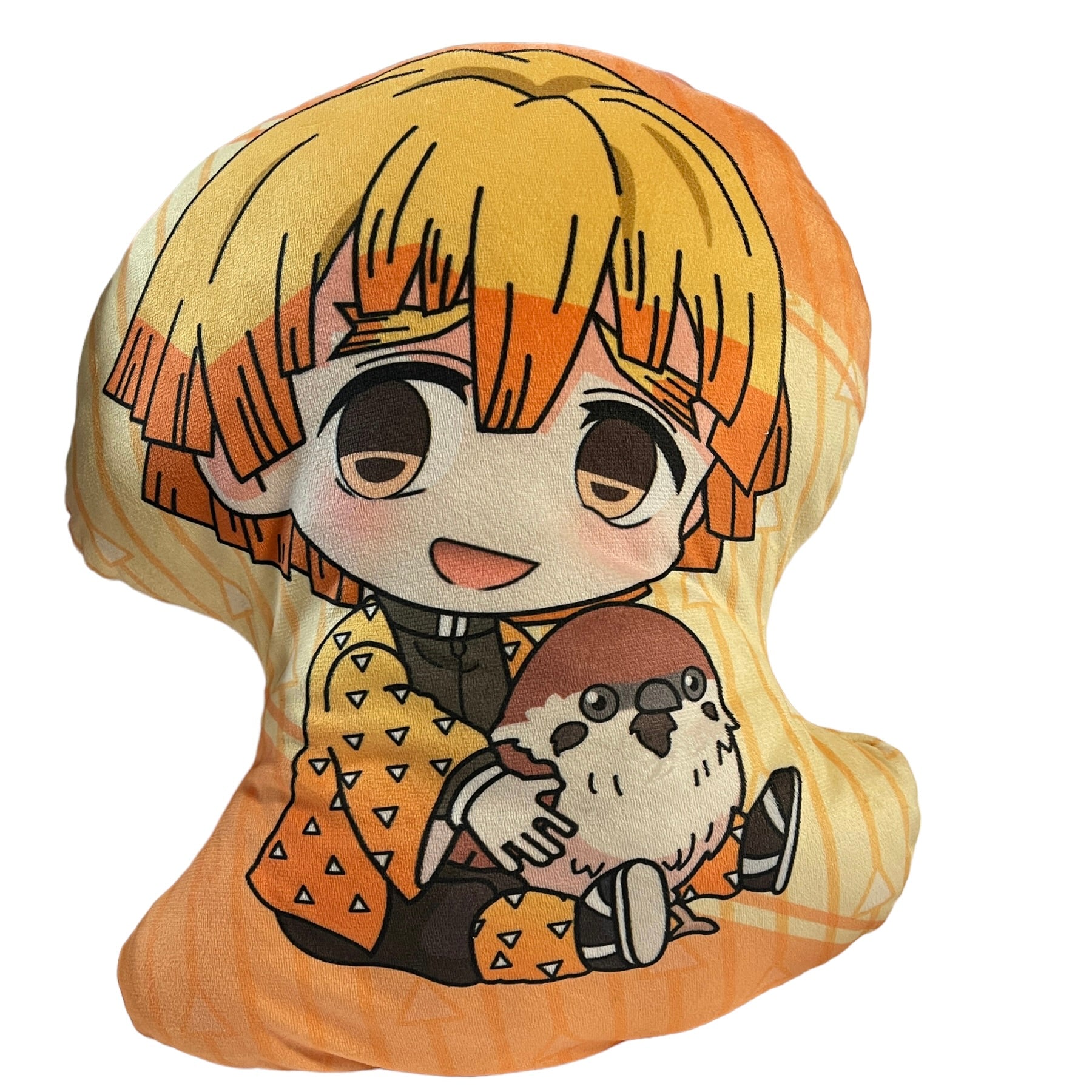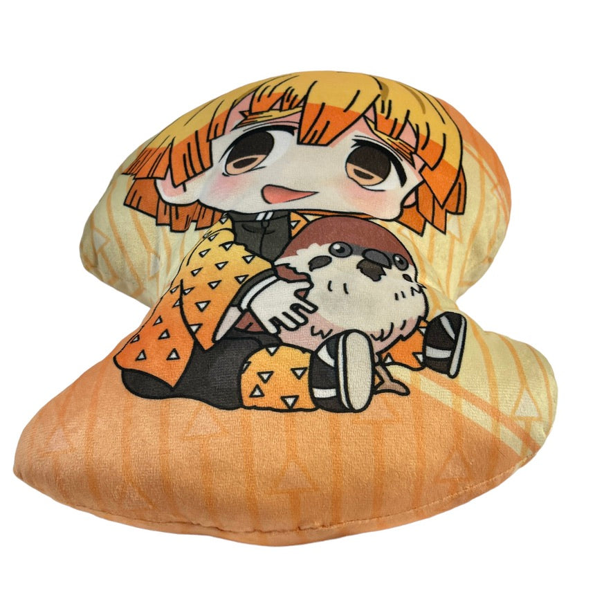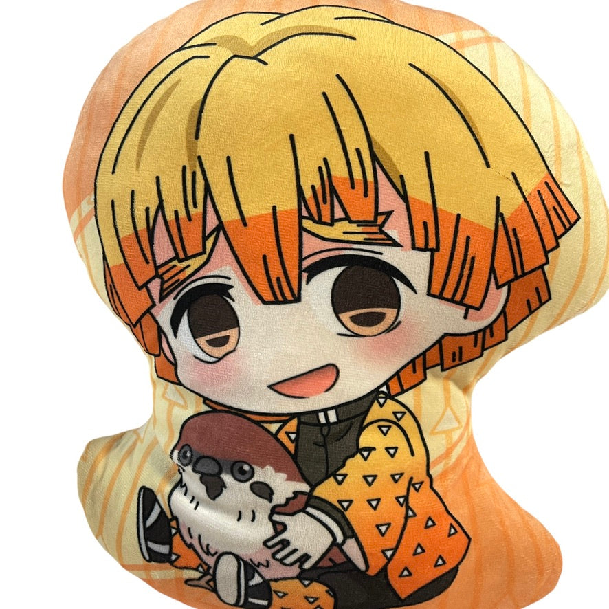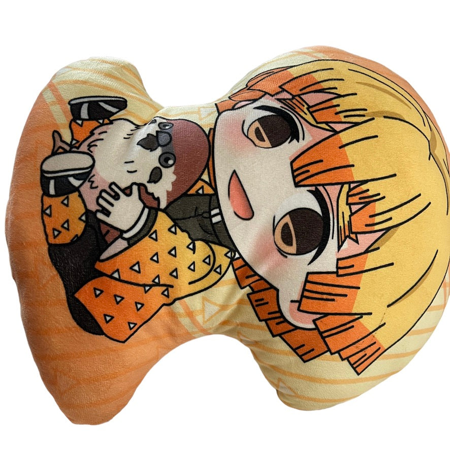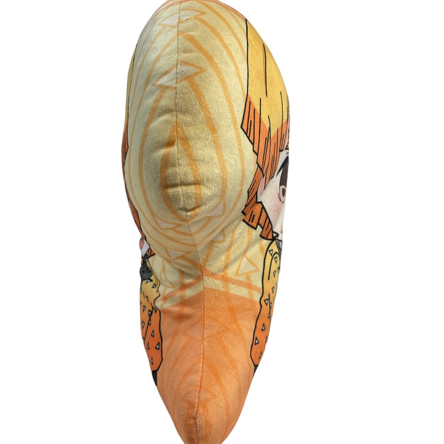Anime Demon Slayer Hashibira Inosuke Plush, 16" Double Sided Pillow in bright yellows and oranges and browns. A ultra soft and cuddly pillow! Preowned and in excellent condition.