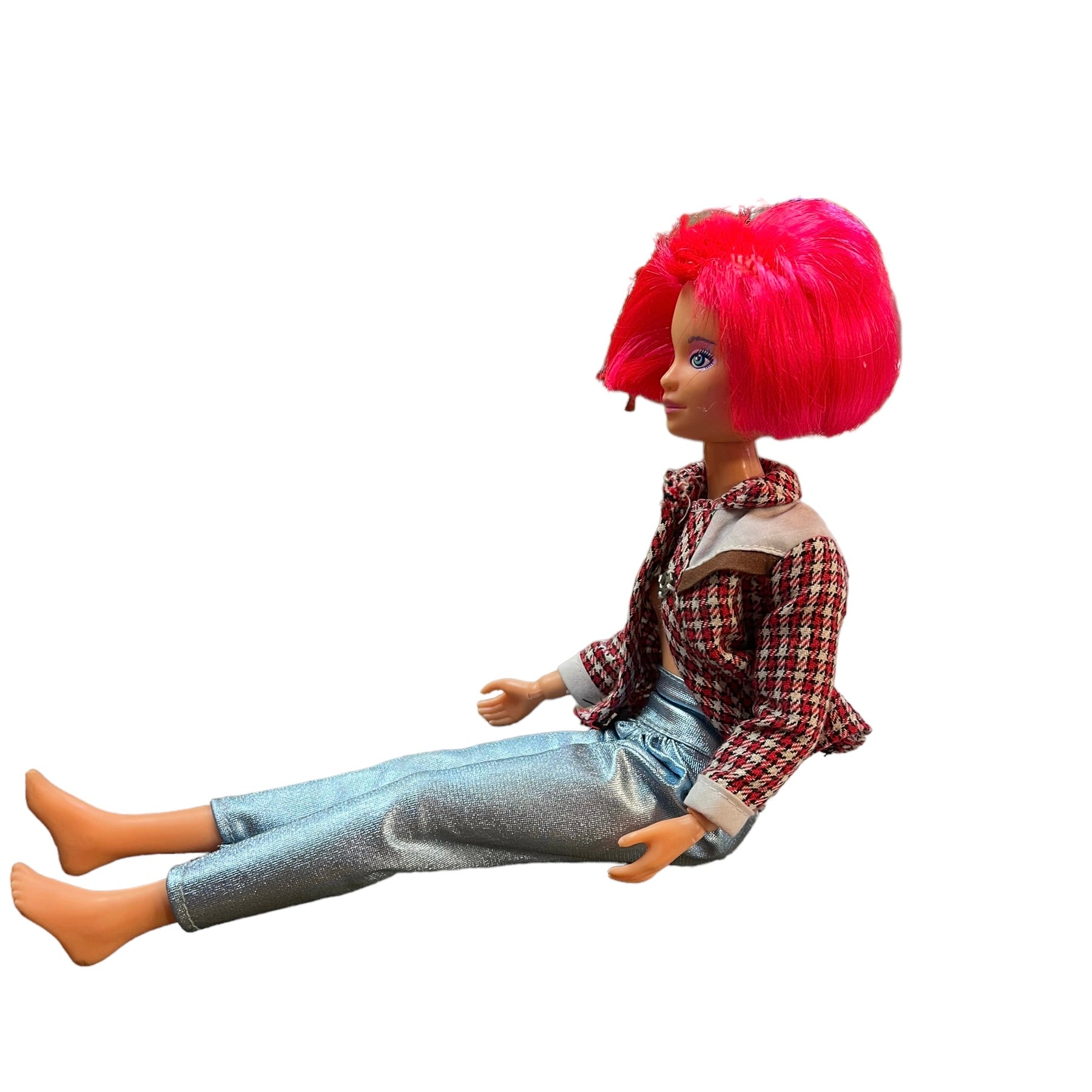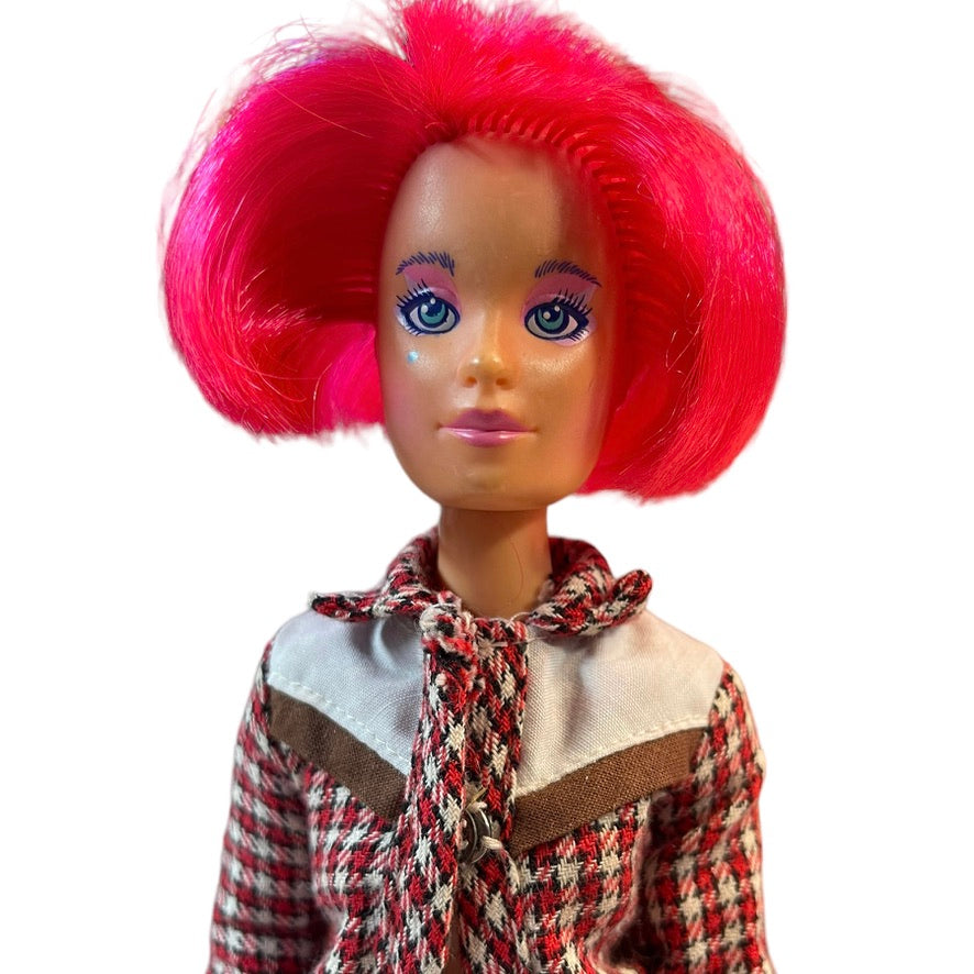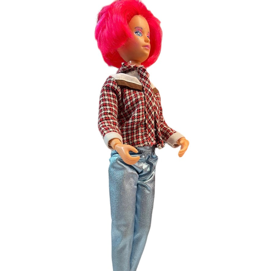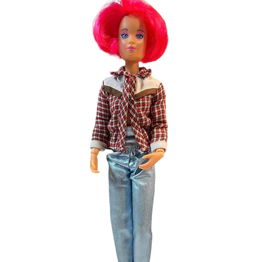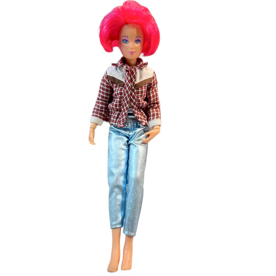 Fabulous 1985 Vintage Hasbrow Jem of the Holograms Truly. Outrageous Kimber is Wearing Original Pants with a Vintage Western Style Shirt. Kimber can move to a seated position as well as from side to side. Kimber is in excellent preowned condition.
