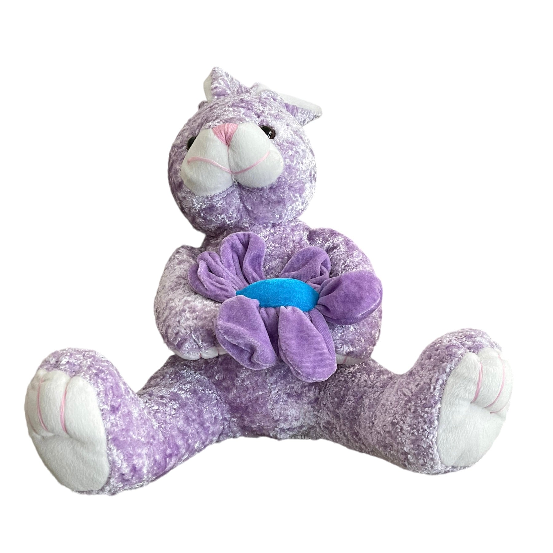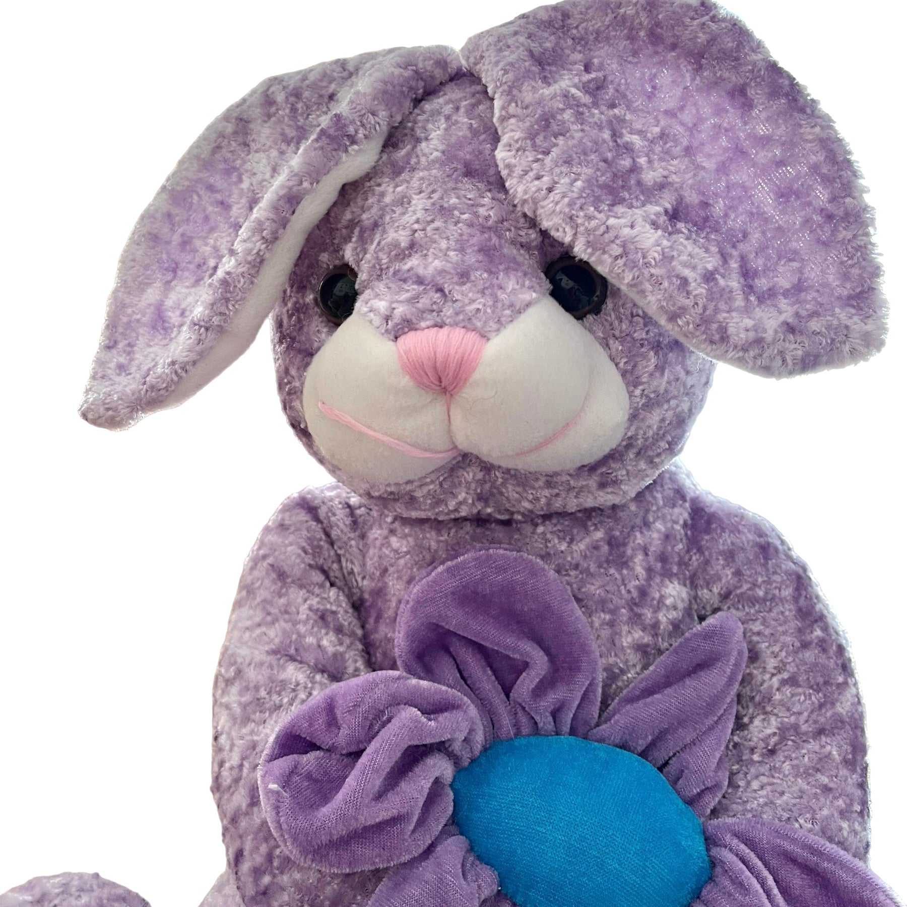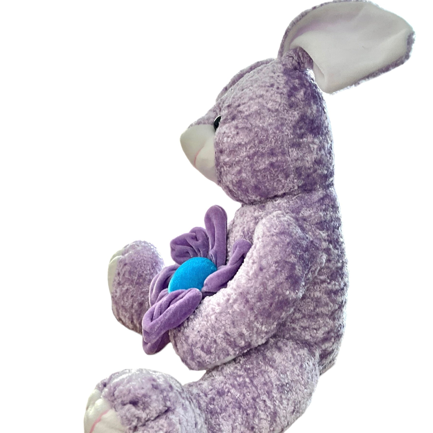 Cute Easter Bunny, Lavender Frosted in velvety plush holding a big plush flower. Loblaws, 2004. Very good Vintage Condition.