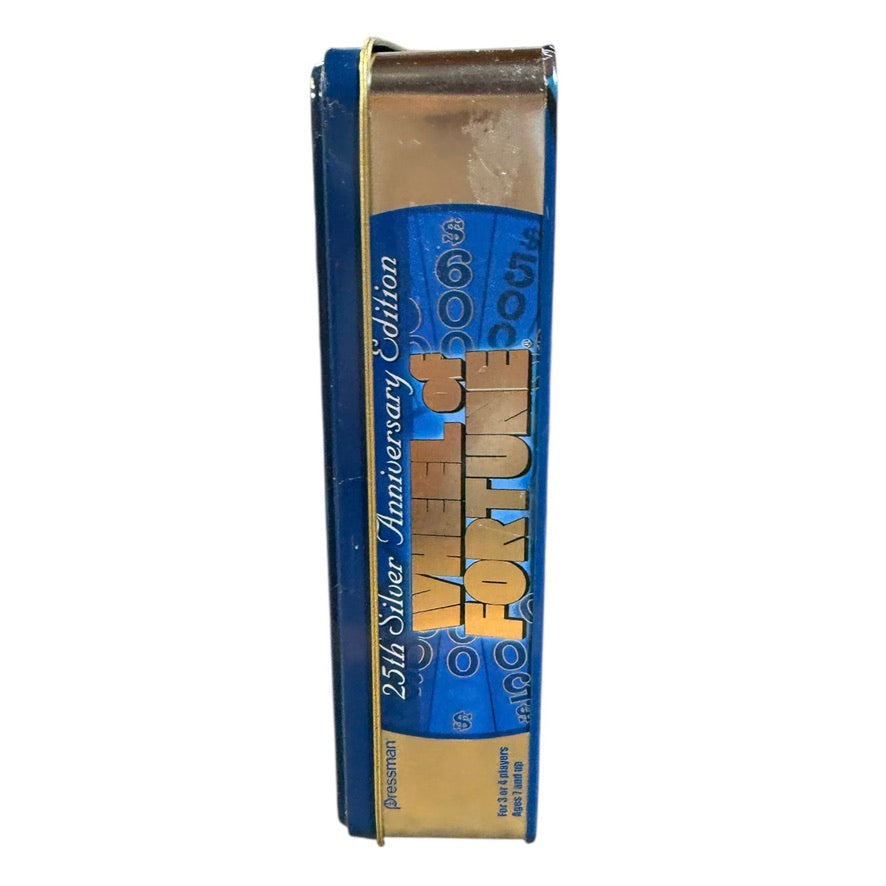Home Anniversary edition of 'Wheel of Fortune', by Pressman , preowned, unused, Packaged in a handy silver and blue toned tin.