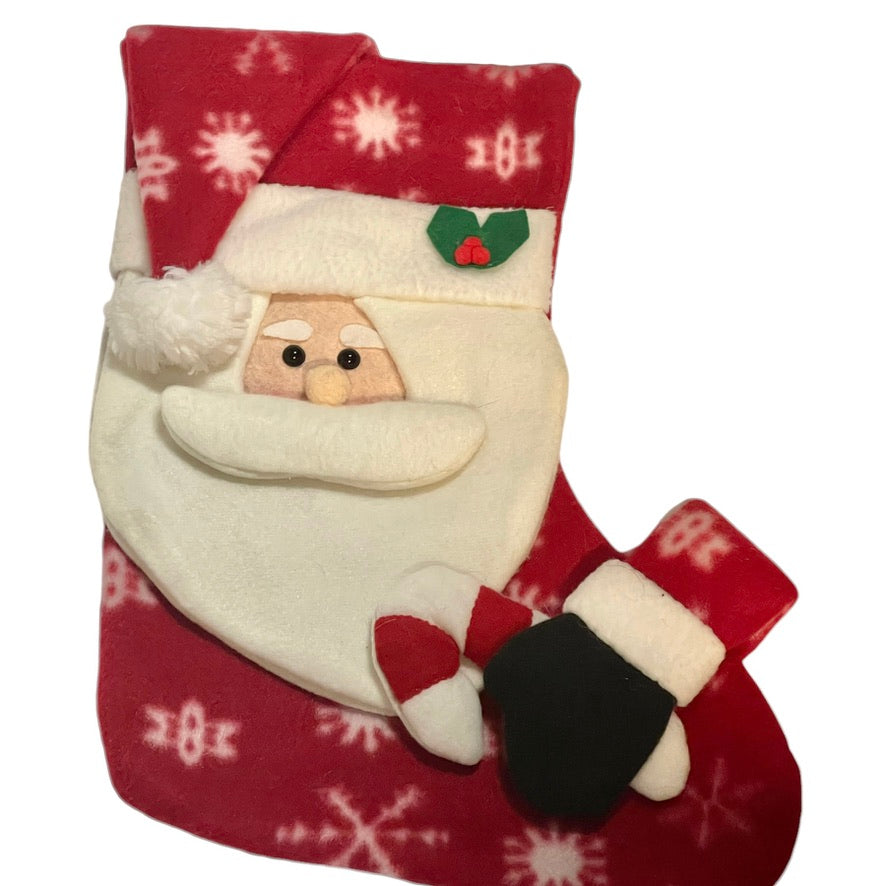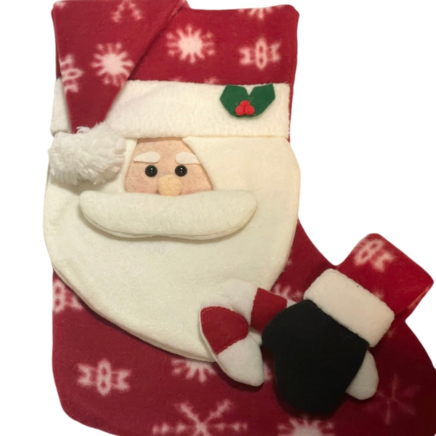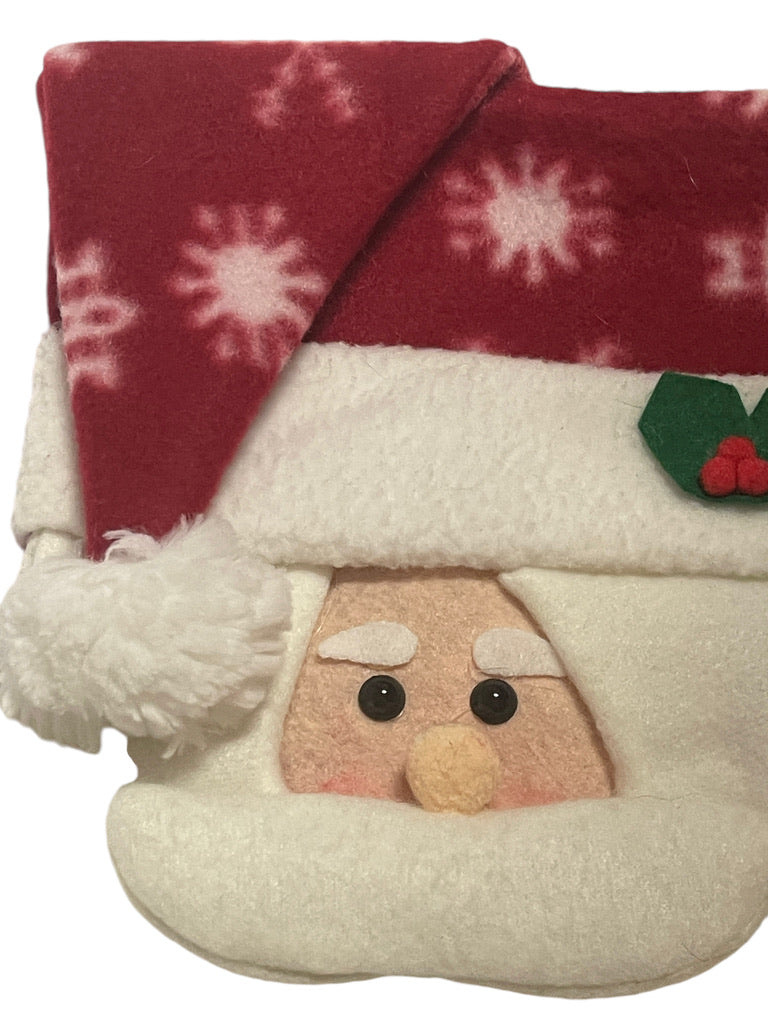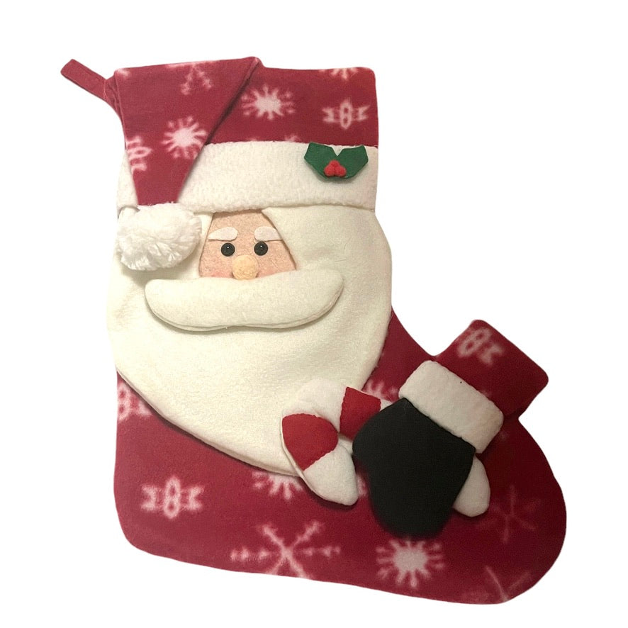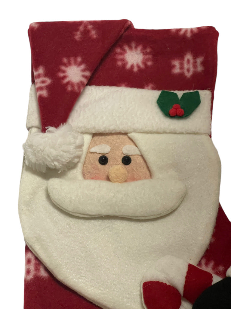 3D Santa in a Nightcap Christmas Stocking, 15" Tall, 11" Foot, Padded Embellishments, EUC
