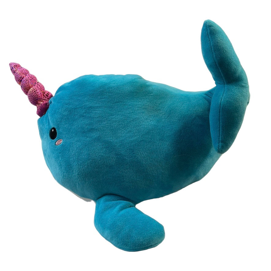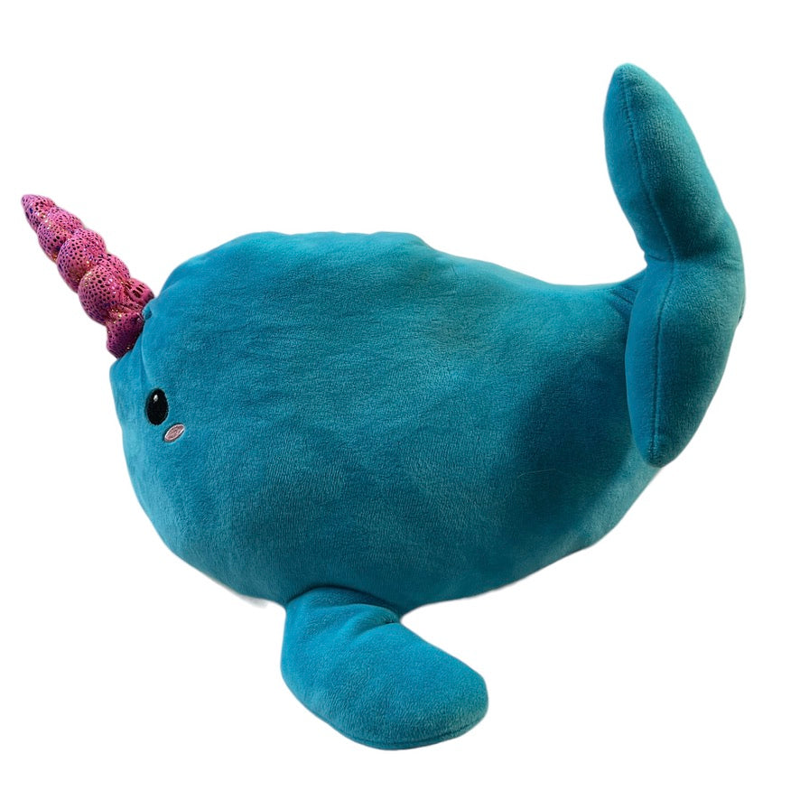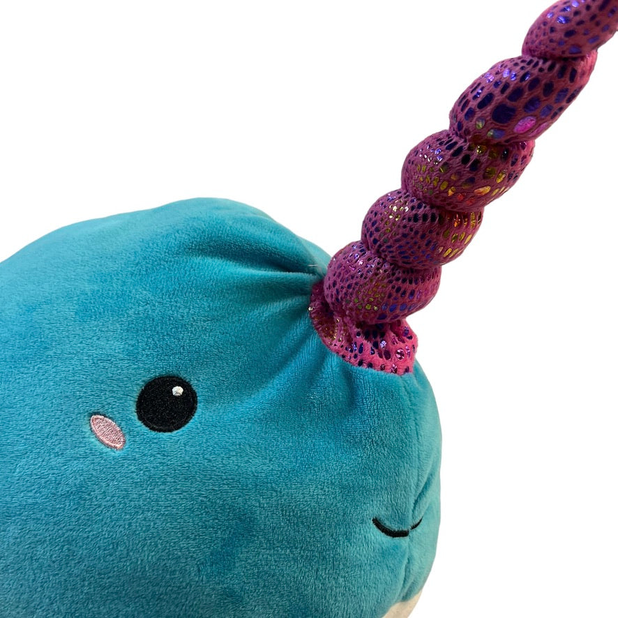 Stuffed Turquoise Narwhal Pillow Plush Toy with Pink Sparkle Tusk 15"
