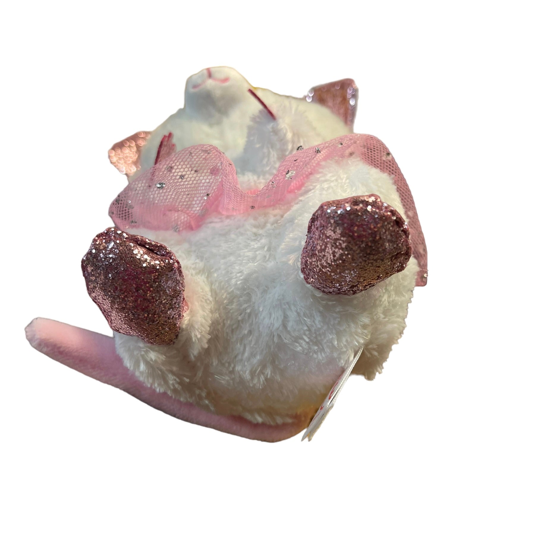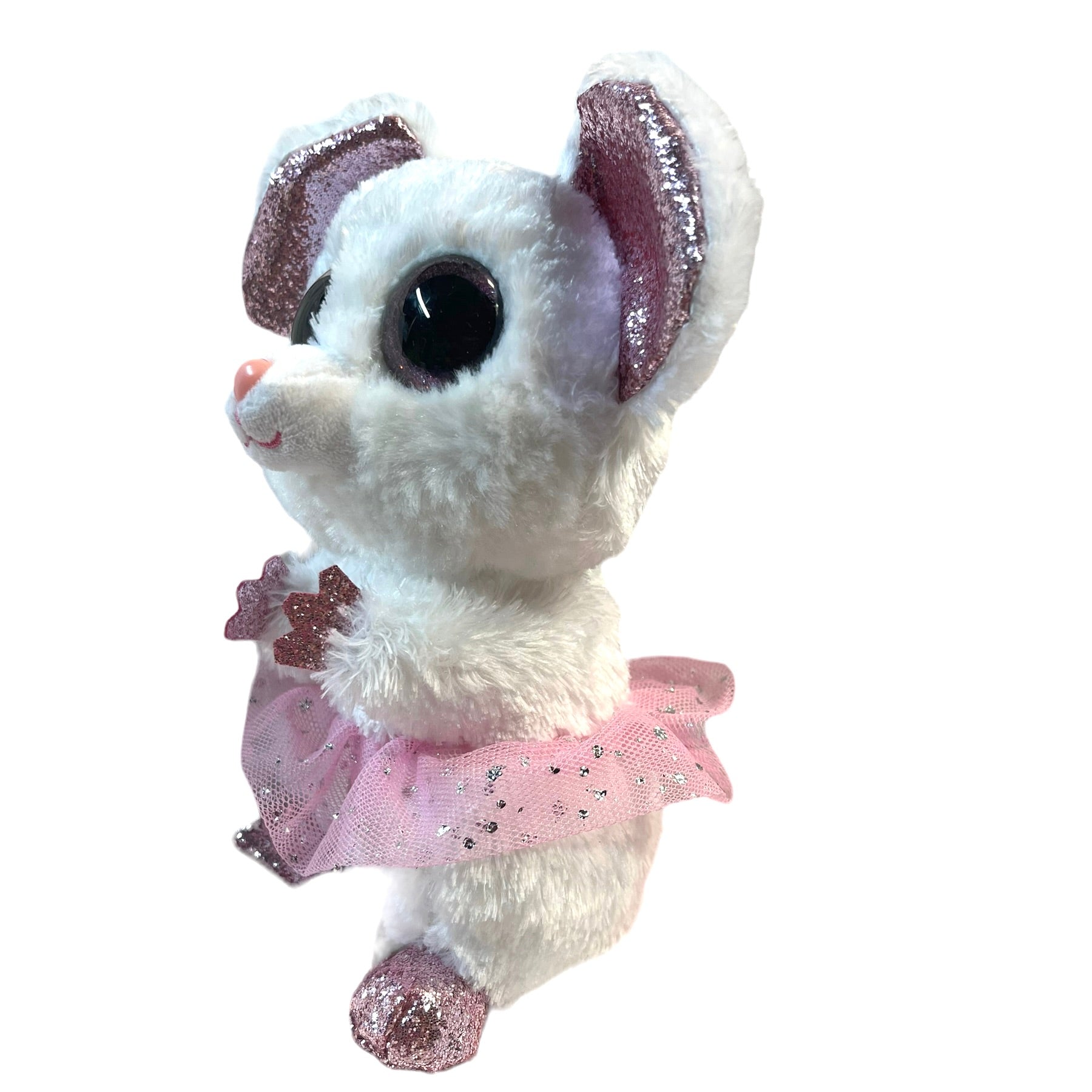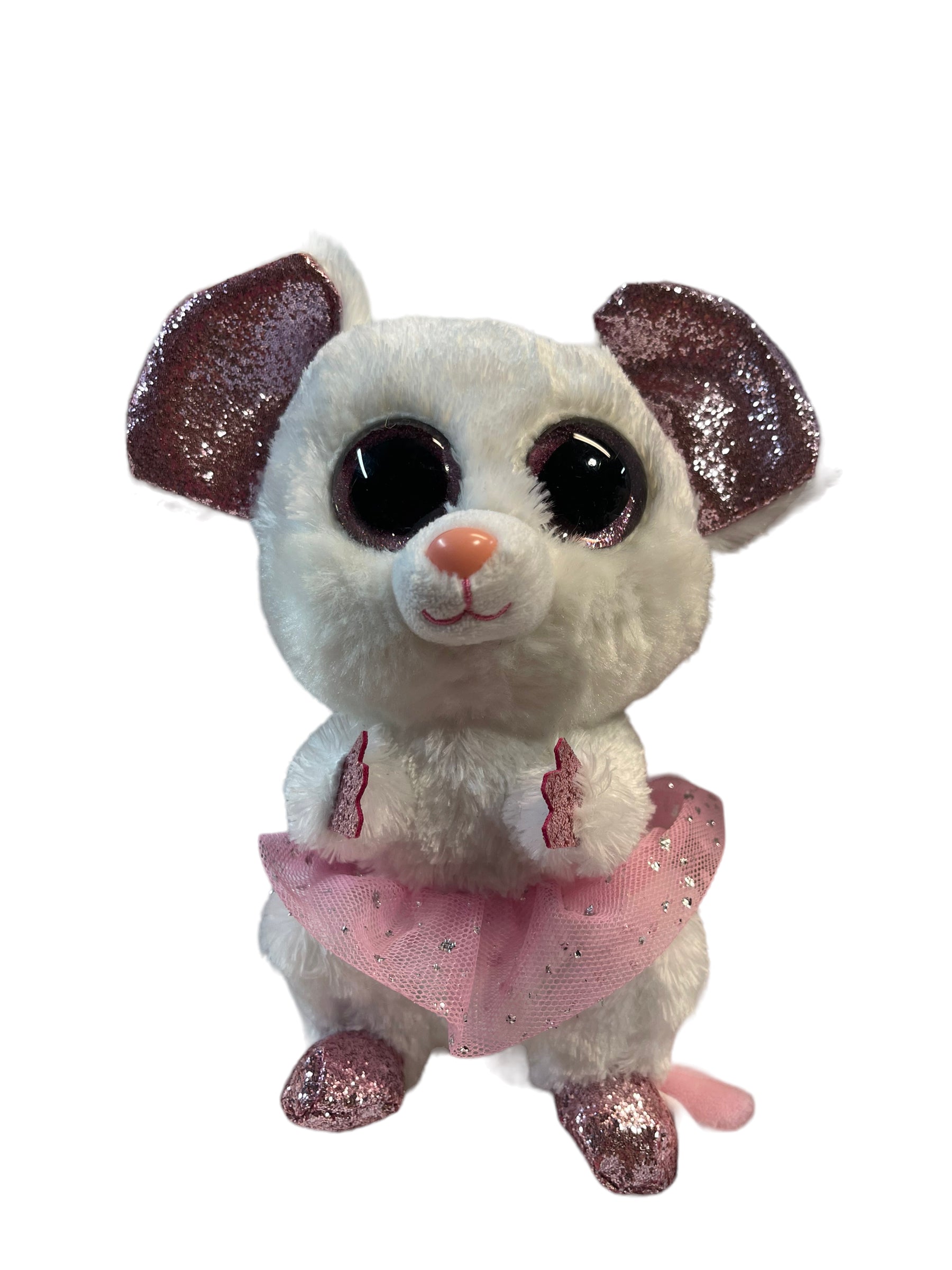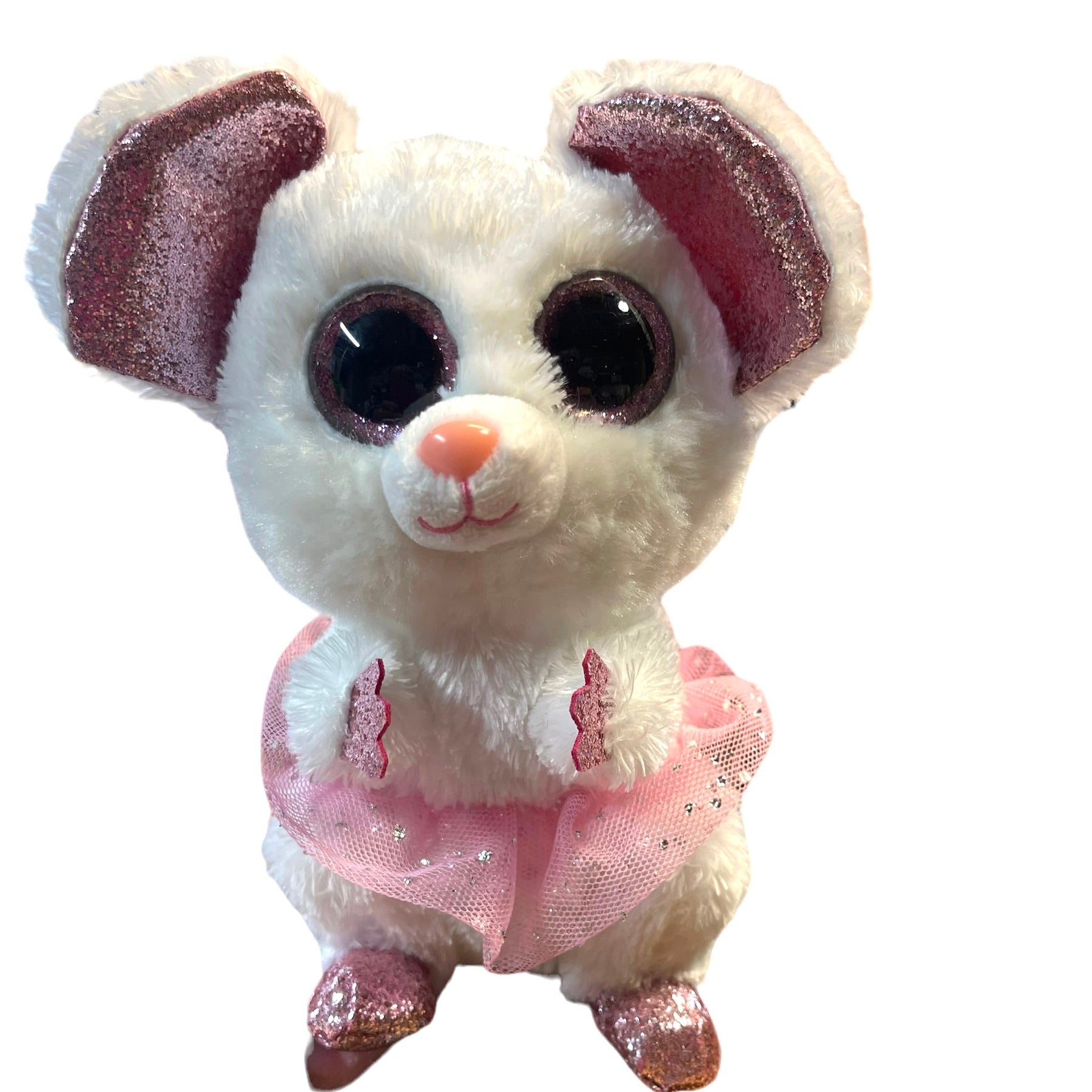 Ty Silk Beanie Boo, 'Nina' White Ballerina Sparkle Mouse Plush in Pink Tutu. Enormous Sparkly eyes with Sparkly ears, hands and feet. So Sweet!
