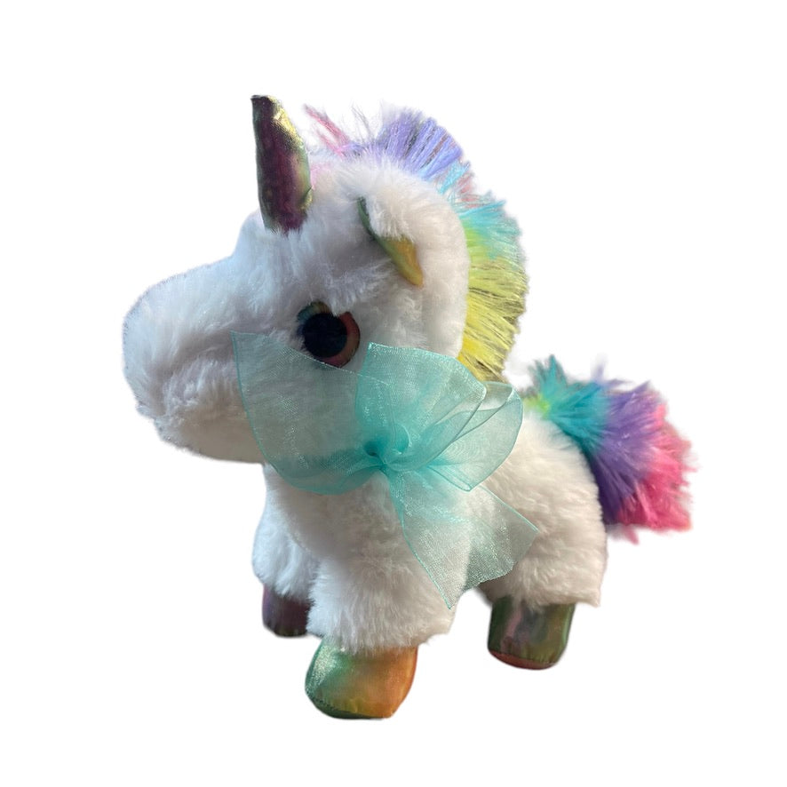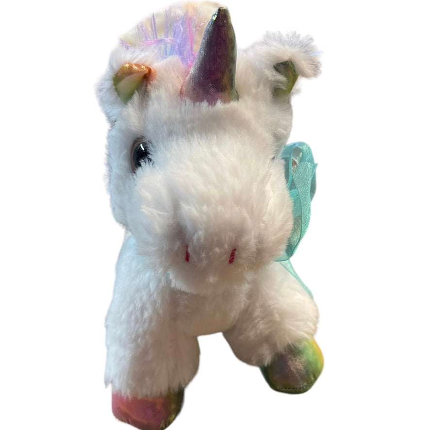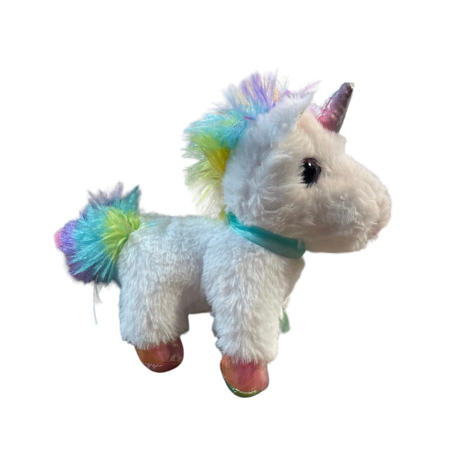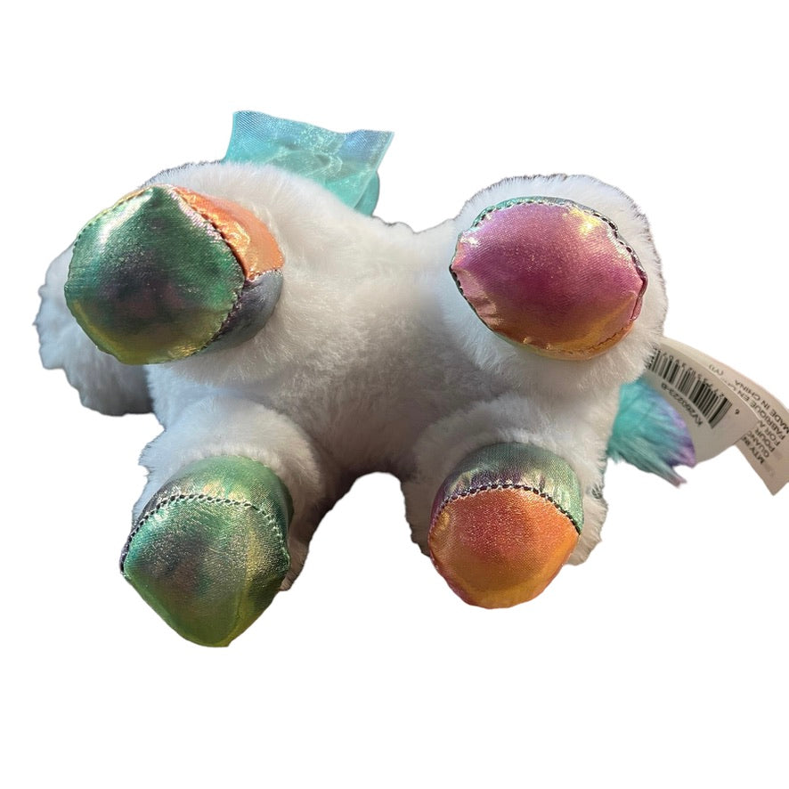 7" White Unicorn Stuffed Animal Plush With Rainbow Horn, Hooves, Ears and Tail