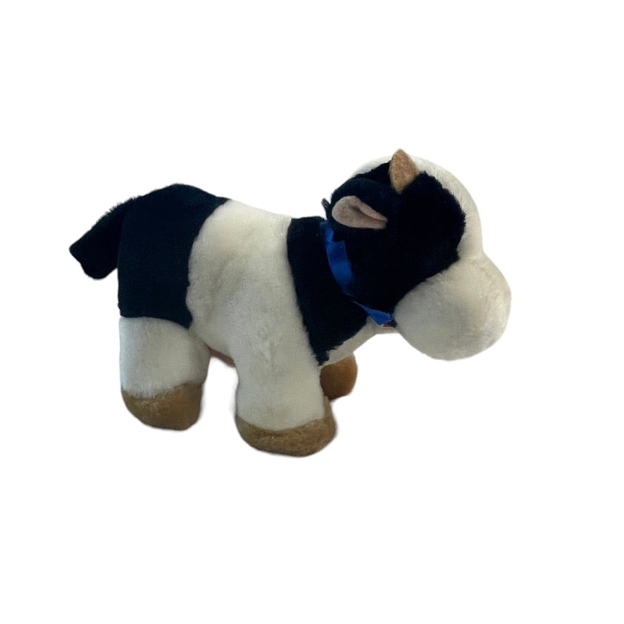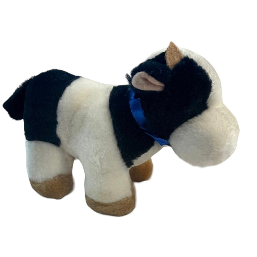 Sweet 8" Vintage Dakin Cow, Excellent Preowned Condition Complete with Tags, Blue Bow, Pink Udder.