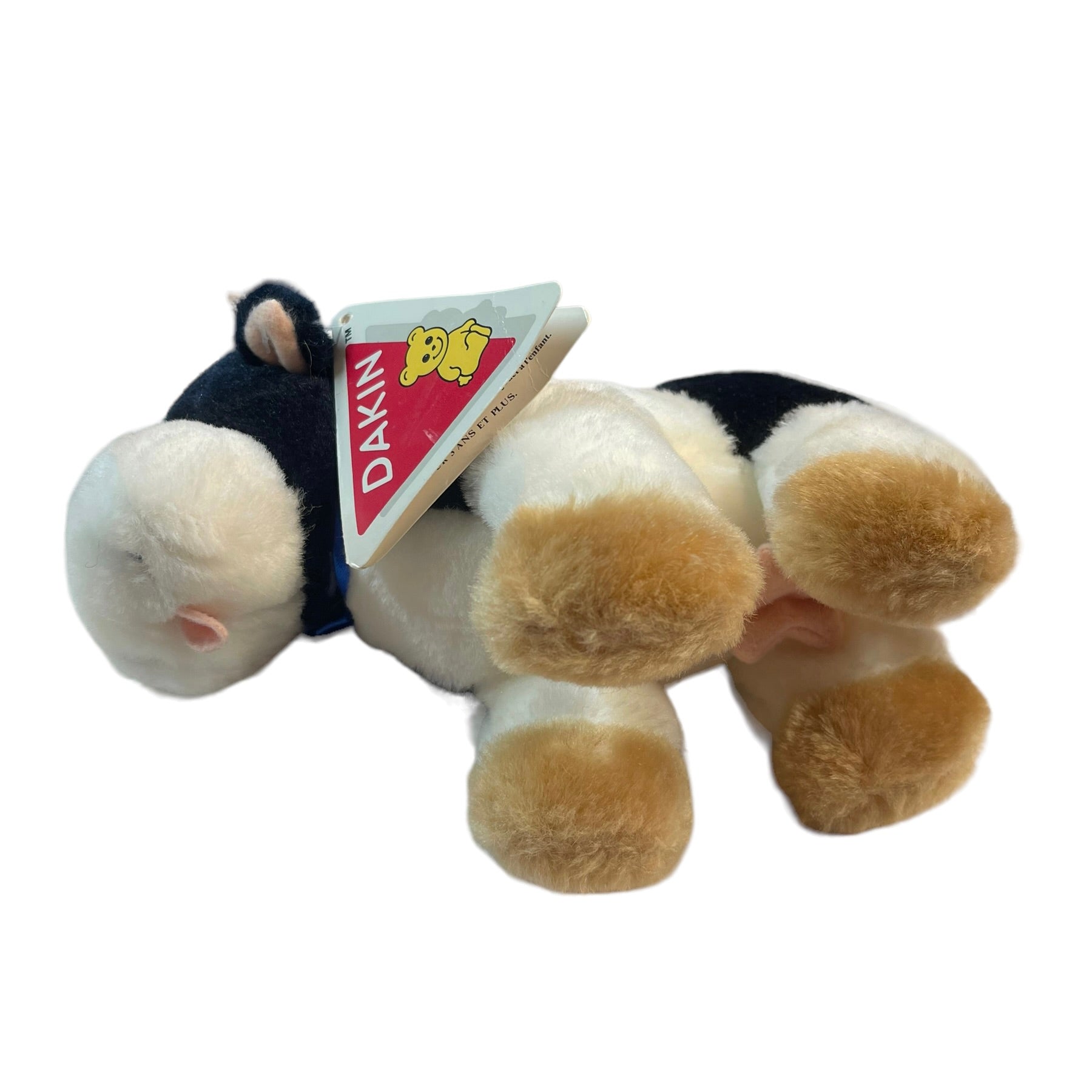Dakin 8" Vintage Plush Cow Stuffed Anima Toy with Tags Blue Bow, Pink Udder, EUC