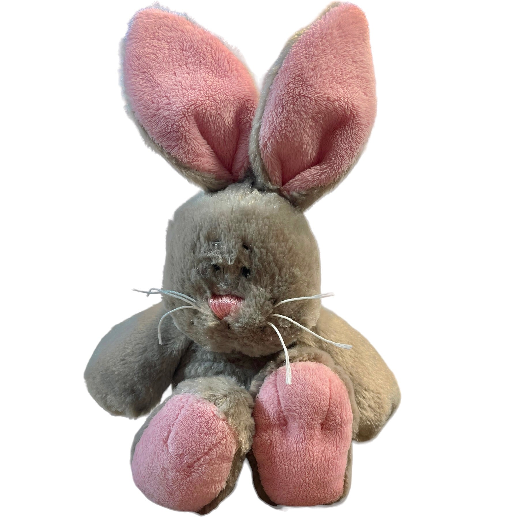 Charming Grey 13" Bunny With Pink Lined Ears, Feet and a Silky Pink Nose GUC