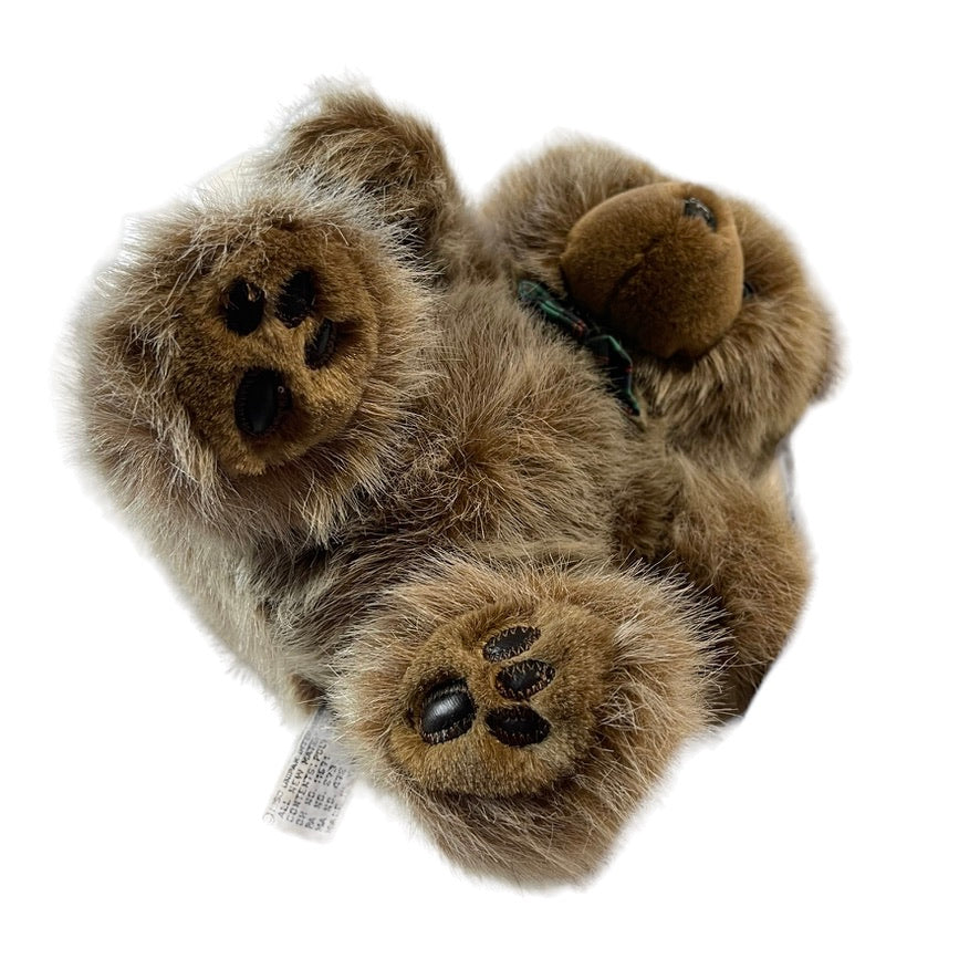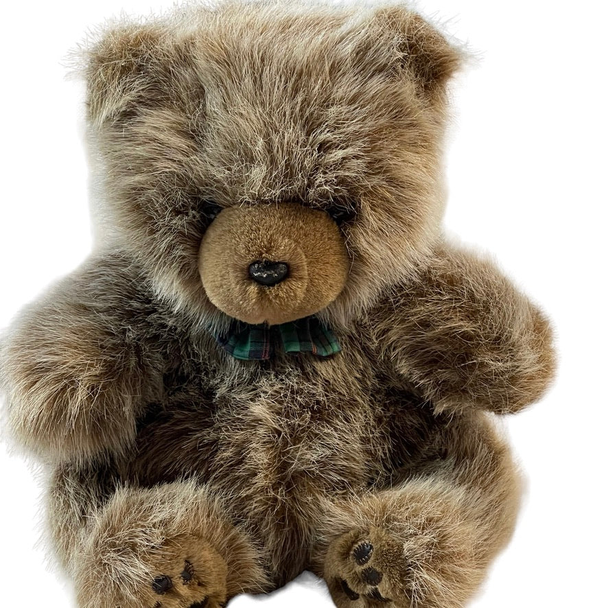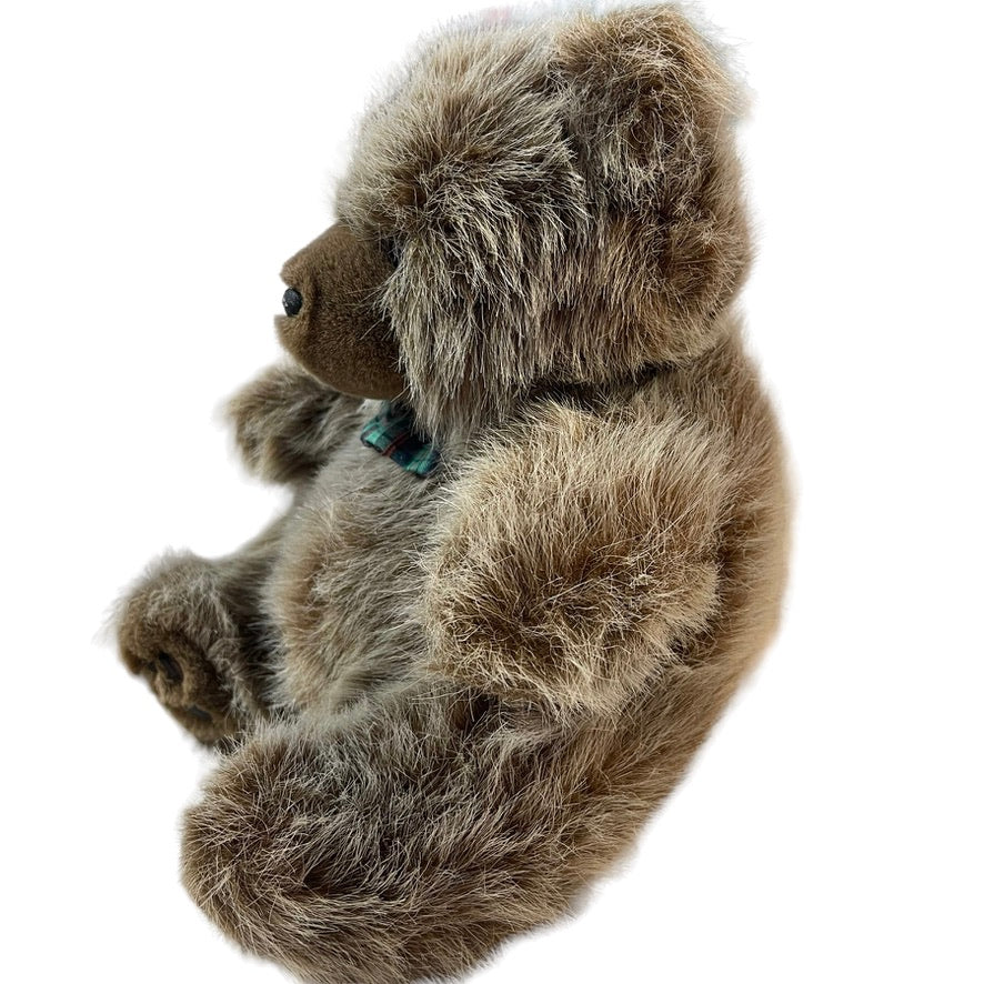 Incredibly cuddly frosted brown Unipak Teddy Bear complete with Tartan Bowtie. Soft plush muzzle, bead eyes & brown pads on feet. A beautiful little guy.