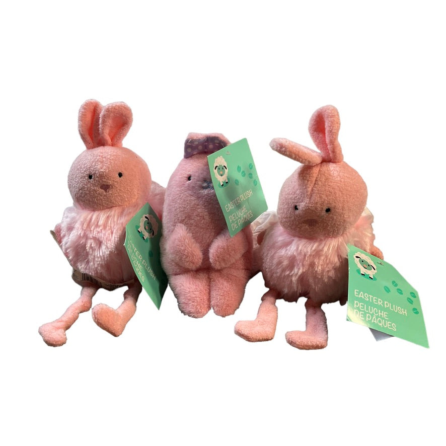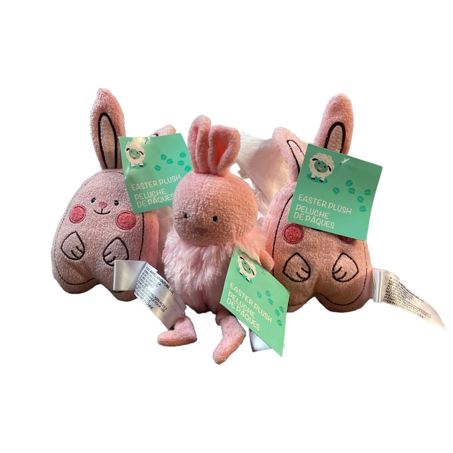 Animal Adventure Easter Plush Lot of 3 Pink Bunnies, 1 Roly Poly, 2 Embroidered