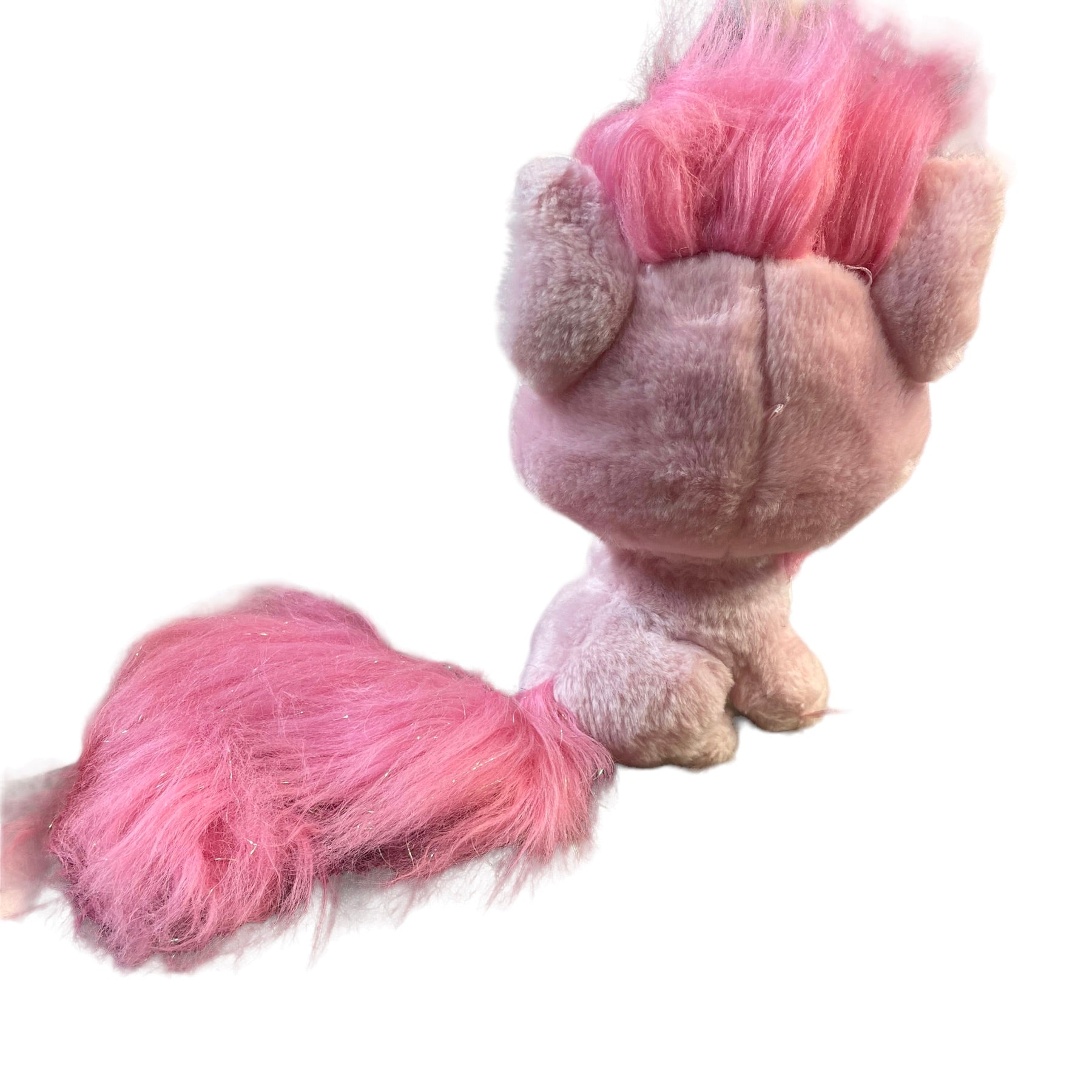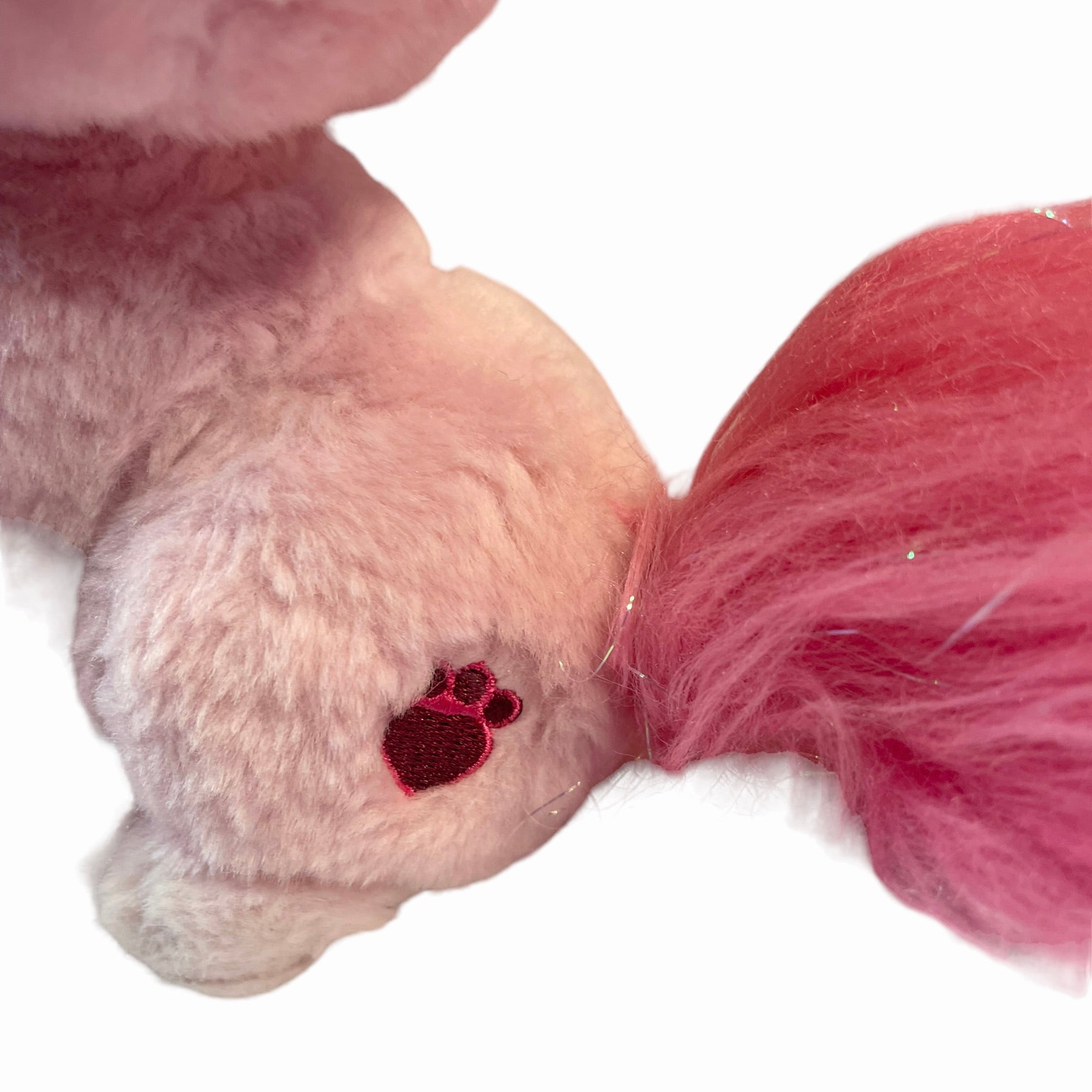 Beautiful Aurora is preloved and is looking for a new home. She has a sparkly long tail and a puff of bright pink hair, embroidered face and little pink heart toenails. Somehow she has misplaced her crown, but woud be open to a replacement. She is in very good played with condition.