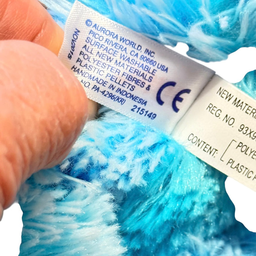 Aurora Turquoise Frosted Variegated Shaggy Stegosaurus Plush, 10" Seated, Bead Eyes in EUC