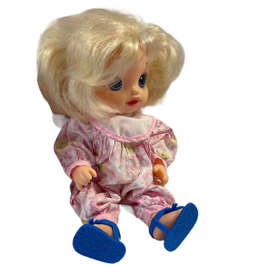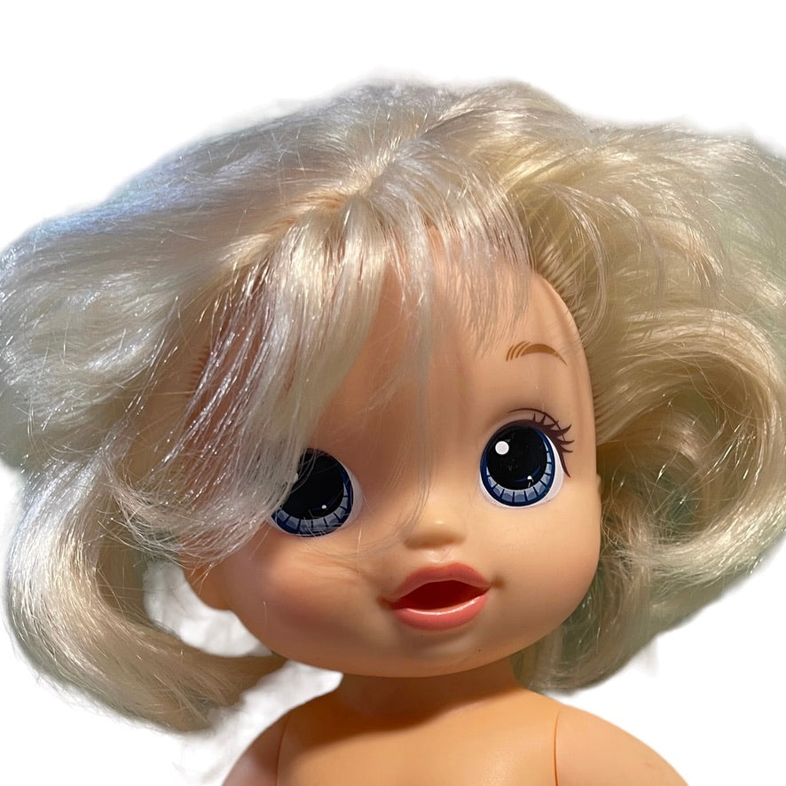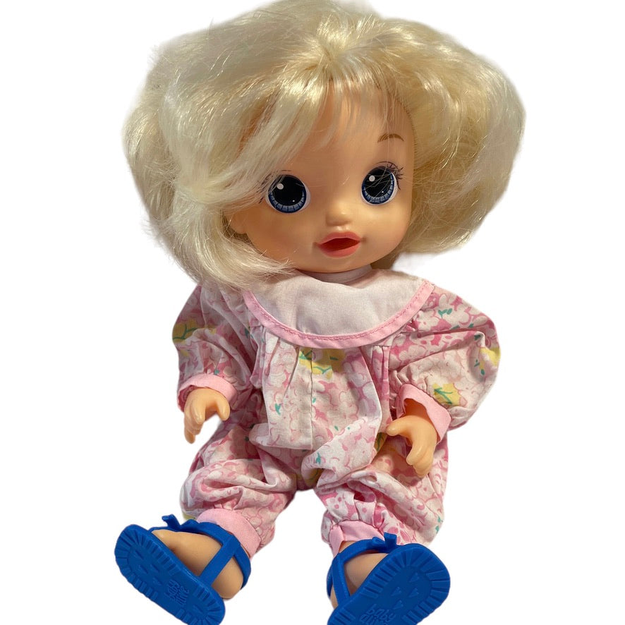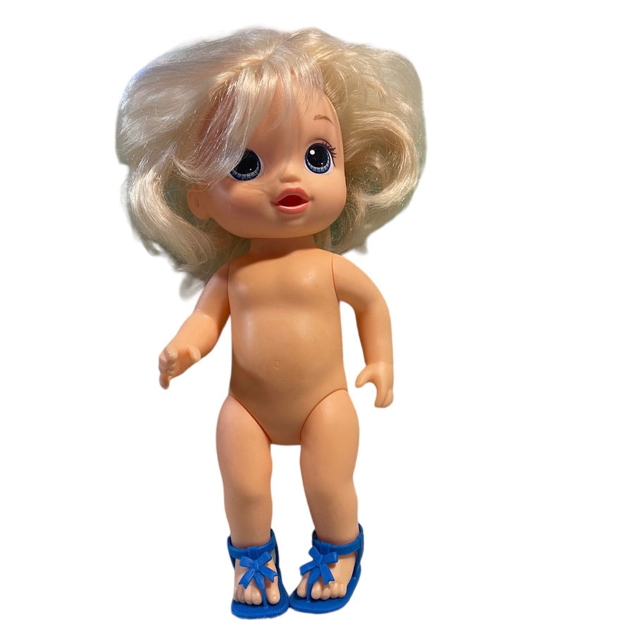 Baby Alive Vinyl 13" Doll Blond Blue Eyed Darling with Pretty Blue Sandals!