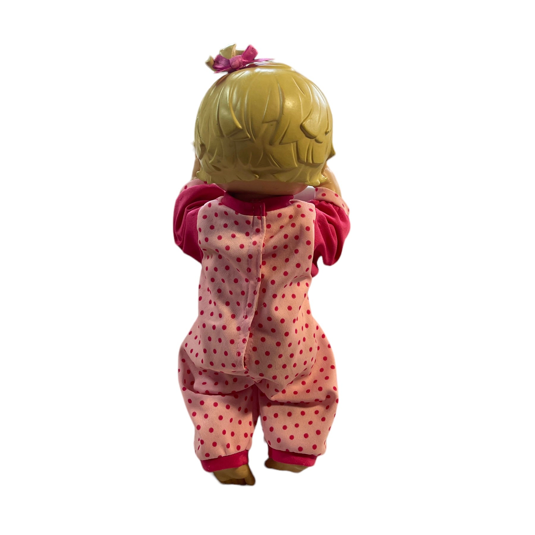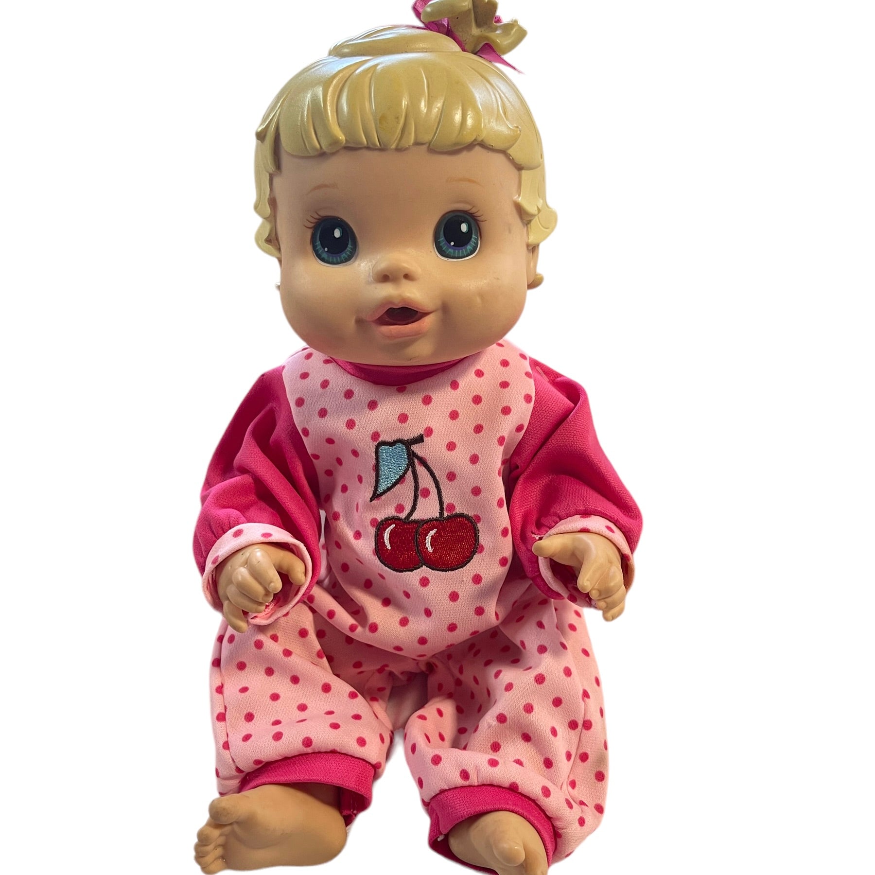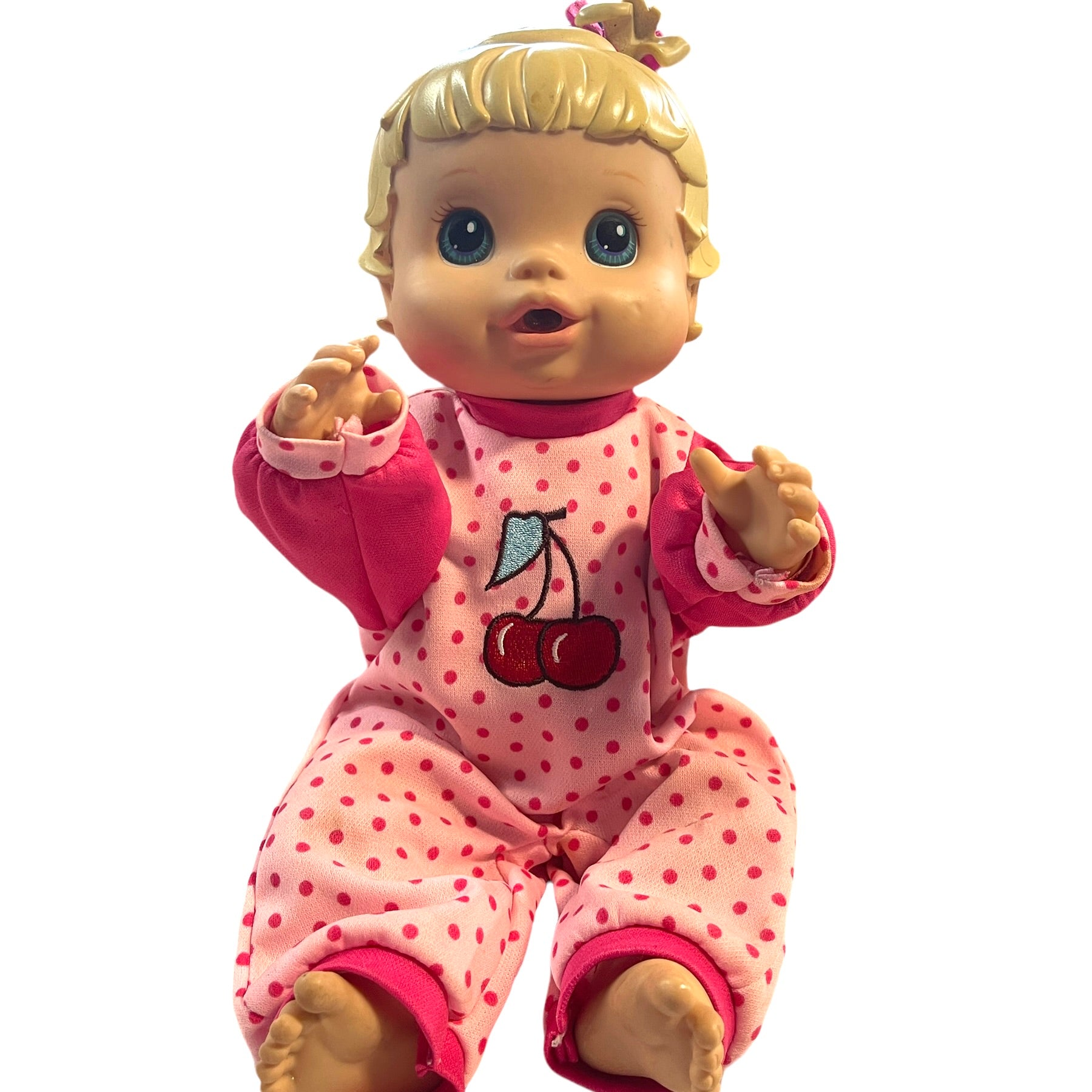 Baby Alive Drink & Wet 13" Baby Doll Hasbro 2008 Pink Romper with Cherries Blond/Blue Eyes