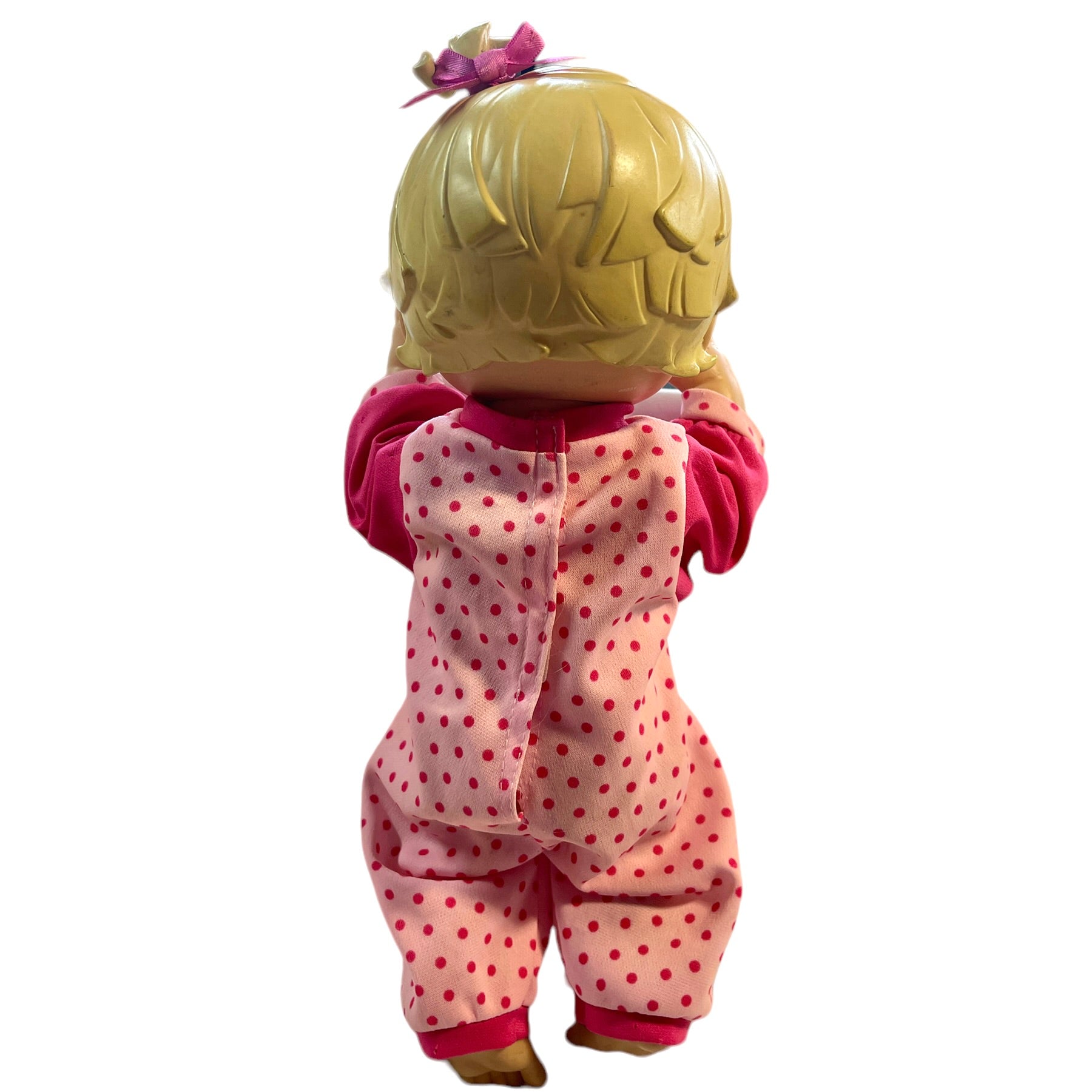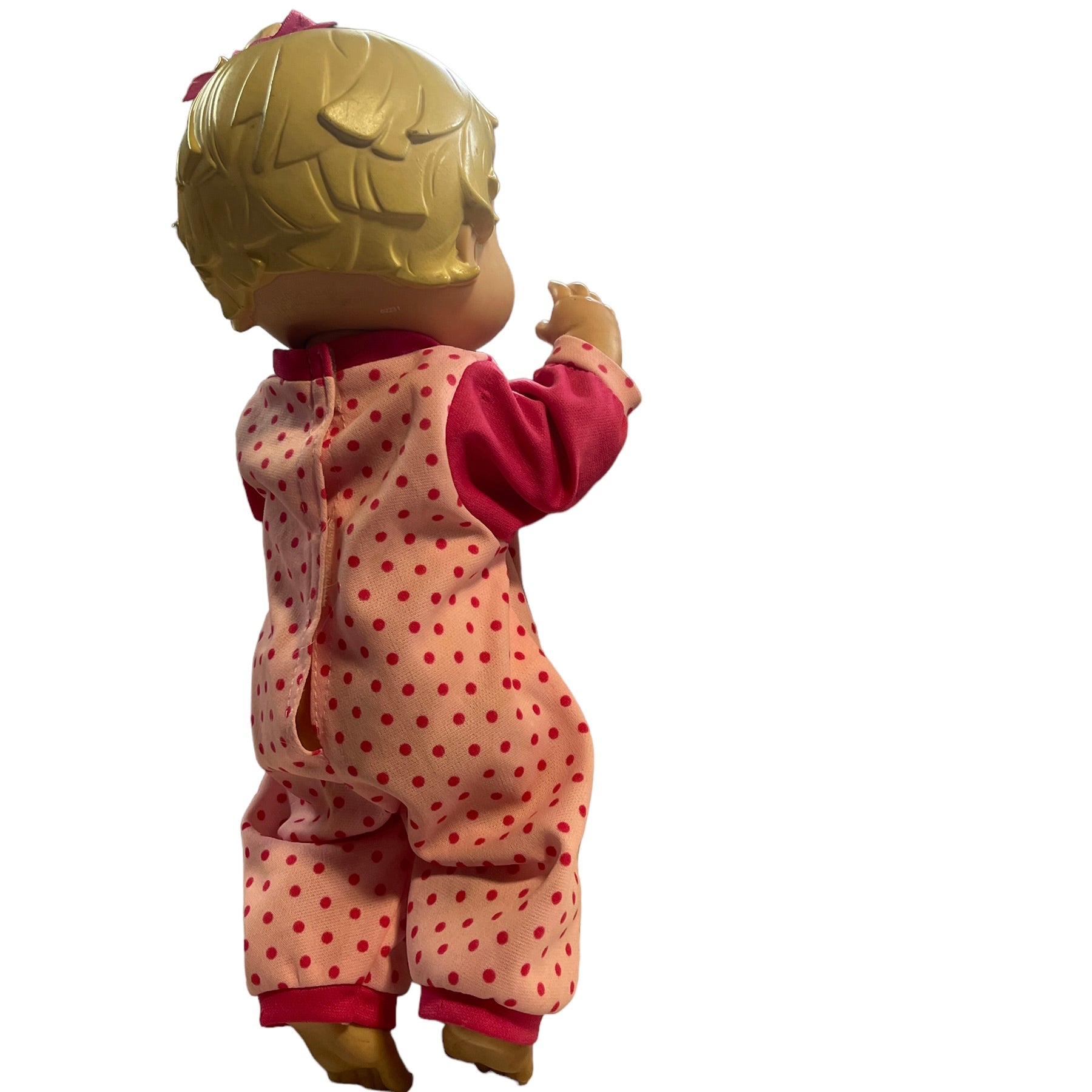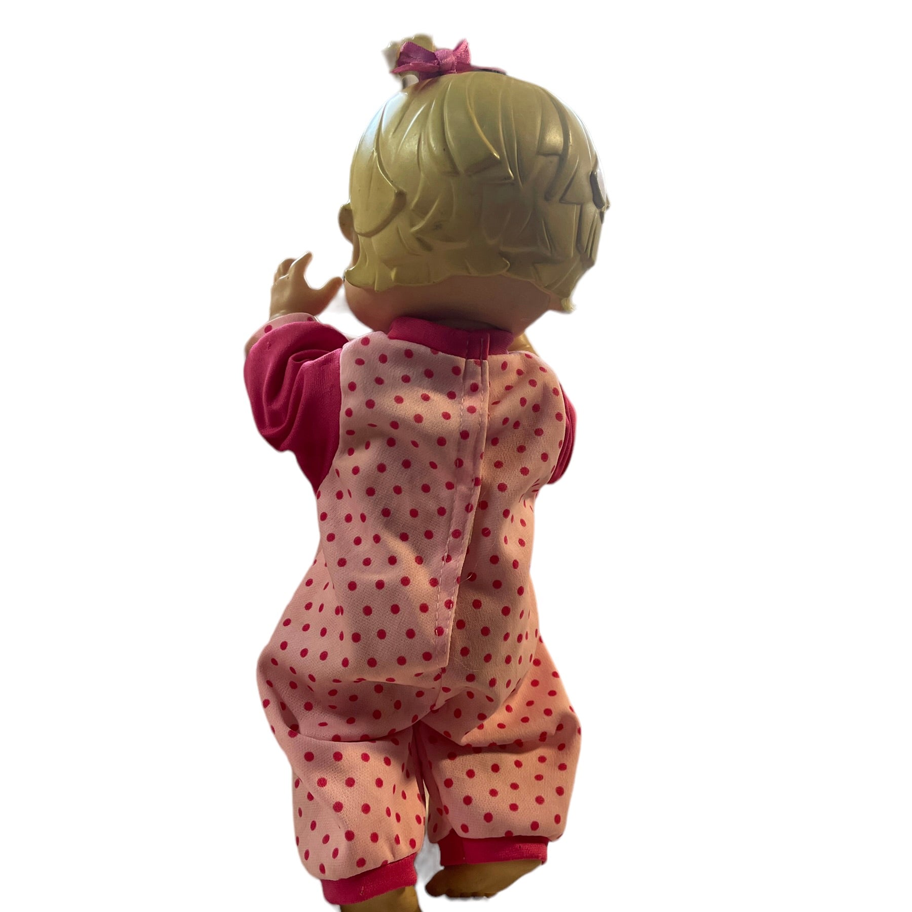 Baby Alive Drink & Wet 13" Baby Doll Hasbro 2008 Pink Romper with Cherries Blond/Blue Eyes