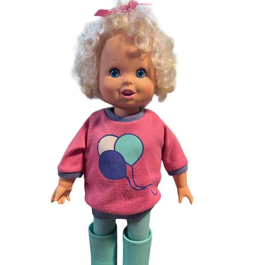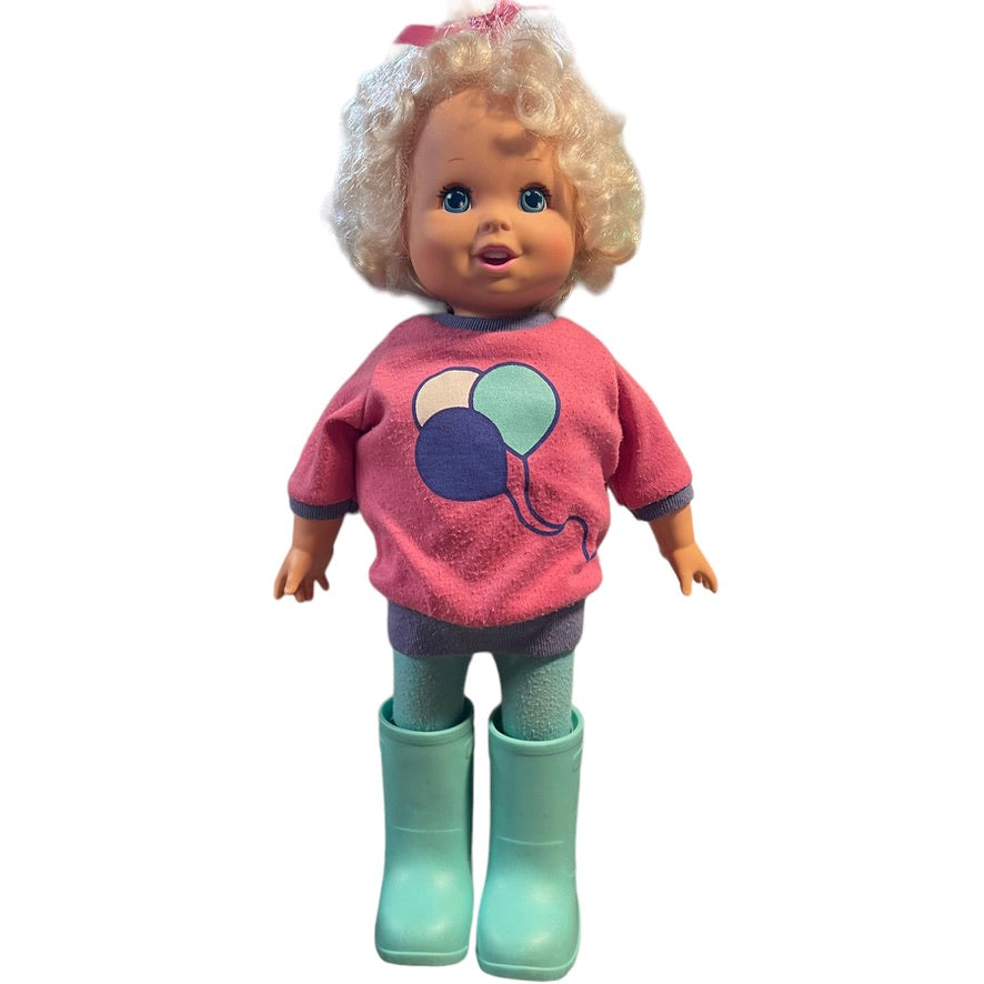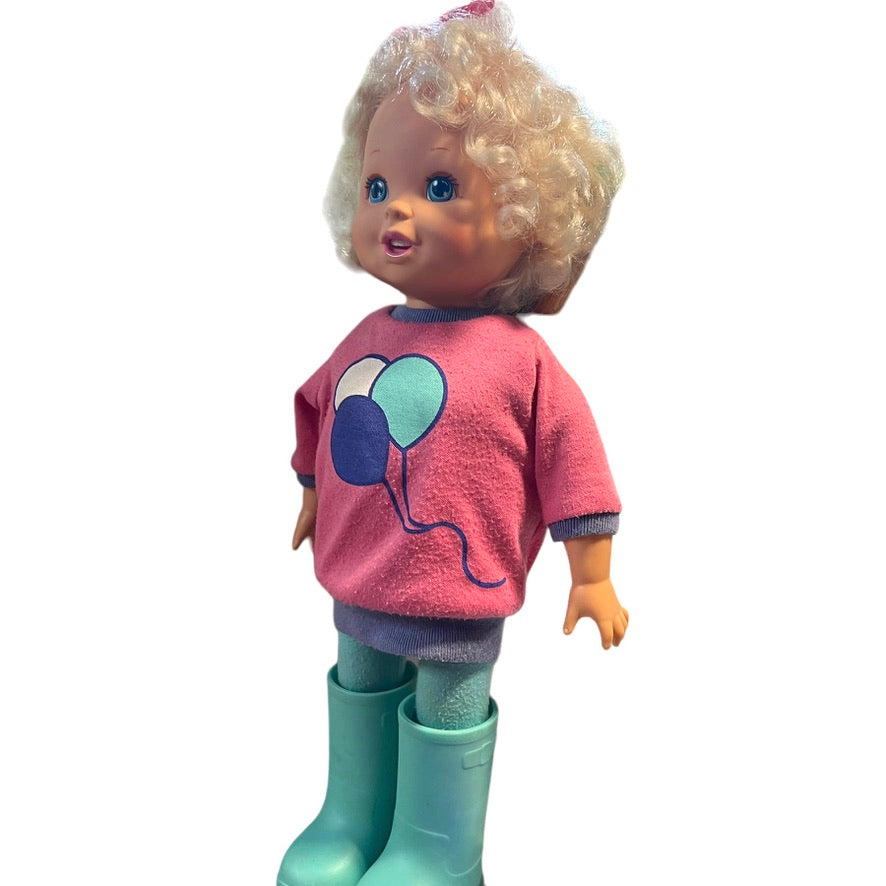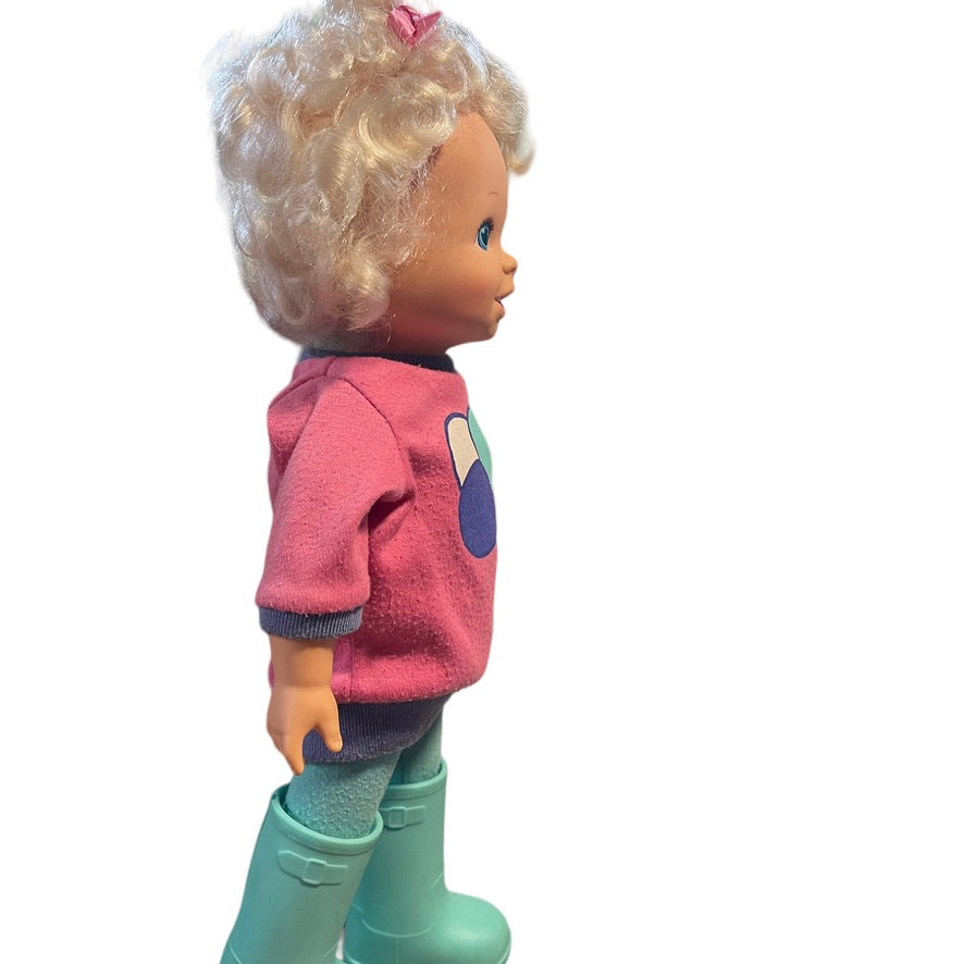 Baby Grows Doll, Vintage 1987 Blue Eyed Blond in her Original Outfit Complete with Aqua Boots