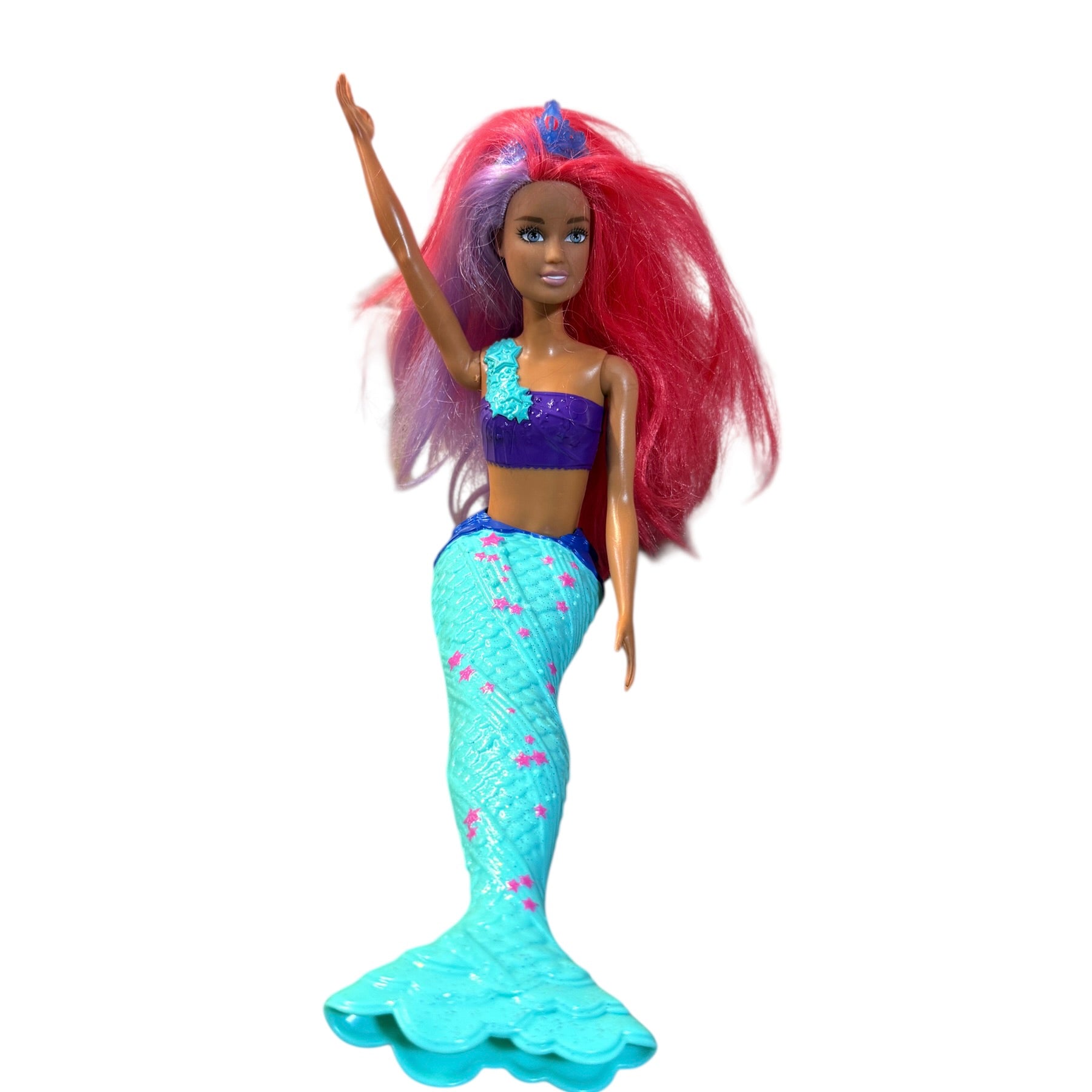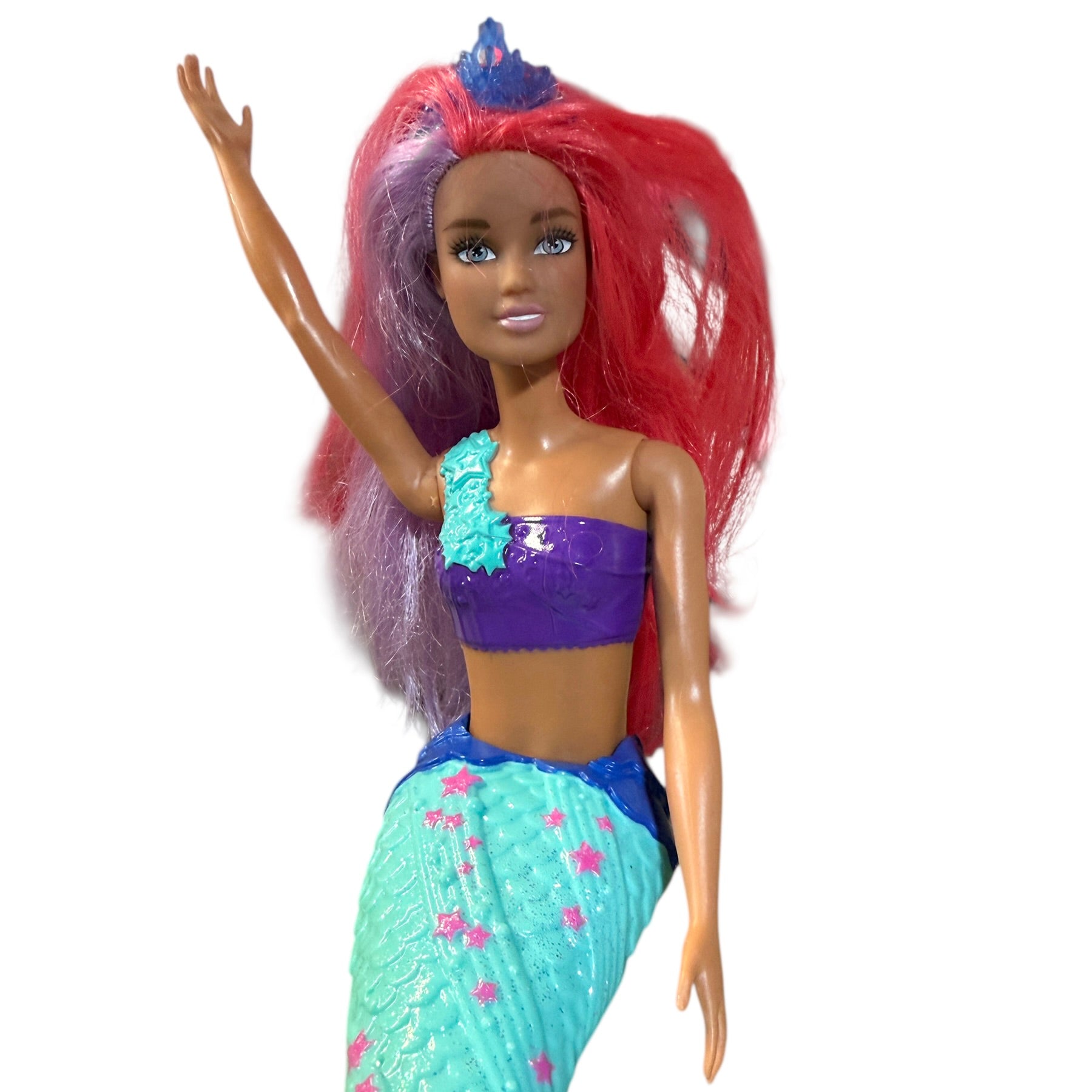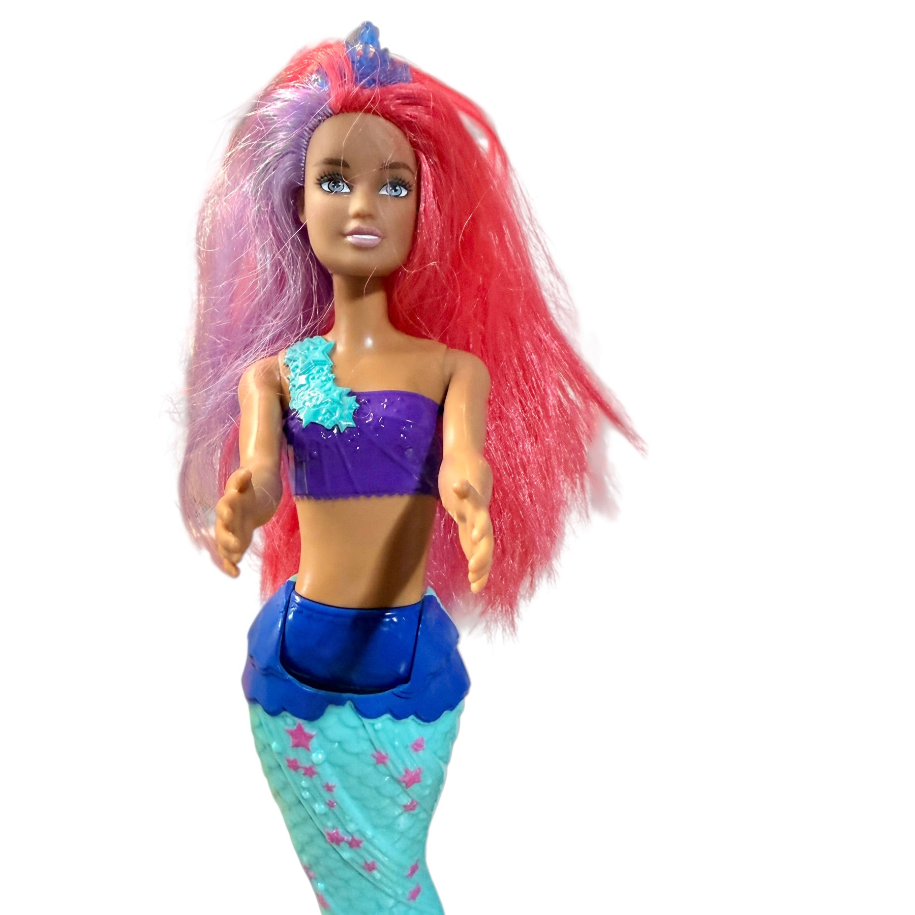 Beautiful Preowned Barbie Dreamtopia Mermaid Doll with long vibrant hair and a star spangled tail. A beautiful doll and a great addition to your Barbie or mermaid collections! She is in very good preowned condition.