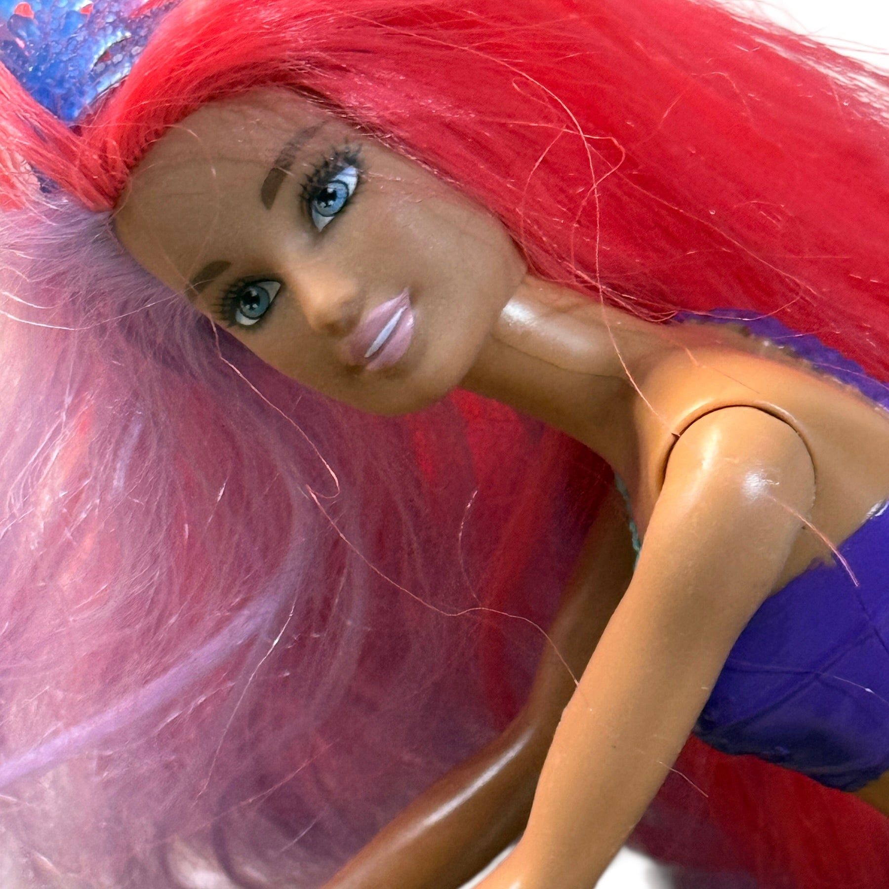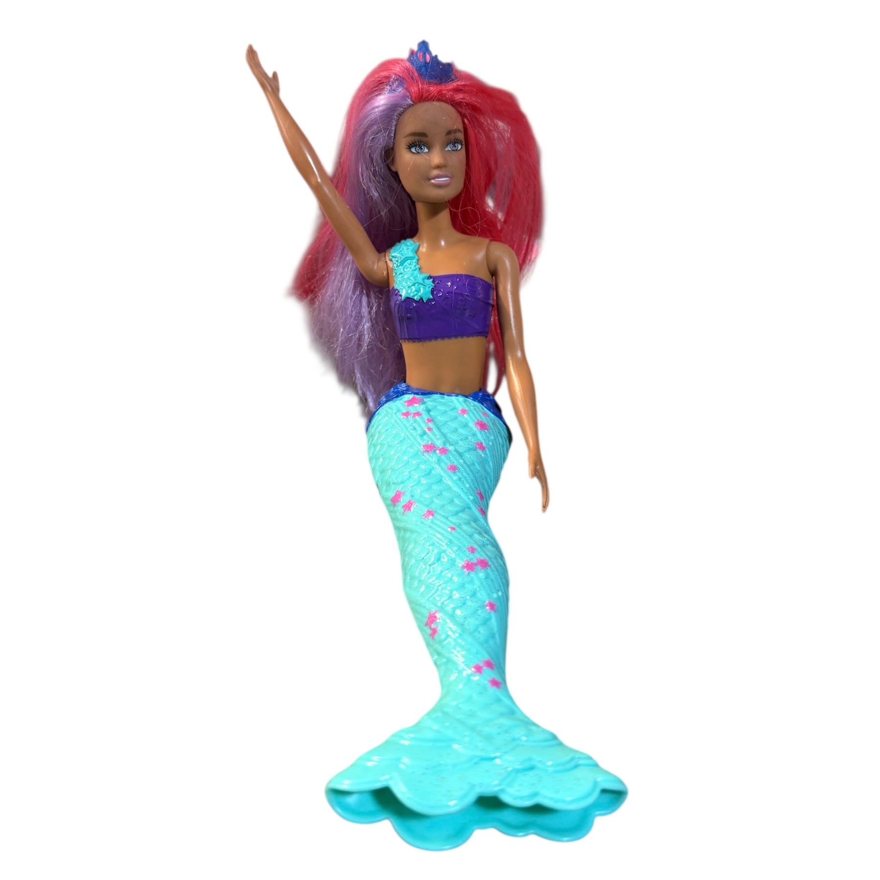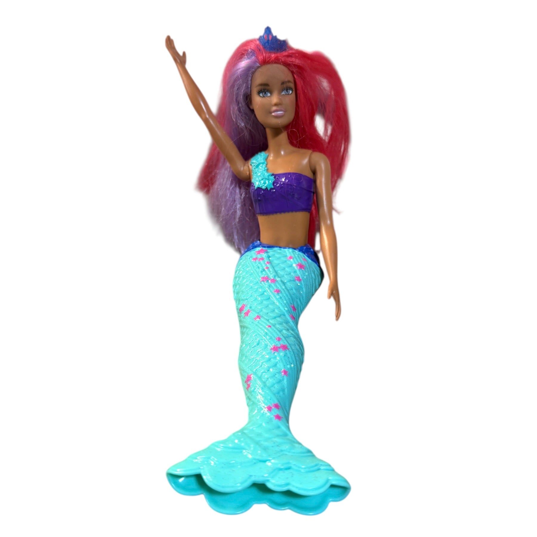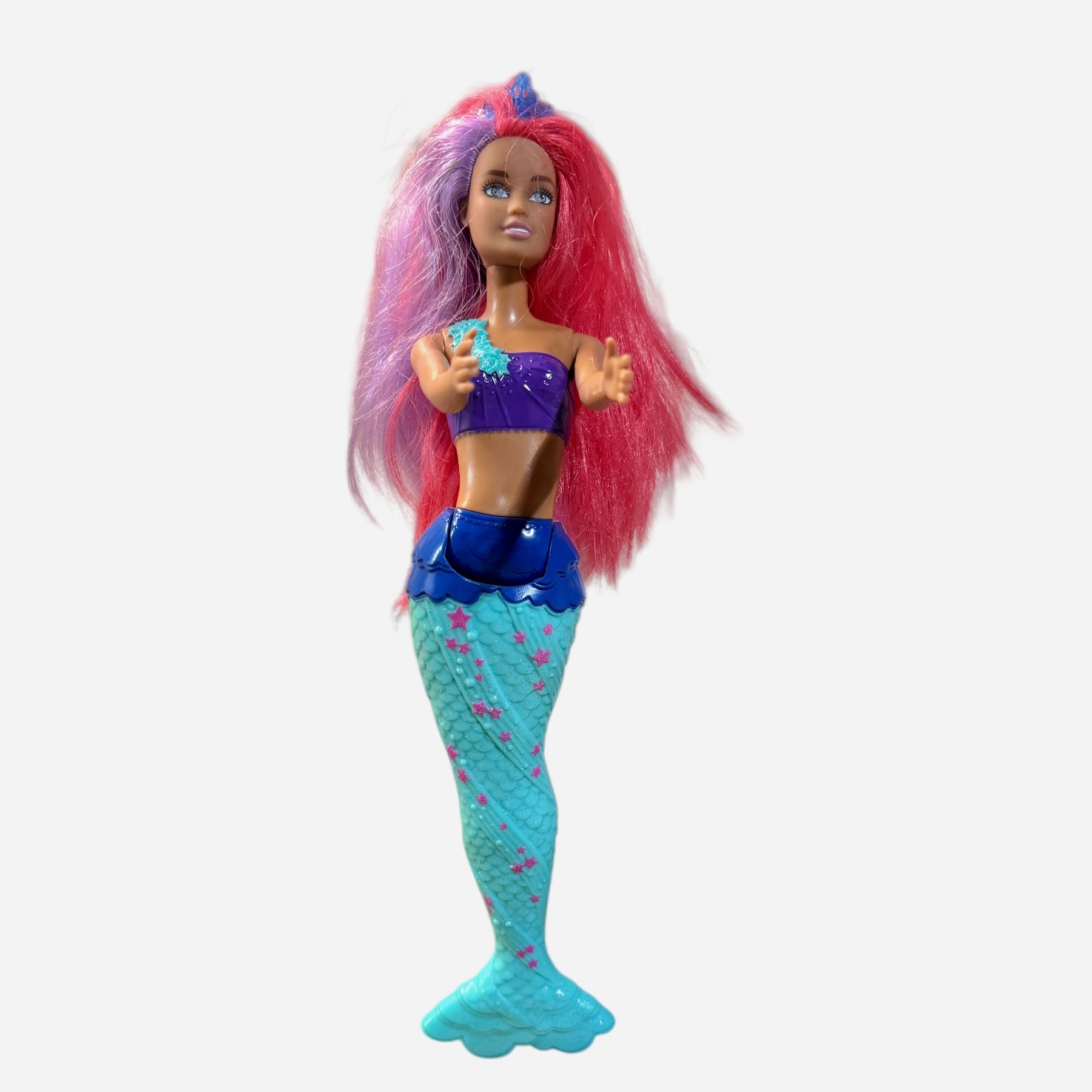 Beautiful Preowned Barbie Dreamtopia Mermaid Doll with long vibrant hair and a star spangled tail. A beautiful doll and a great addition to your Barbie or mermaid collections! She is in very good preowned condition.