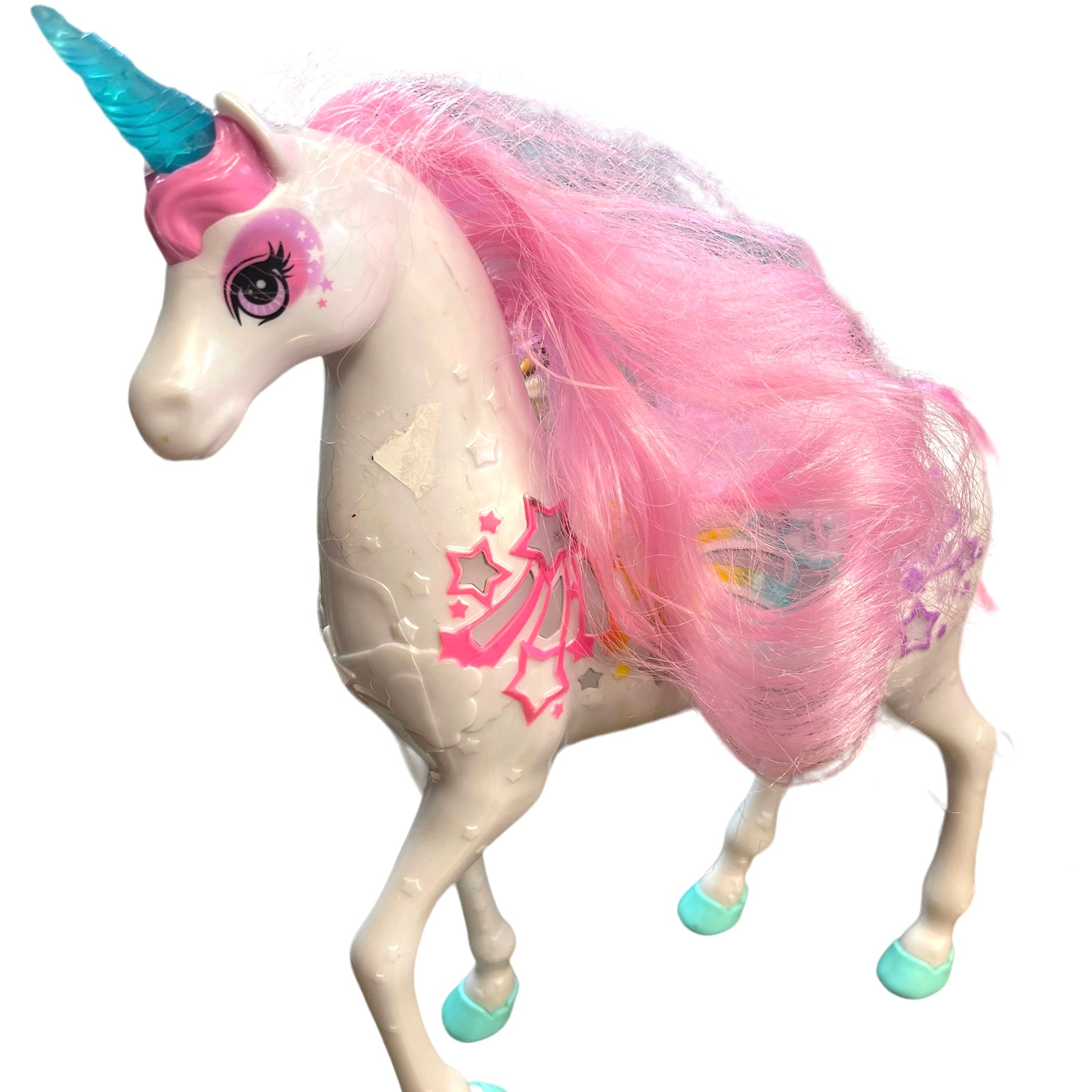 Barbie Dreamtopia Brush & Sparkle Unicorn Horse with Lights & Sounds by Mattel. A beautiful addition to your collection! In excellent preloved working condition.