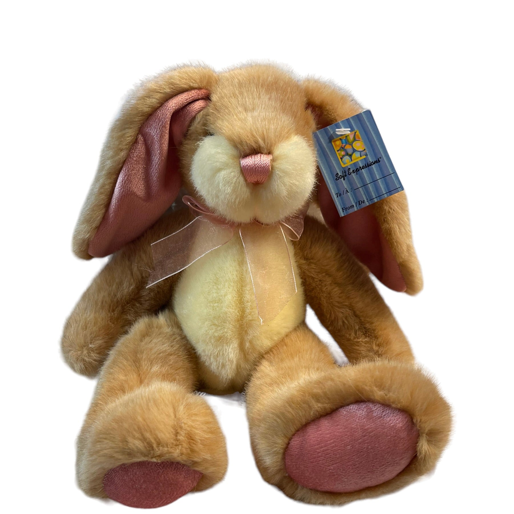 Beautiful Vintage Dandee & Shopper's Drug Mart Lop Eared Bunny, Beige with Creamy chest and Rosy pink feet, ears & satin nose. This very special bunny is in excellent preowned condition. Some wear and fading on paper & cloth tags.