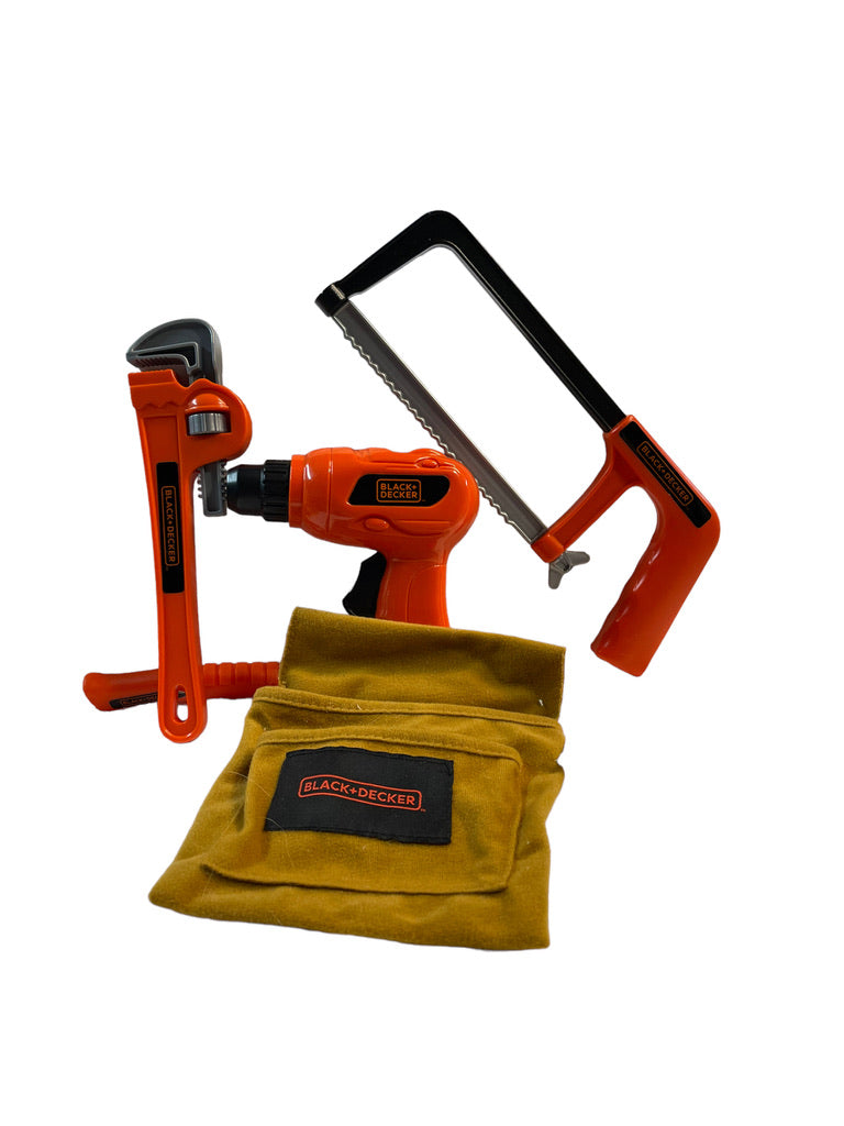 Handy Black+Decker Tool pouch/apron filled with 4 tools in great used condition. Perfect for your Little Handy Person!