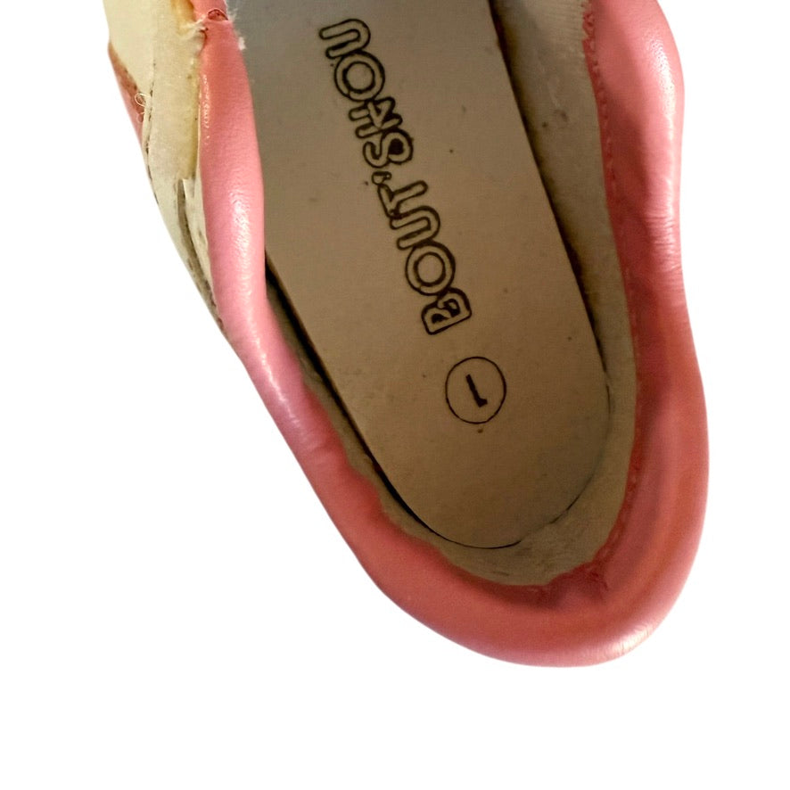 Bout'Shou White& Pink Infant Size 1 Trainers/ Running Shoes, Hook & Loop Closure Tab GUC