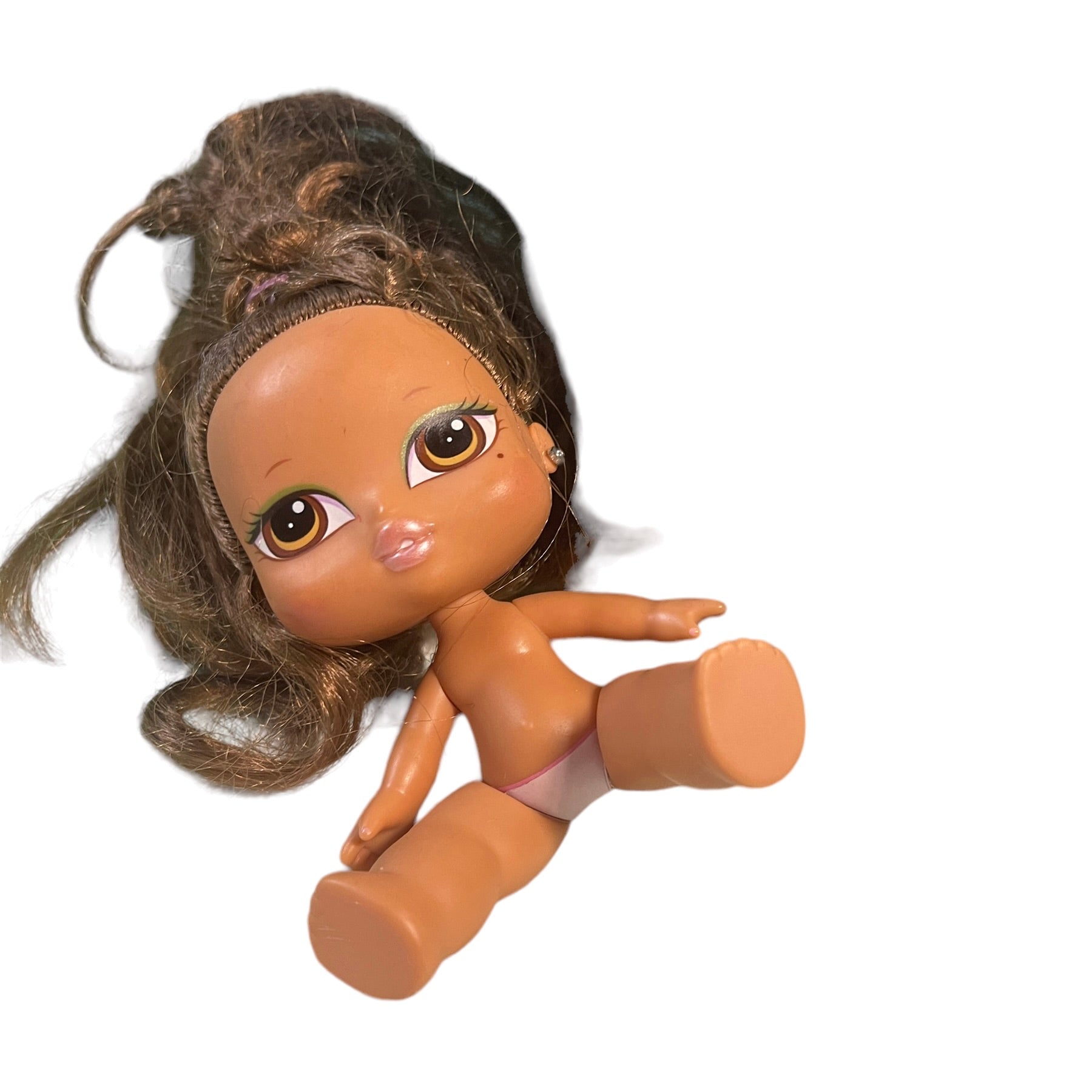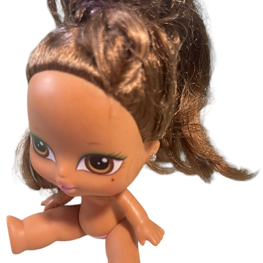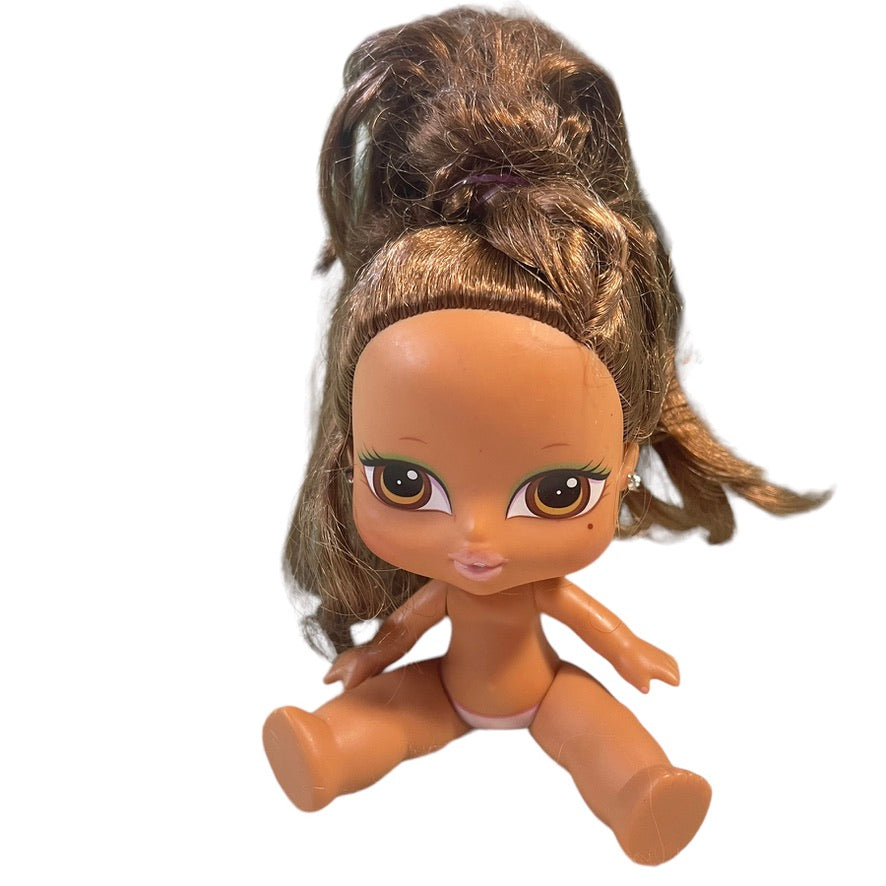 Sweet Faced Yasmin, Bratz Babyz Angelz, is a 5" posable vinyl doll with big painted brown eyes and sparkly little earrings. A lovely addition to your Bratz collection! Very Good Preowned Condition.