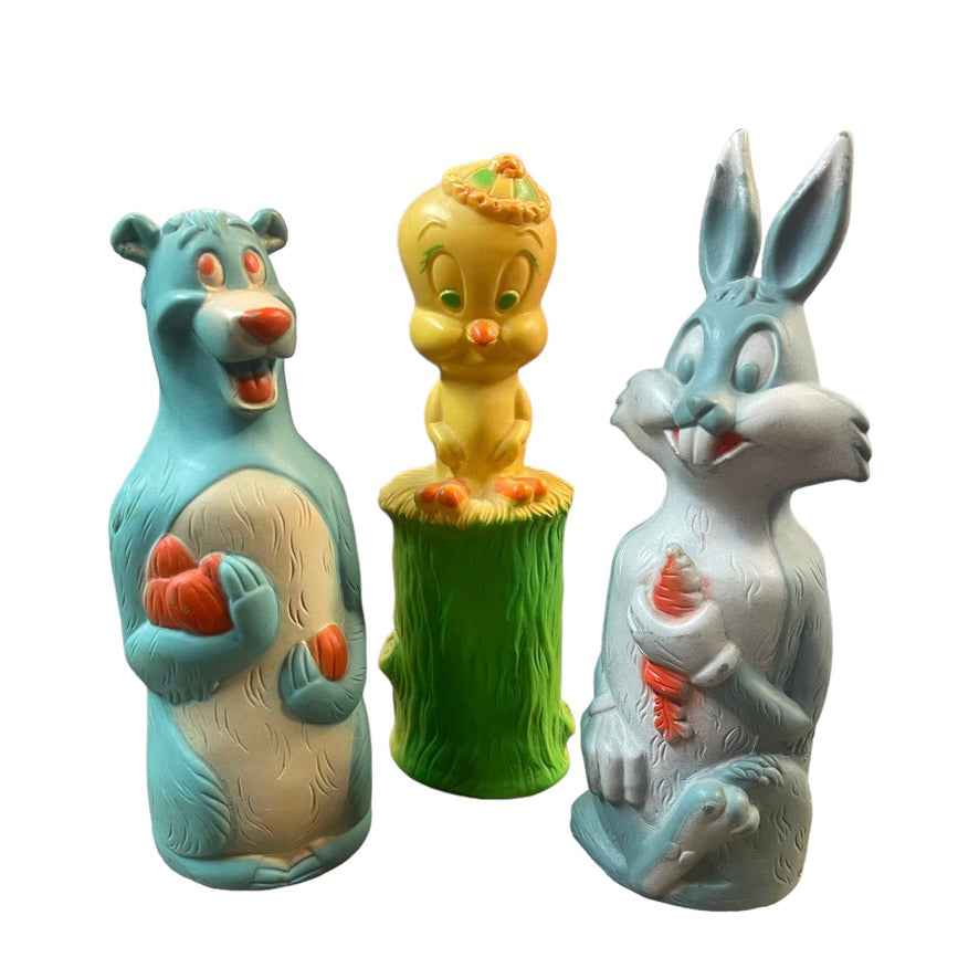 Vintage Tweety Bird, Baloo & Bugs Bunny Colgate Palmolive Soakies Vinyl Shampoo Bottles in GVC