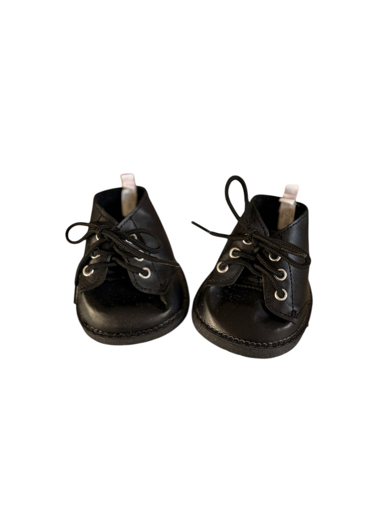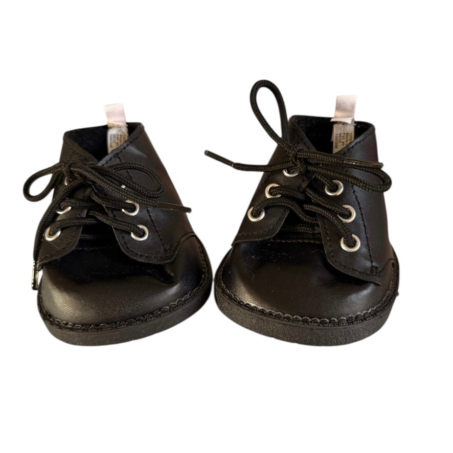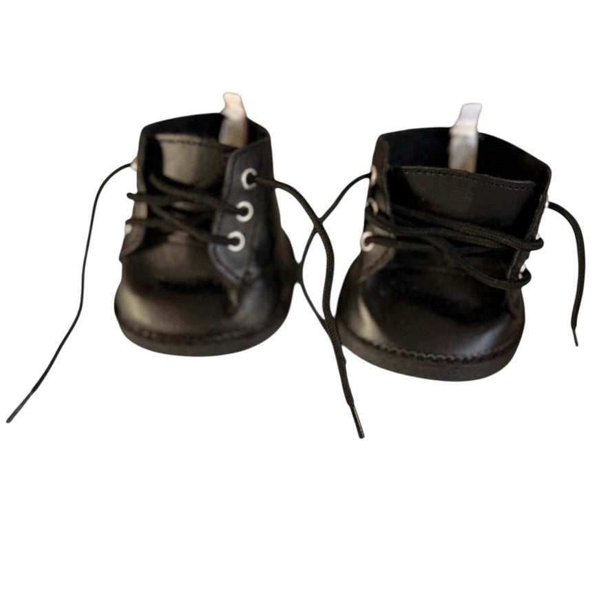 Build-A-Bear Black Faux Leather Tie Shoes/Combat Boots in Very Good Preowned Condition