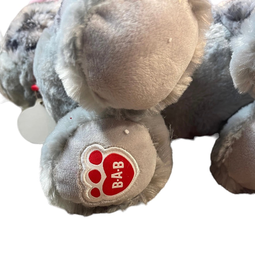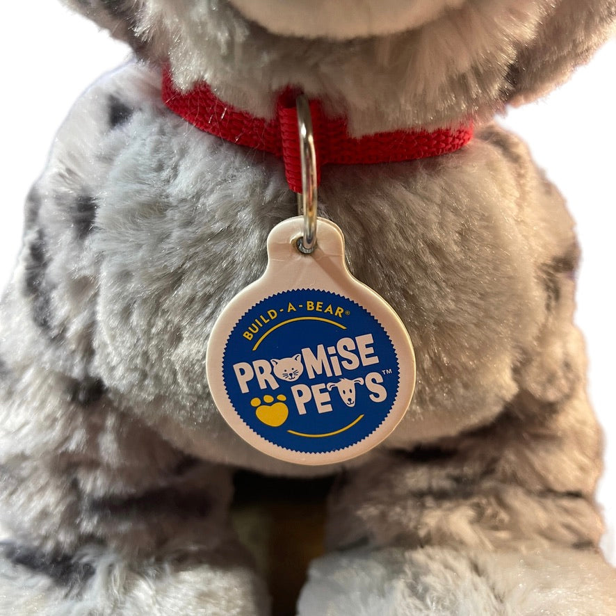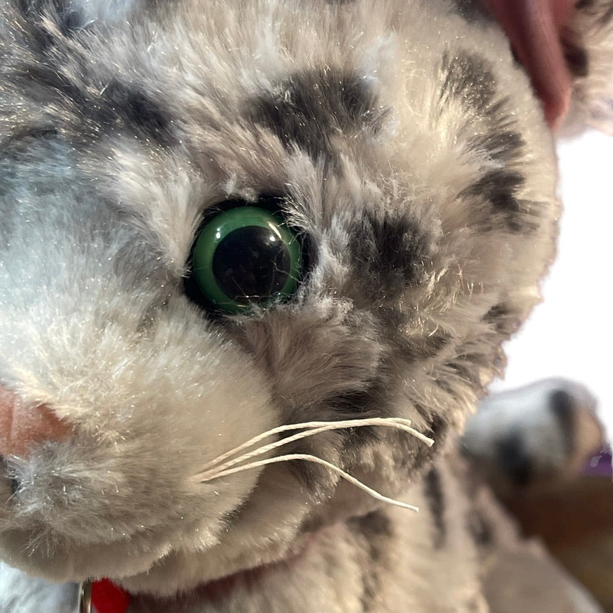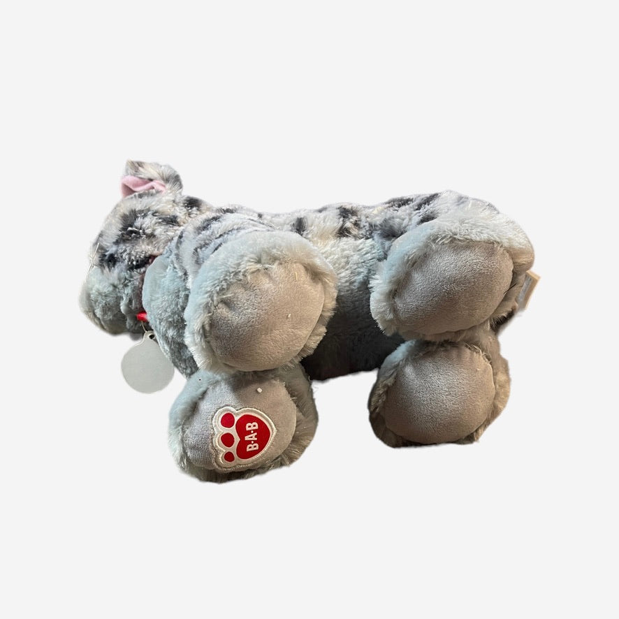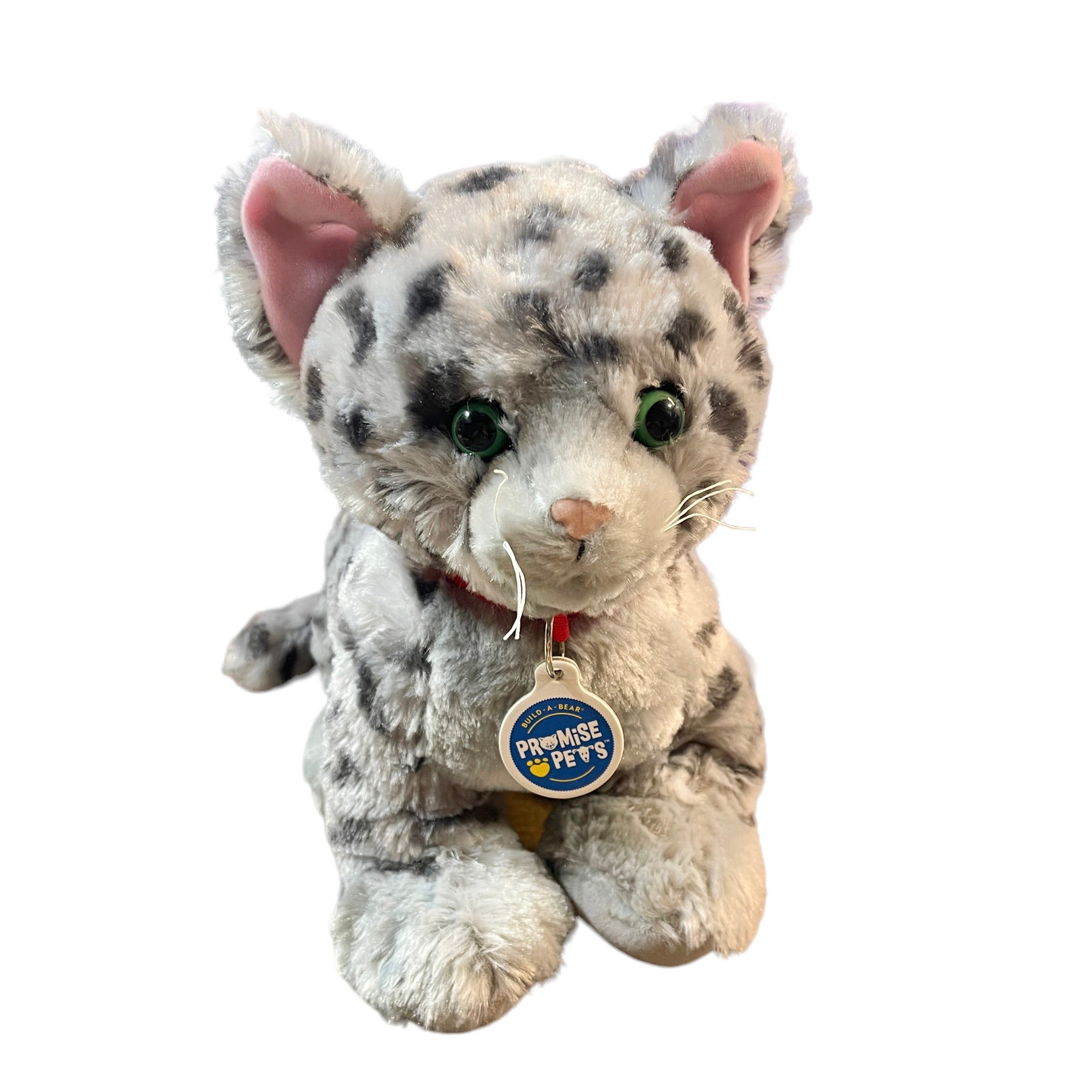 Build A Bear Promise Pets Rescue Grey Spotted Stuffed Cat Kitten, Big Fluffy Paws, Pink Ears