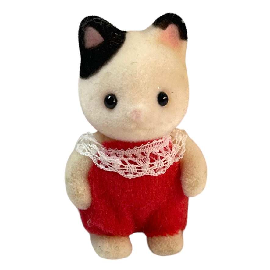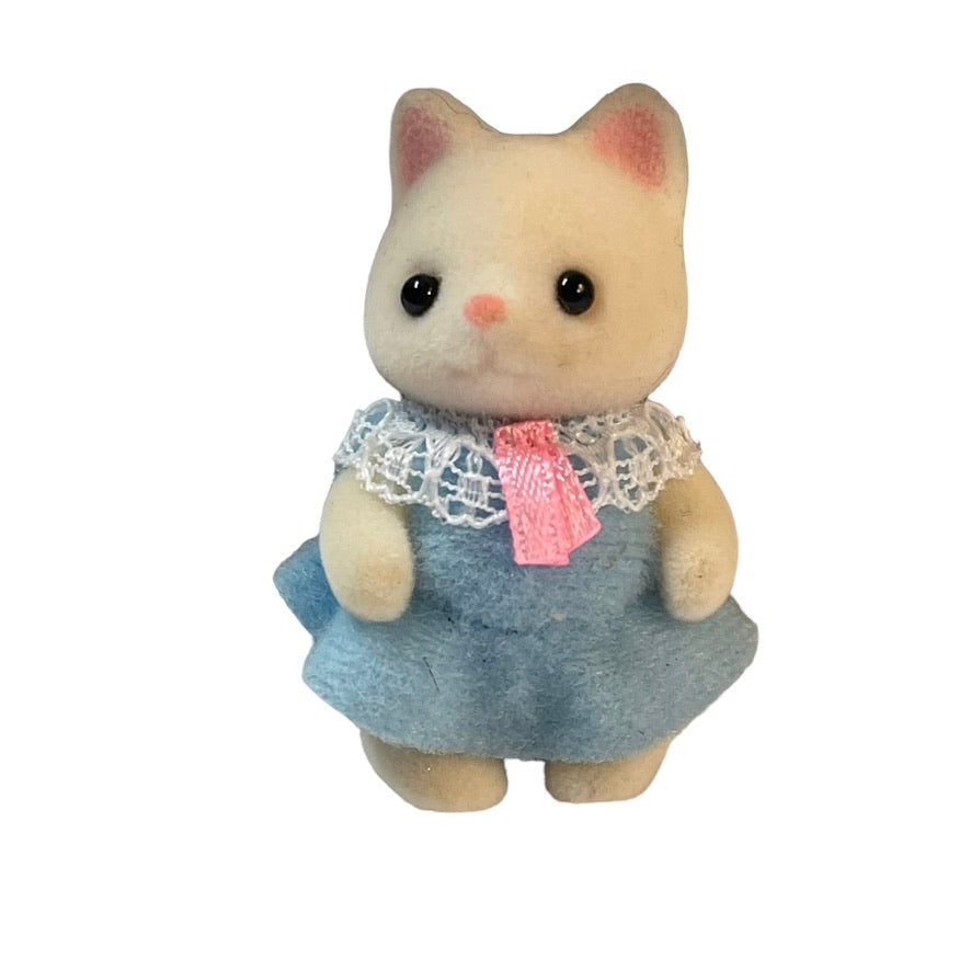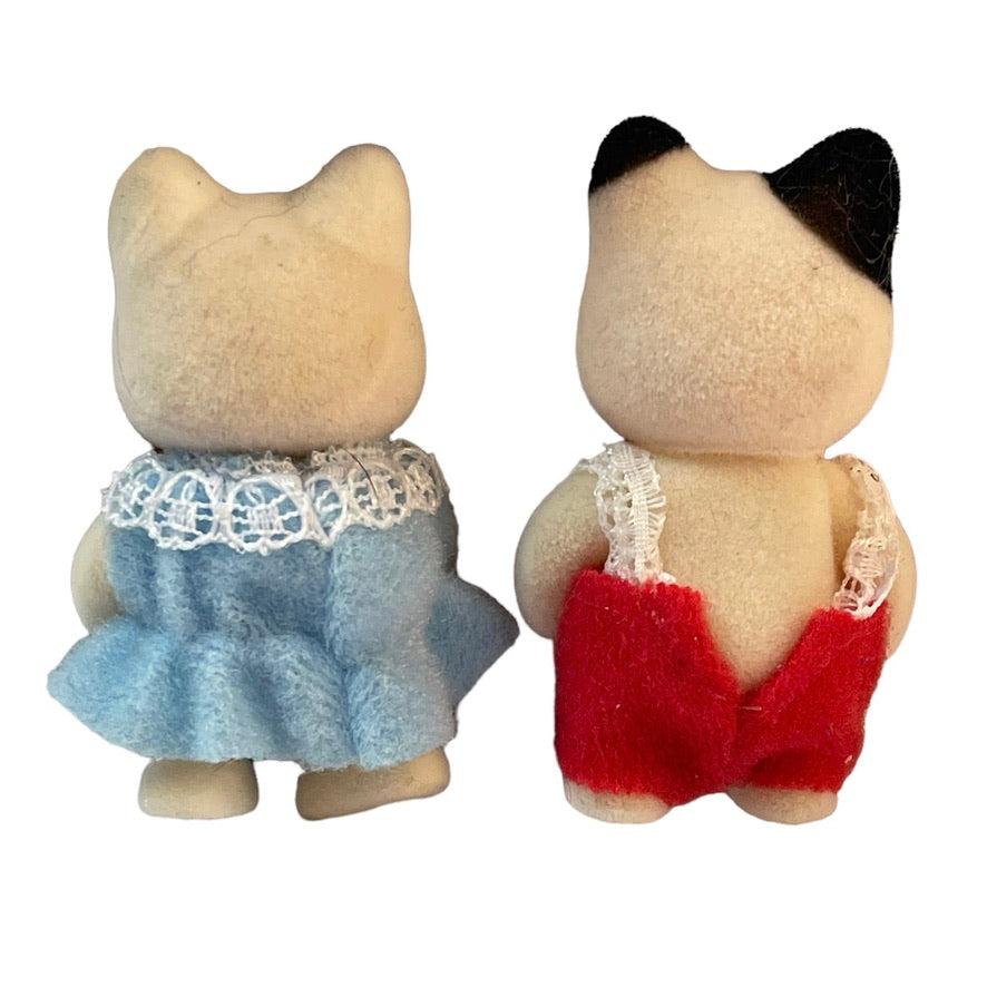 Calico Critters Lot of 2: 1 Triplet Black Ears, Red Dress & 1 Persian Pink Ears Blue Dress