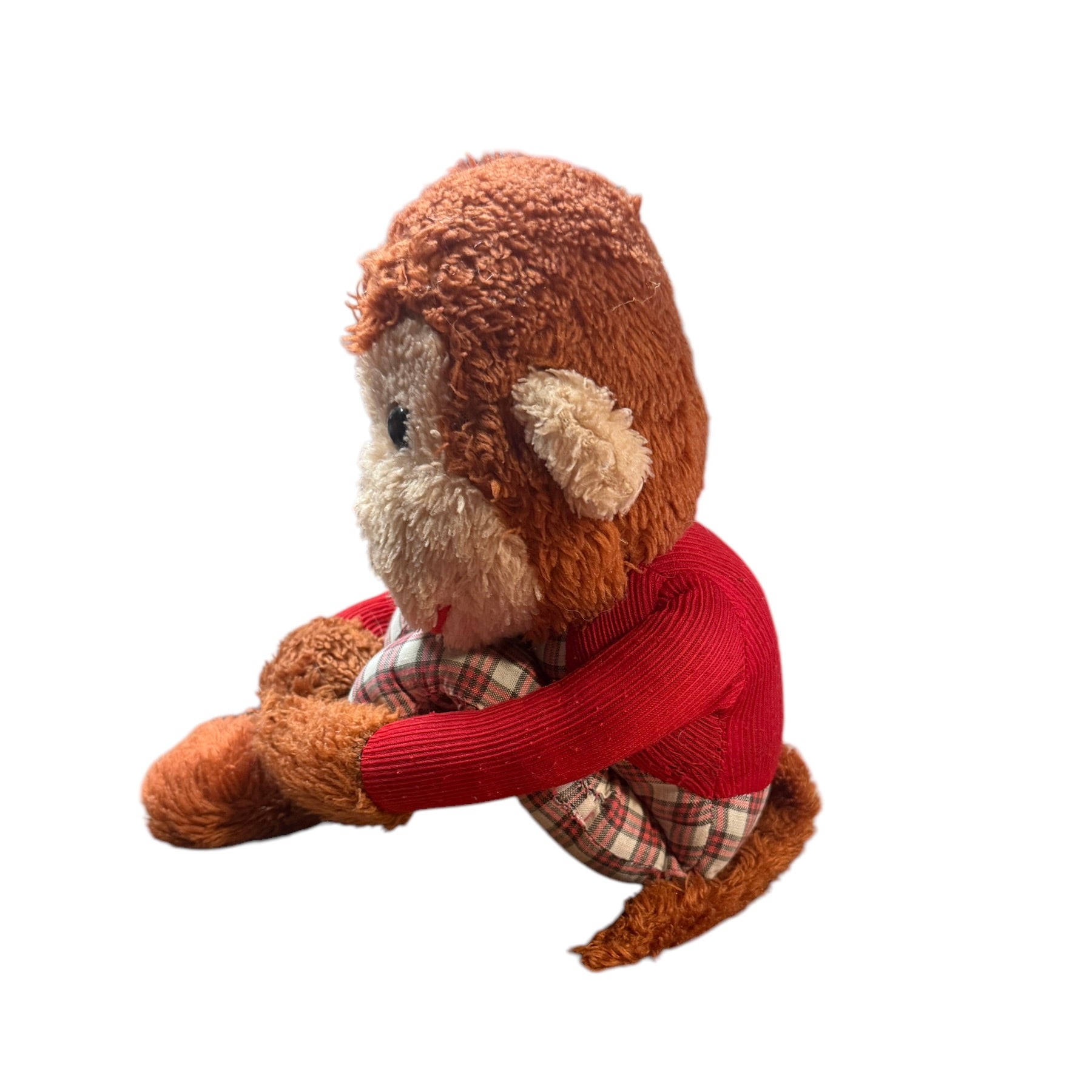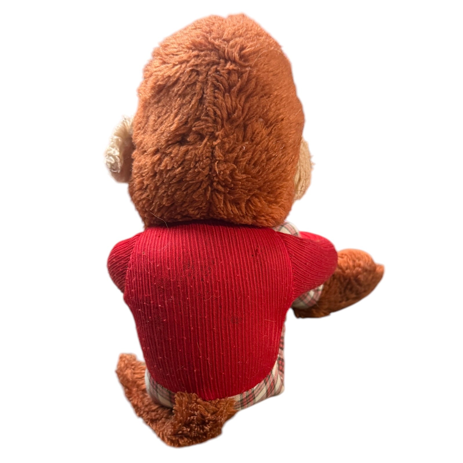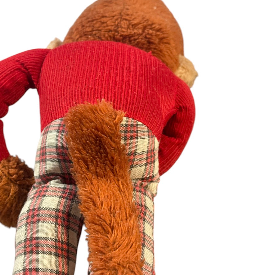 Charming Long-Legged Vintage Monkey Plush Knee Huggar with Tartan Coveralls Fair