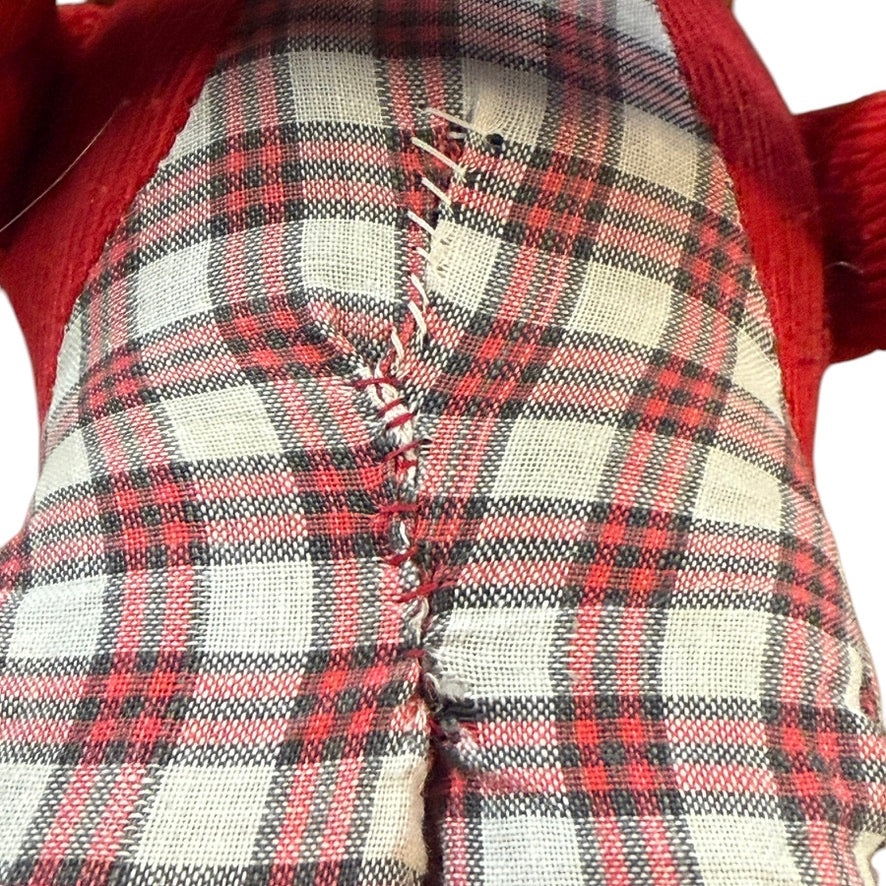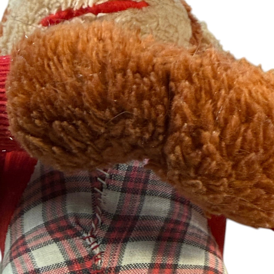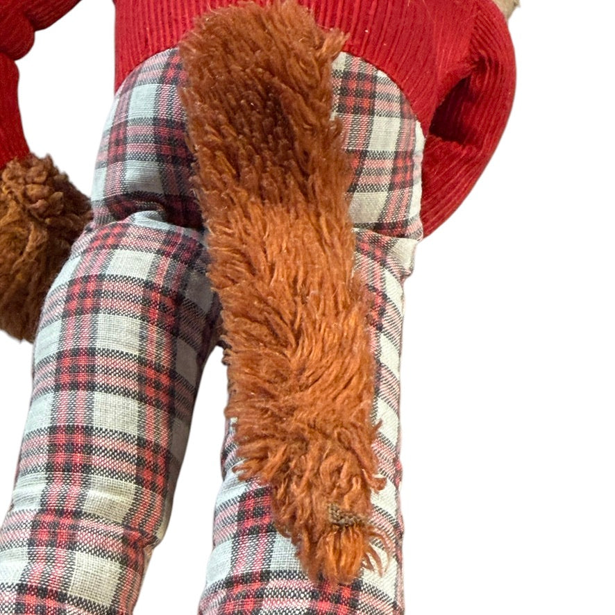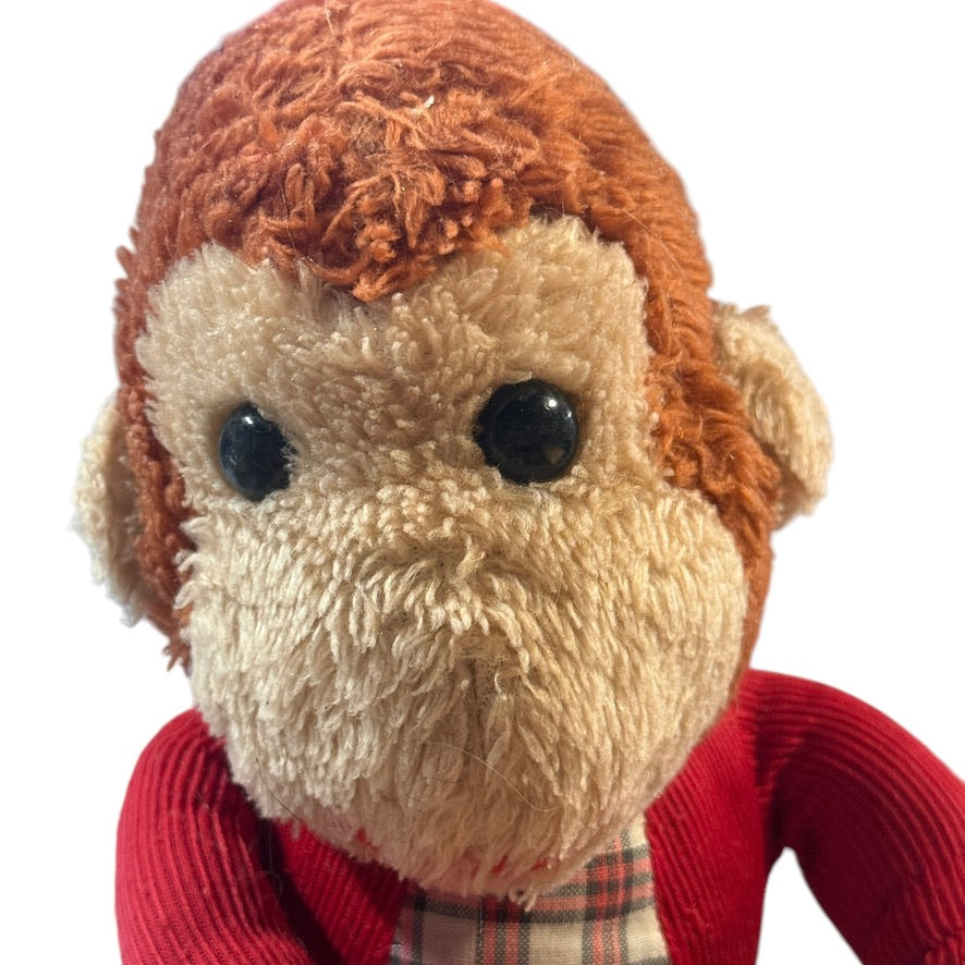Charming Long-Legged Vintage Monkey Plush Knee Huggar with Tartan Coveralls Fair