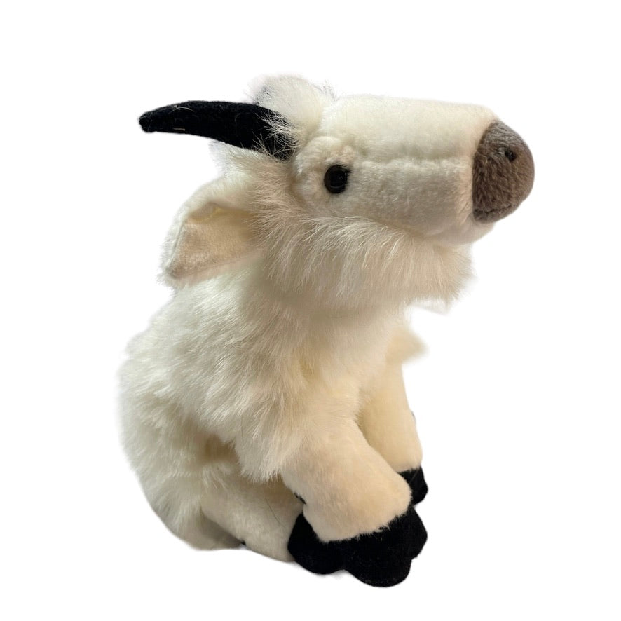 K&M International Plush Mountain Goat/Sheep, White with Black horns, hooves & markings A beautiful, realistic & cuddly stuffed animal toy.