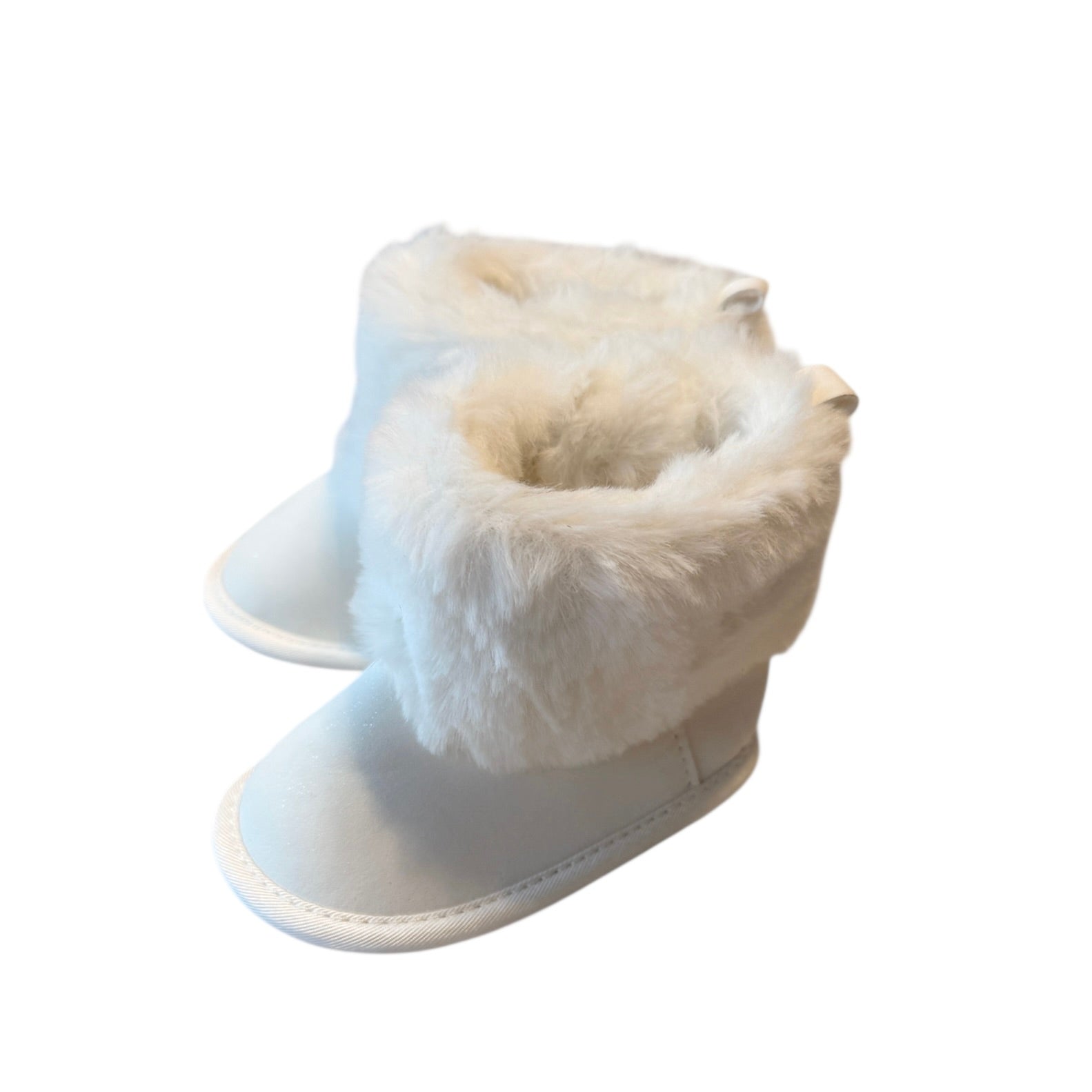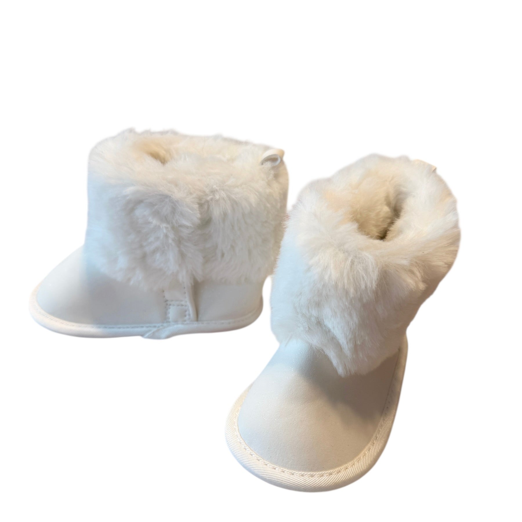 Children's Place Faux Fur White Chalet Boots 4.5" long, Fur Cuff Hook & Loop Closure