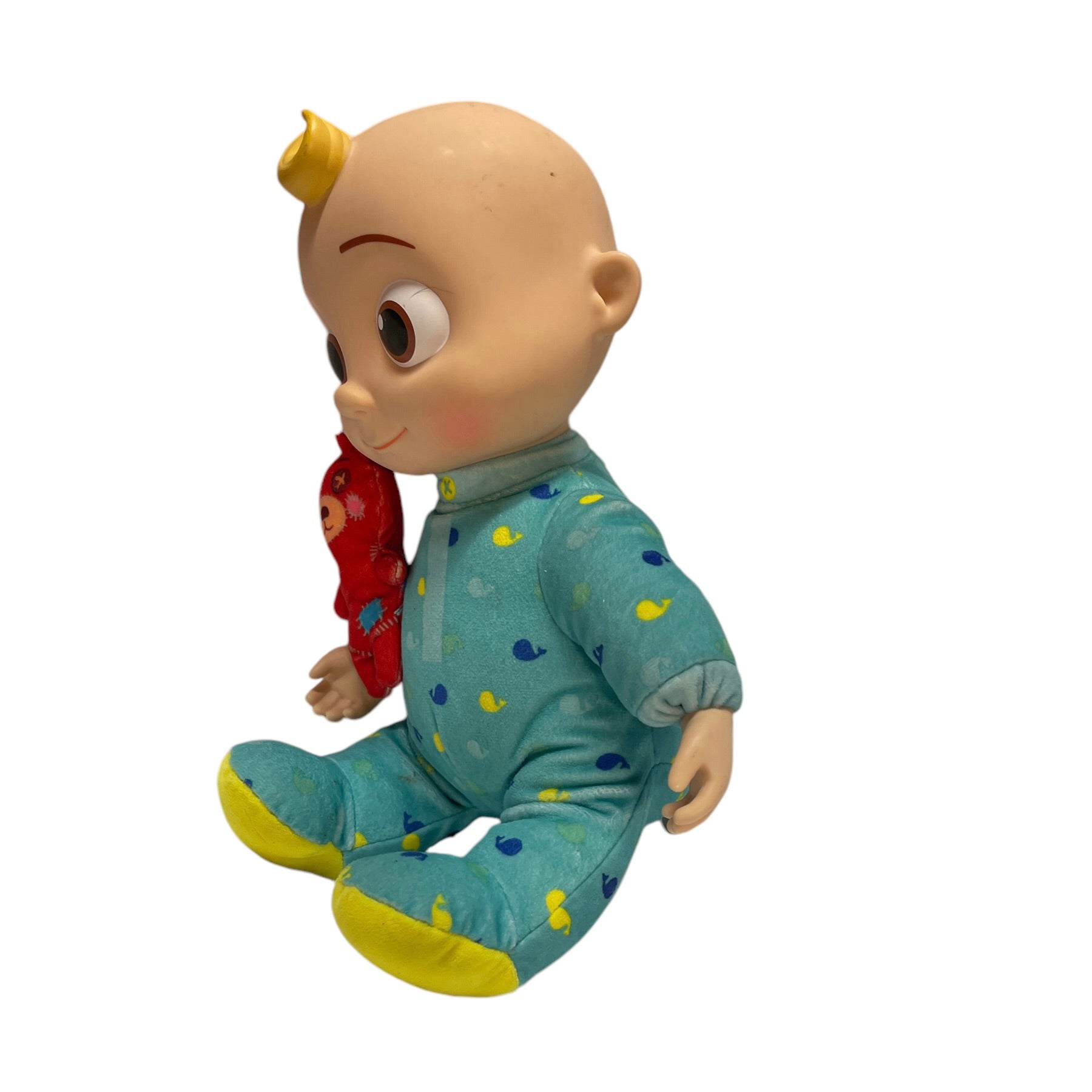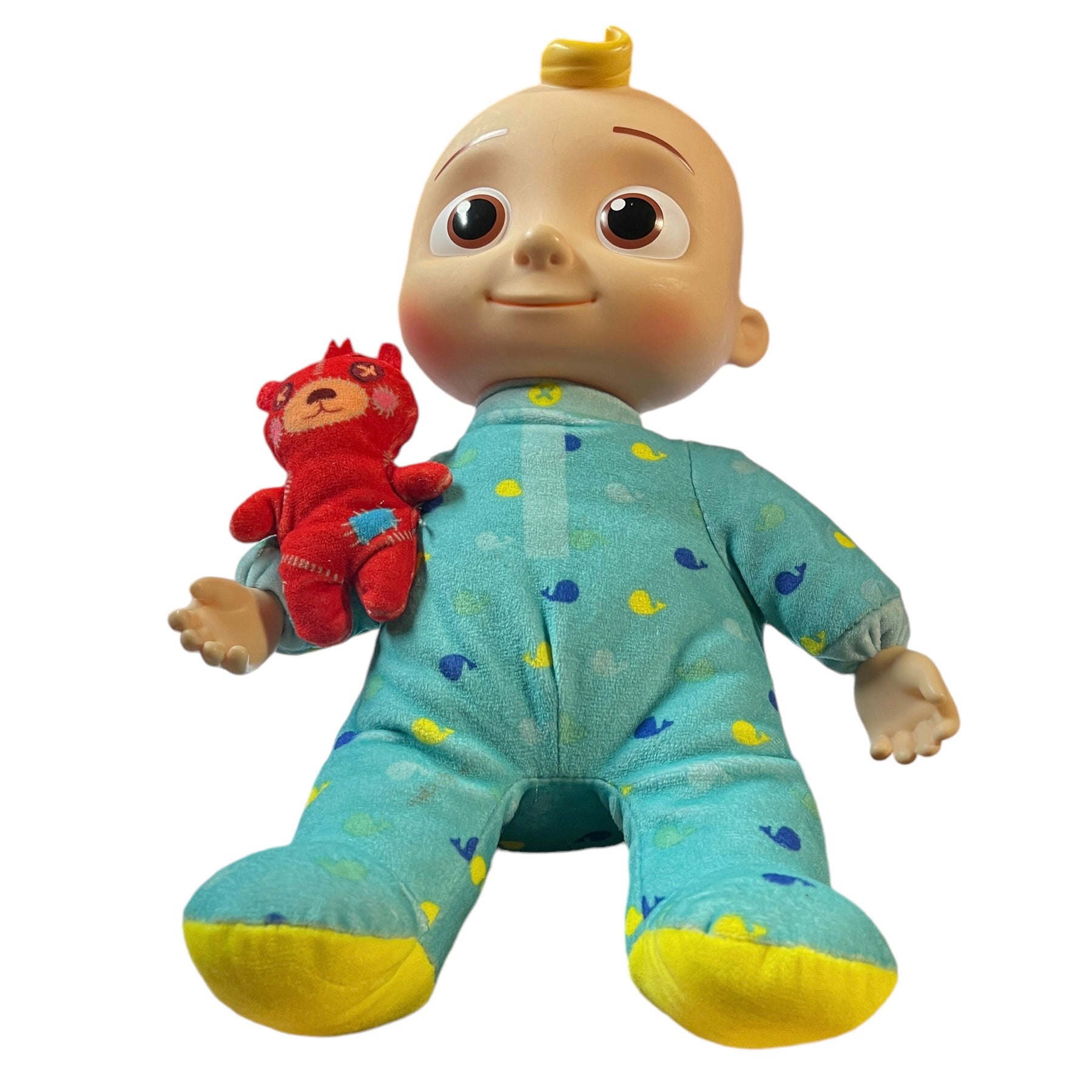 Sweet singing, laughing and talking Cocomelon JJ Doll, 12" with Teddy Bear Plush in very good preowned condition. Working