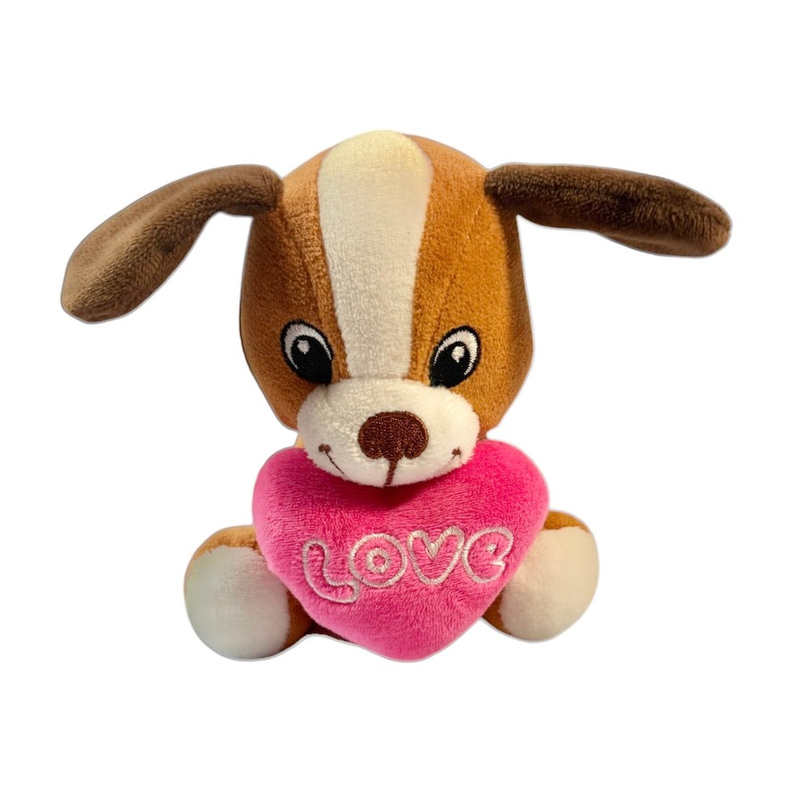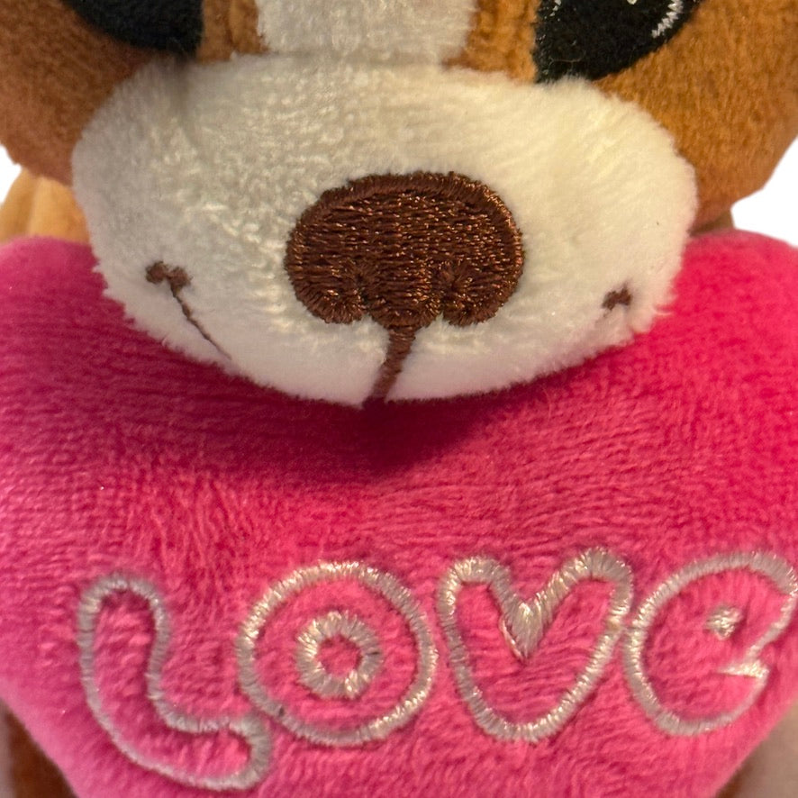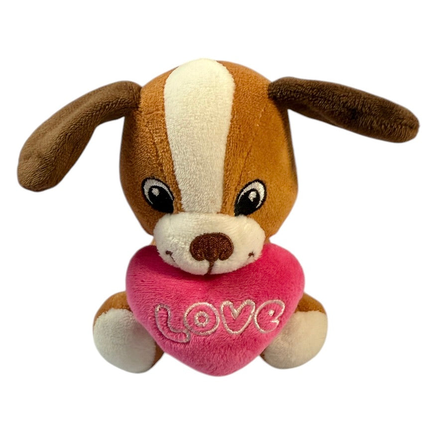 Comic Strip 5.5 " Puppy Dog Stuffed Animal Toy with Pink Plush Heart, Embroidered Eyes