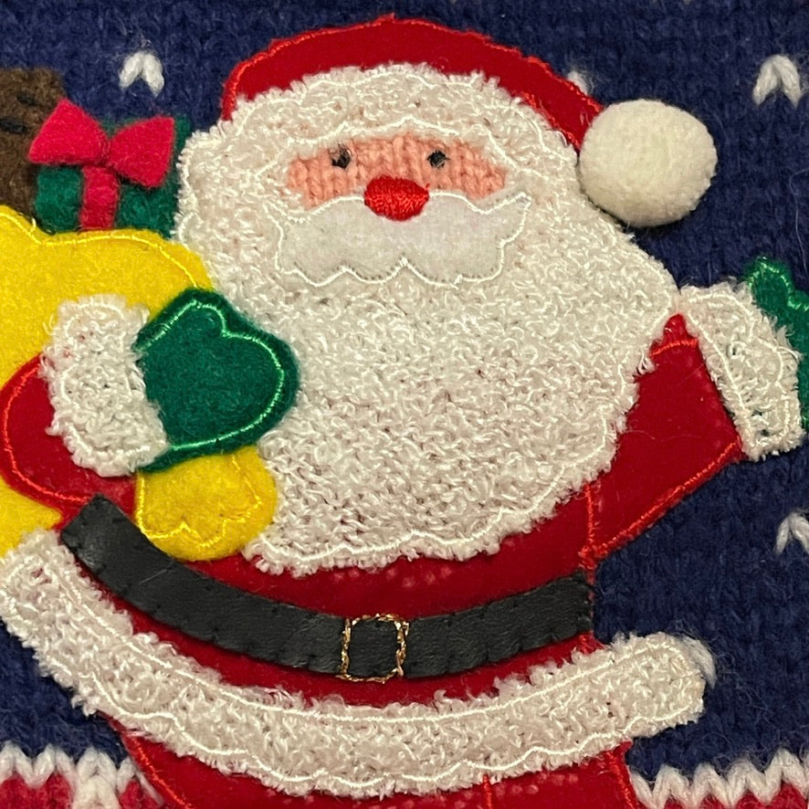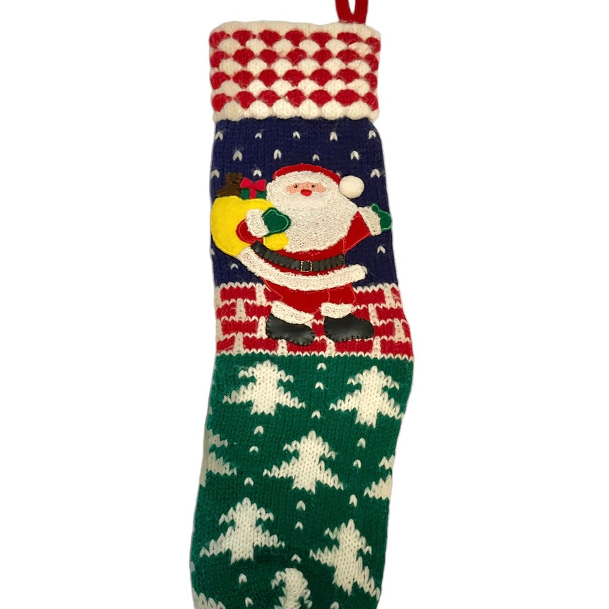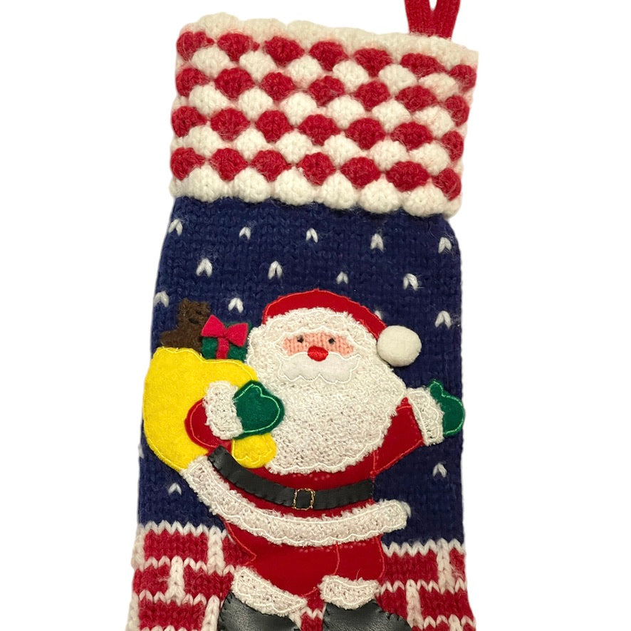 Cozy Knit Christmas Stocking with Santa Applique, 19" Tall, in Excellent Preowned Condition