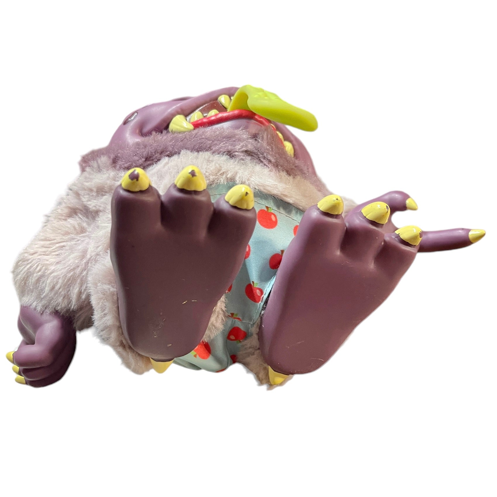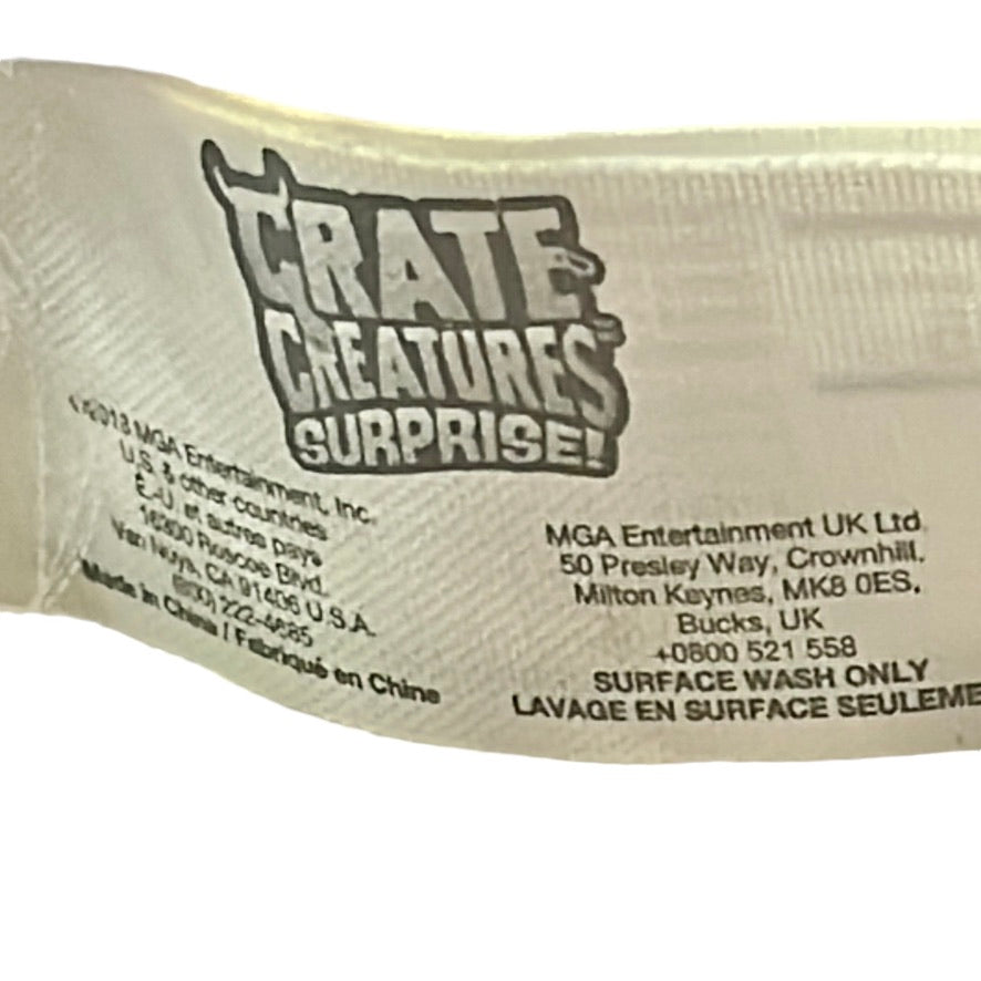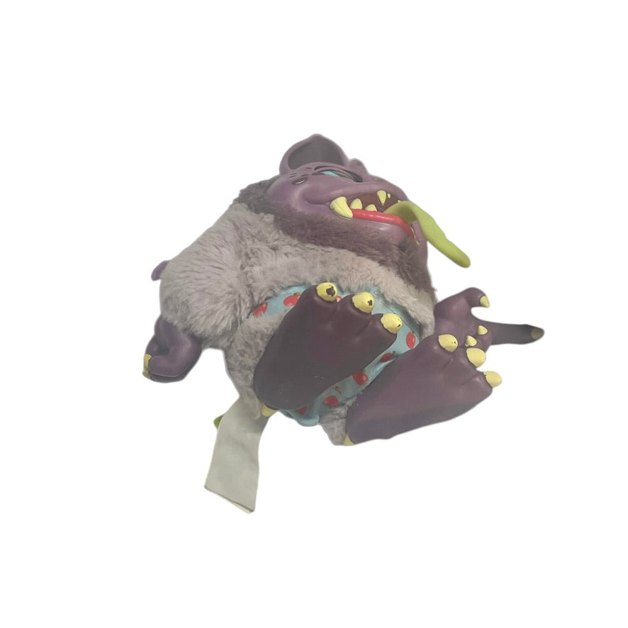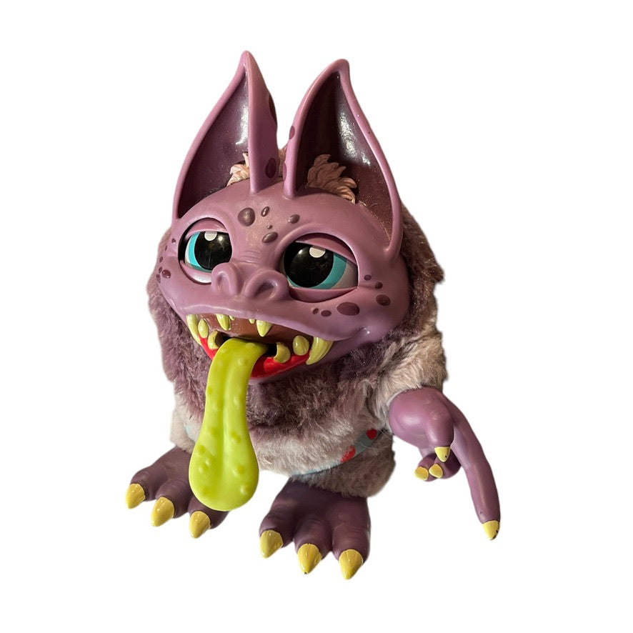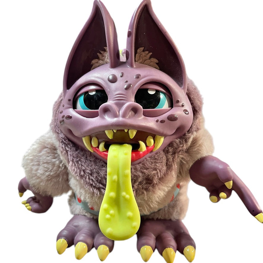 This handsome guy gets a little noisy and lights up when you pull on his tongue! He is 8" and sturdily constructed from vinyl and plush by MGA Entertainment. Unfortunately, he is currently homeless, having misplaced his crate, but he is otherwise in excellent preowned condition.