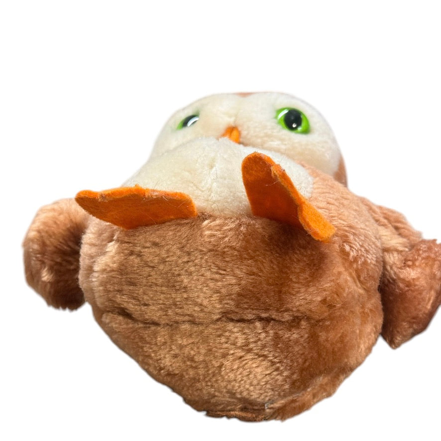 Dakin Vintage Plush, Obie the Owl, 1975 7" Nutshell Stuffed Toy, Beautiful Green Glass Eyes!