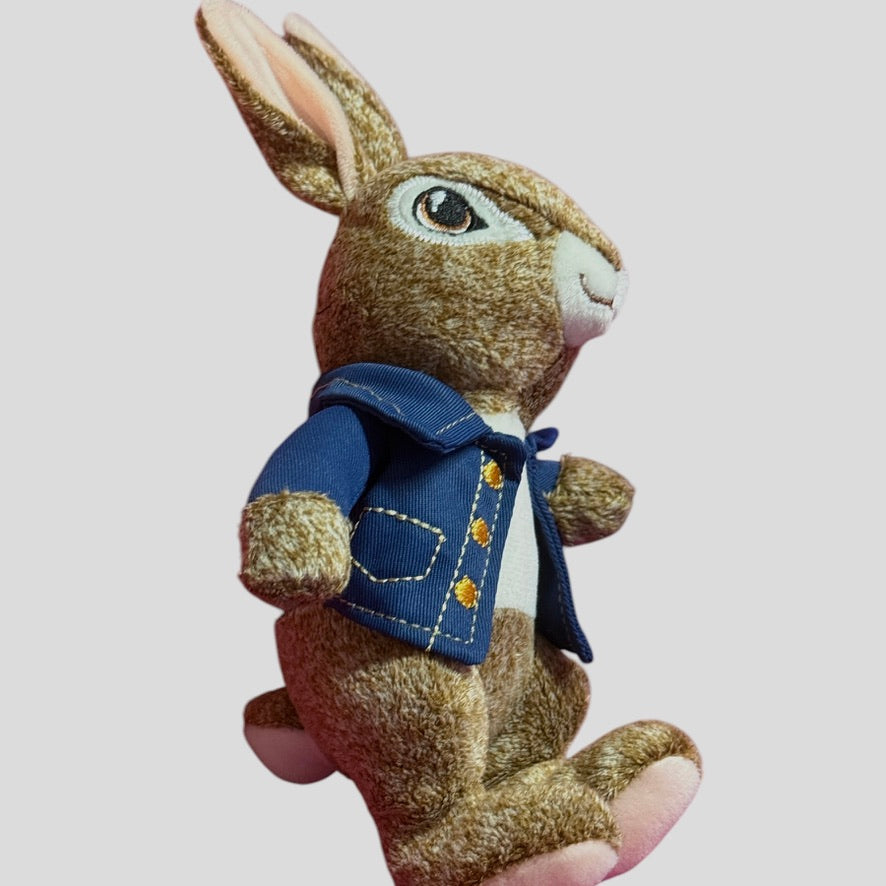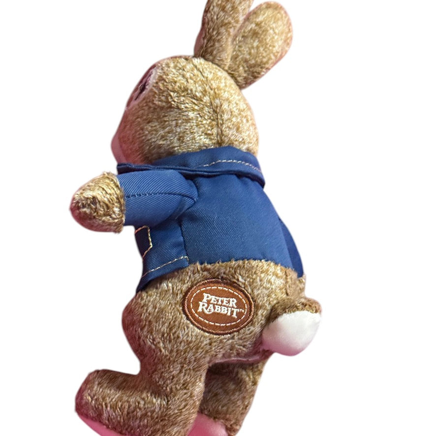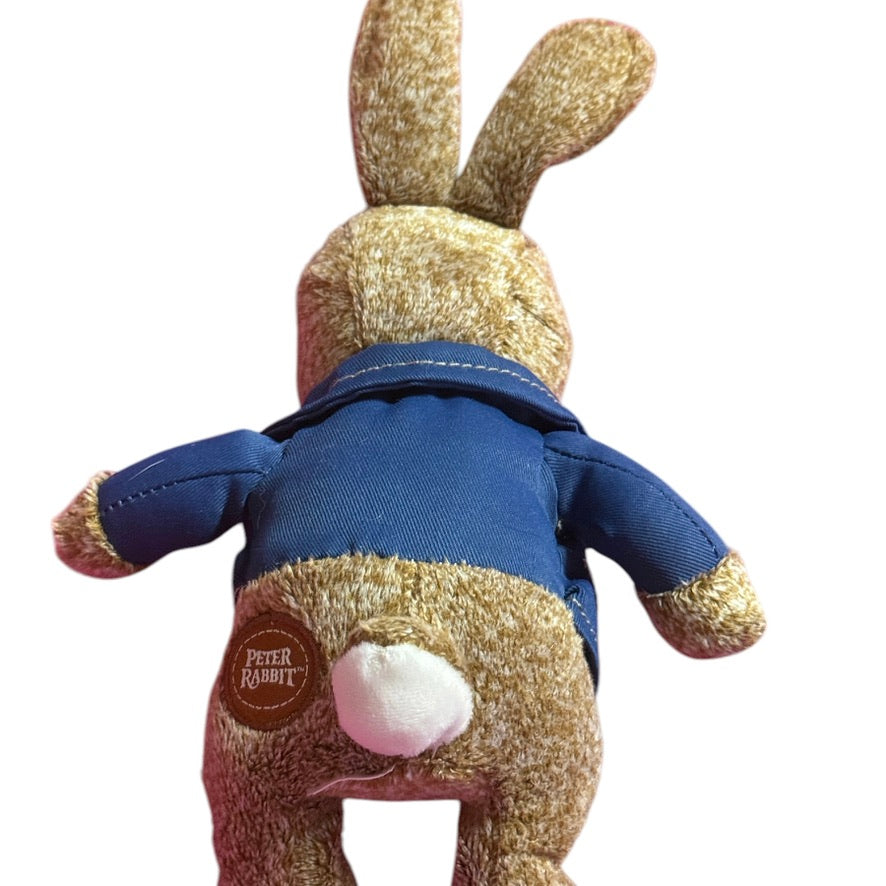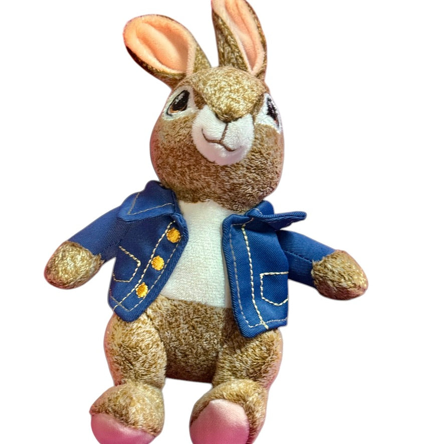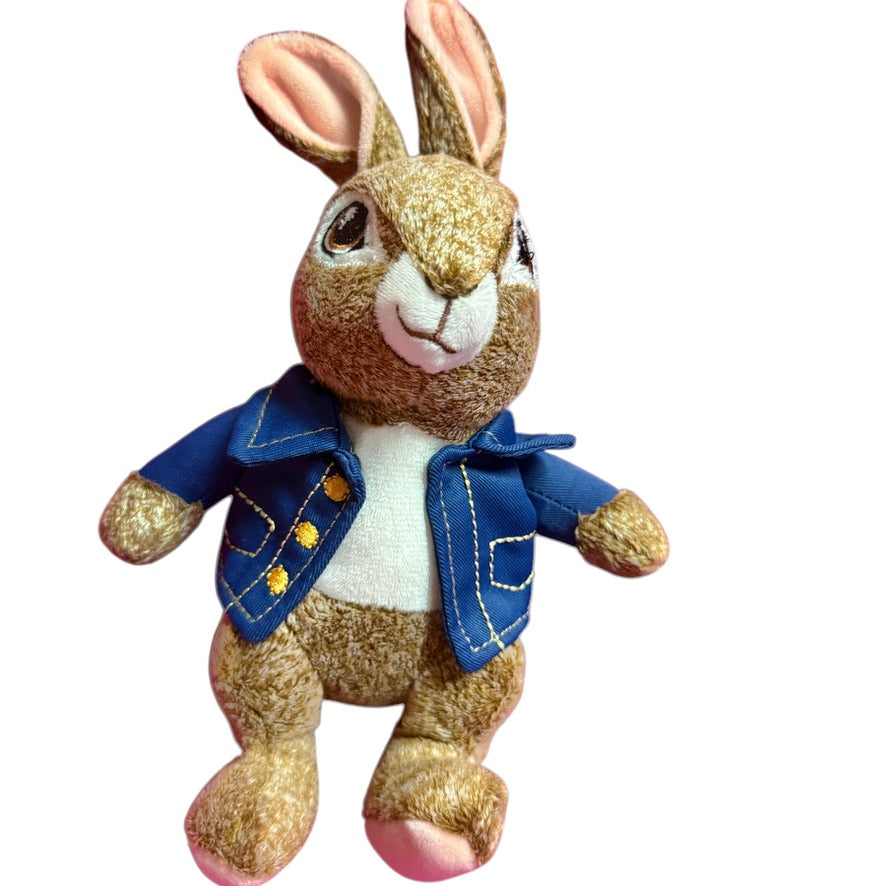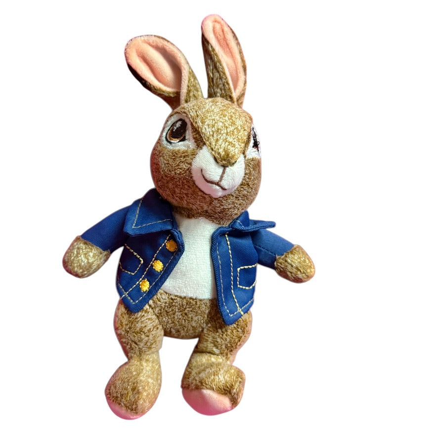 Classic Peter Rabbit, adorable 9" frosted brown plush stuffed bunny rabbit toy wearing a dapper blue jacket stitched in gold. With his embroidered eyes & blush pink ears and feet this is a very special little bunny and the perfect size for little hands! Would make a great addition to an Easter basket! Preowned, Tush Tag has been removed.
