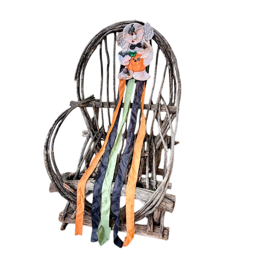 A fun Windsock with a cute combination of Halloween Motifs! Long streamers add to the fun. Preowned in good condition.