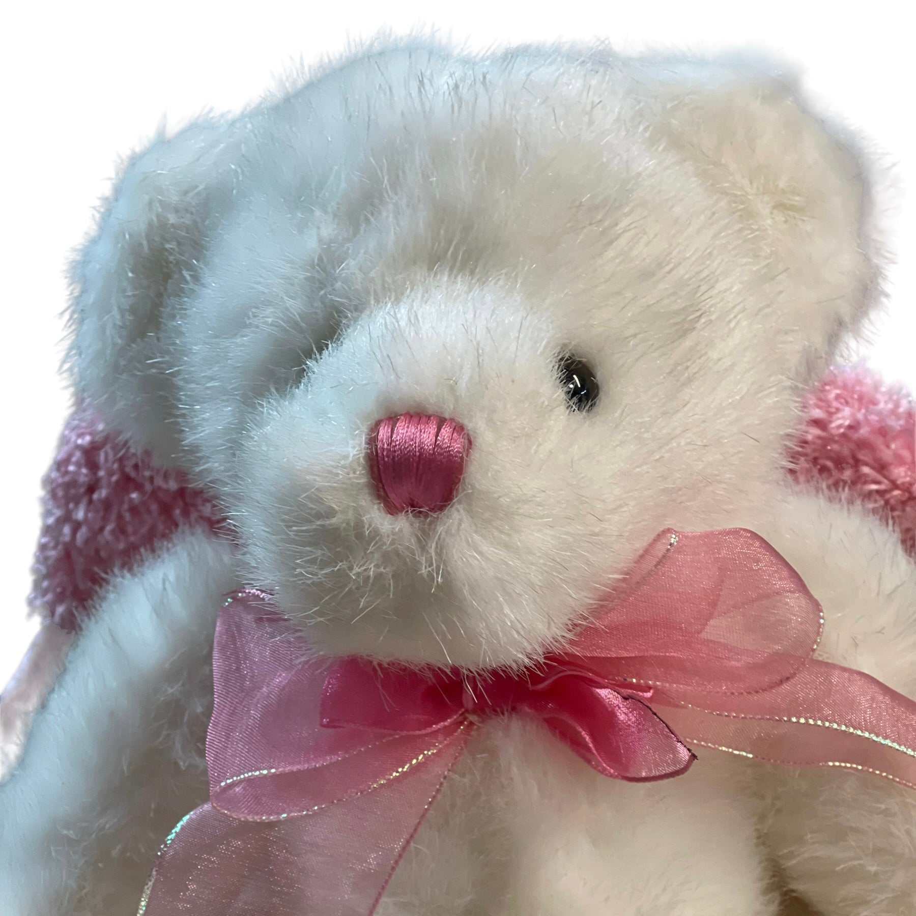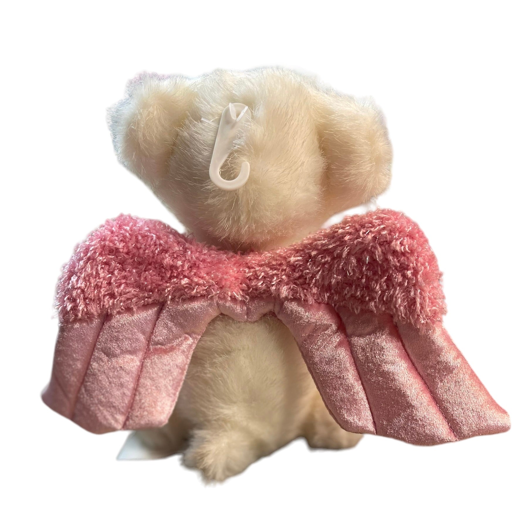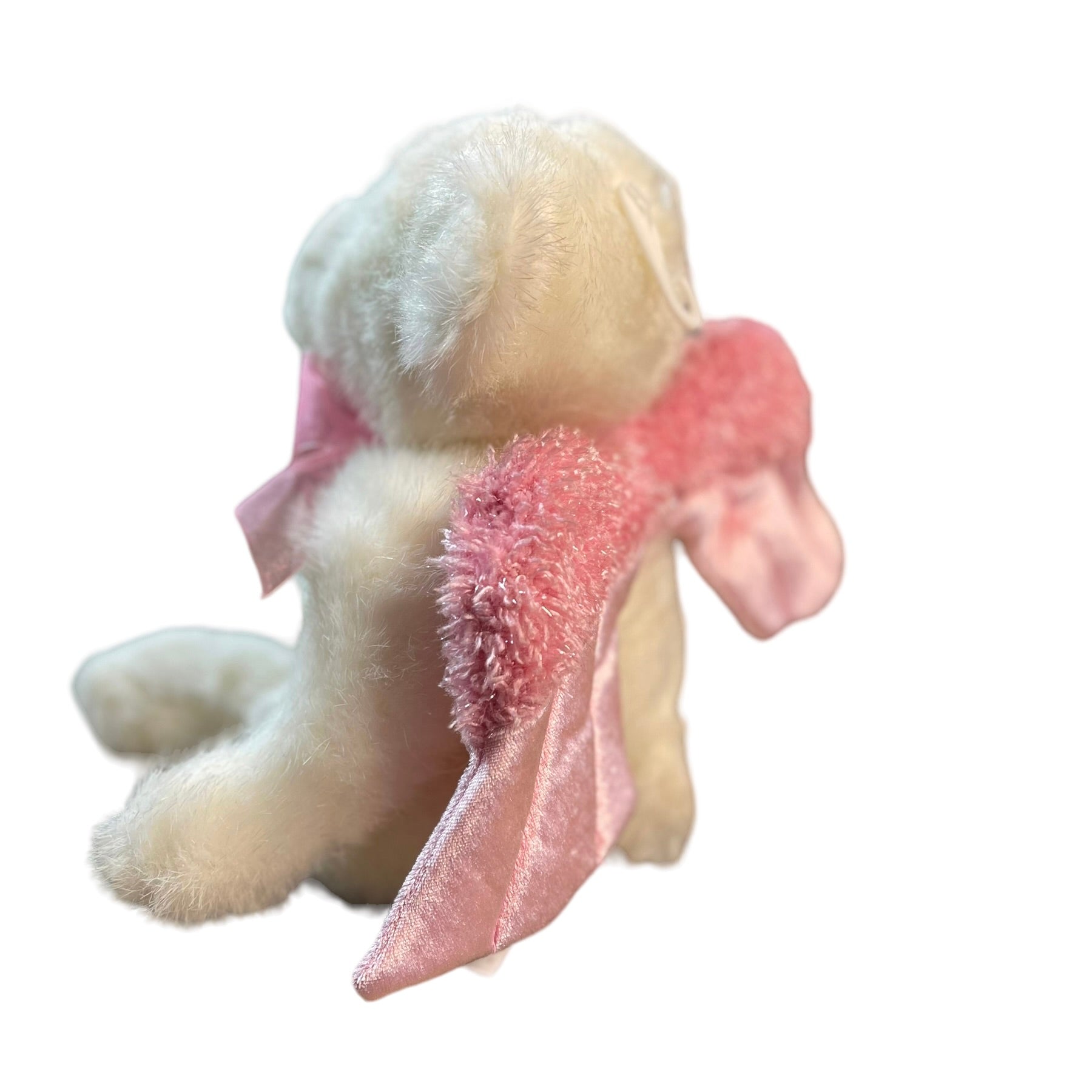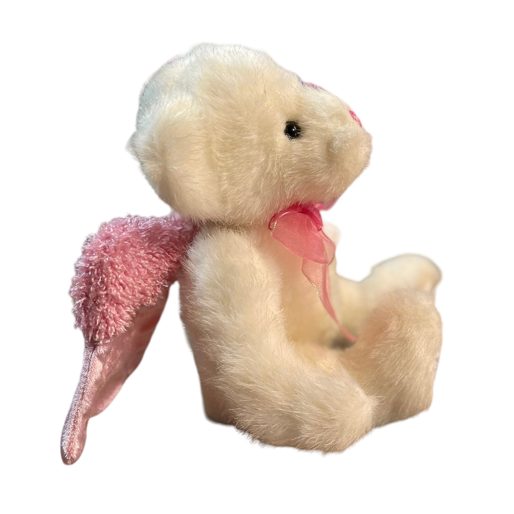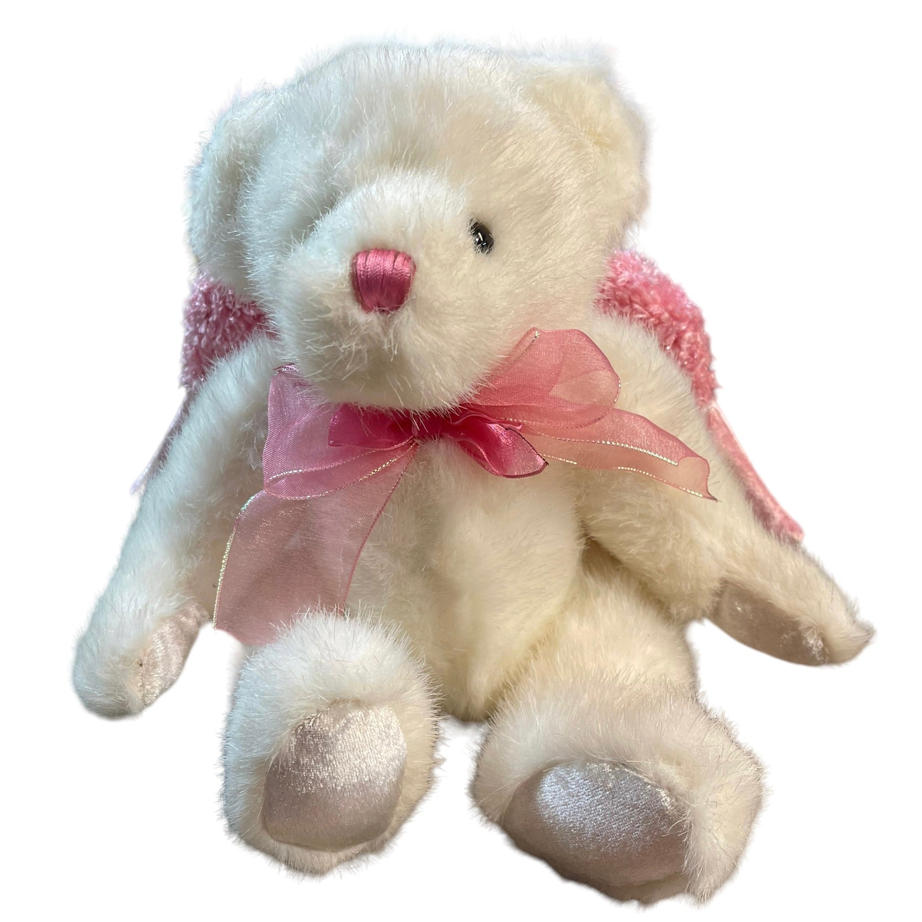 Dandee 10" White & Pink Angel Bear with Sparkly Pink Wings and Pink & white Satin accents. Great Preowned Condition. A beautiful little stuffed animal toy or collectible.