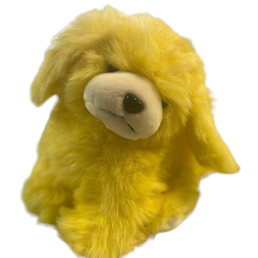 Fluffy and cuddly, this adorable, bright yellow stuffed toy puppy dog is a wonderful addition to any collection. Accented by a white snout and foot pads, with as bright black bead eyes and pert little nose, this treasure is in excellent preowned condition.
