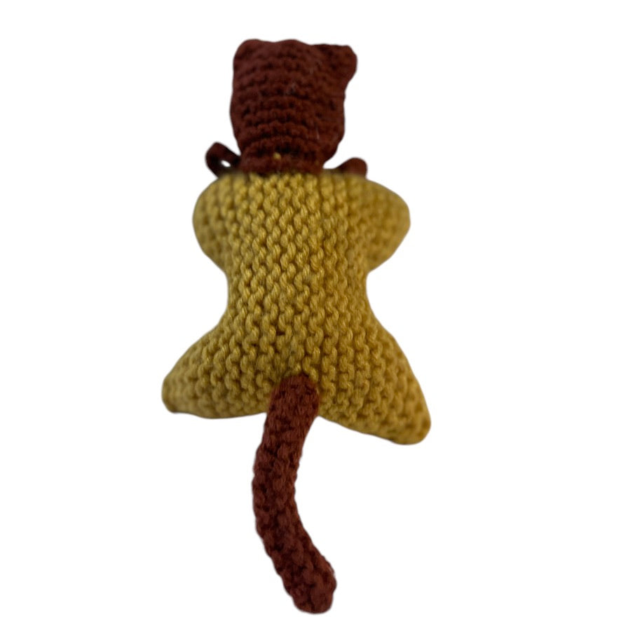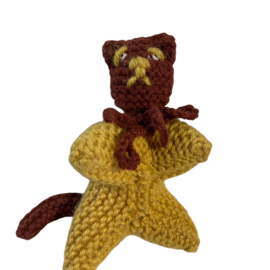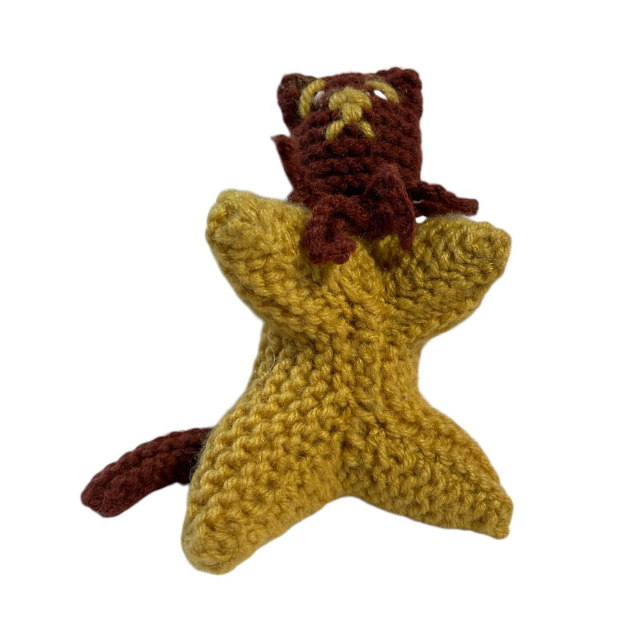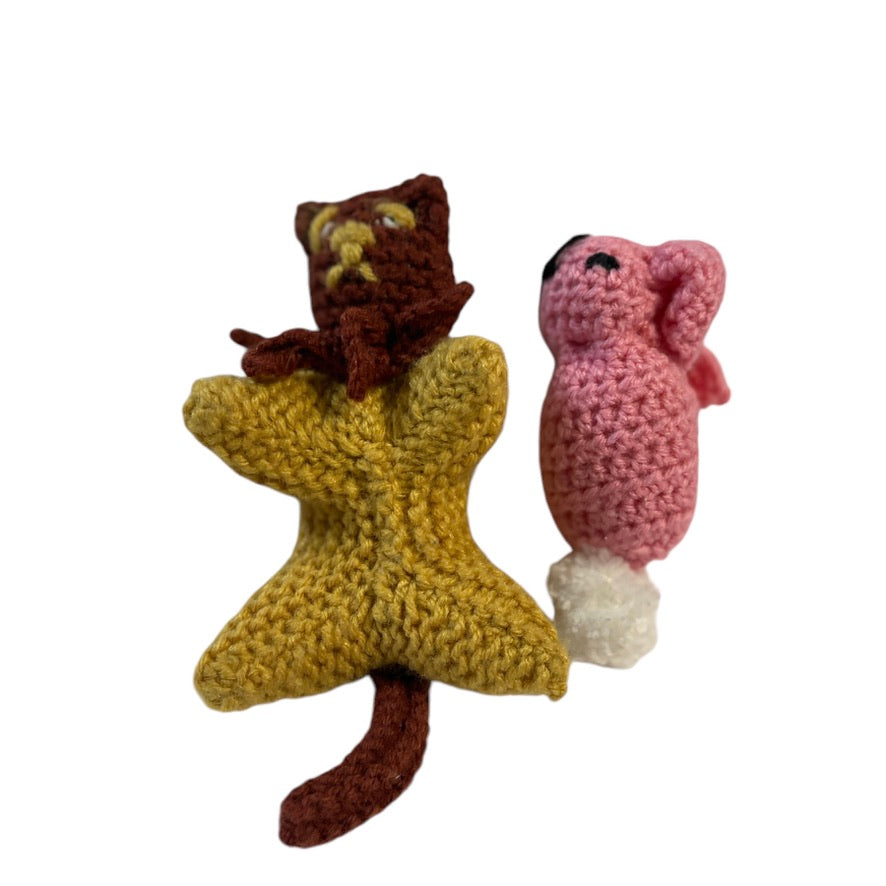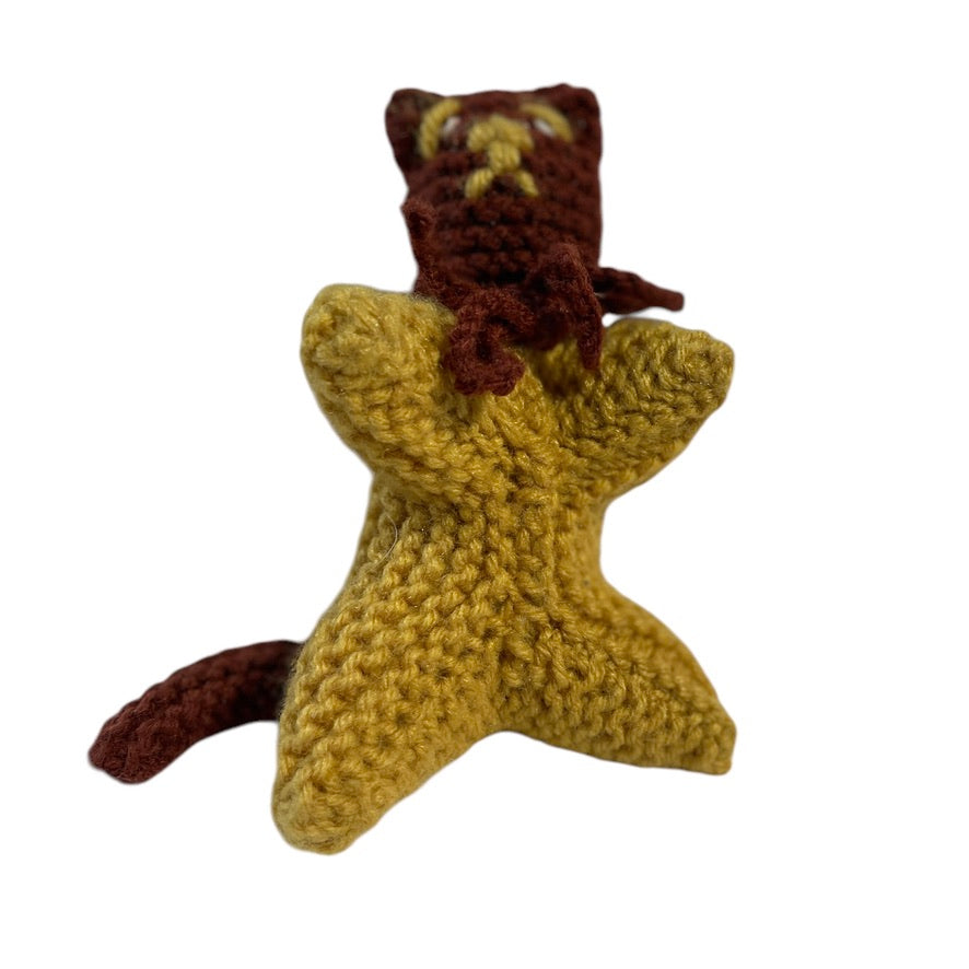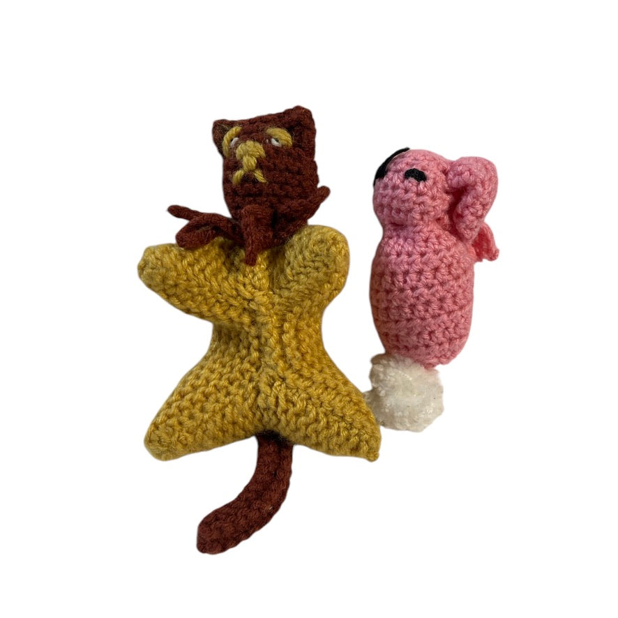 Derpy Hand Knit Gold & Brown Kitty Cat and Pink Knit Bunny with a White Fluffy Tail