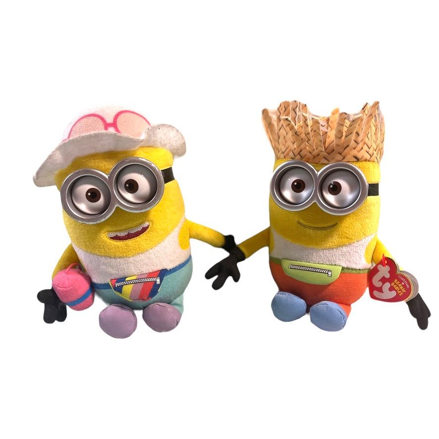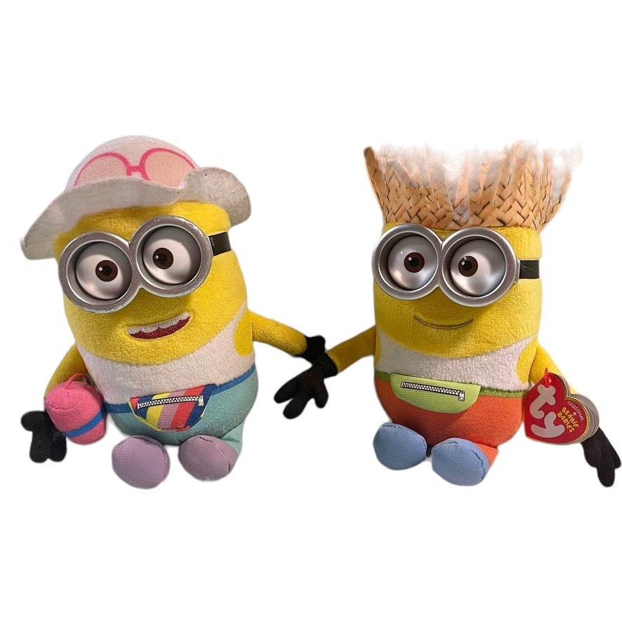 Despicable Me 3, 9" Dave and Jerry TY Beanie Baby Tourists in Great Preowned Condition