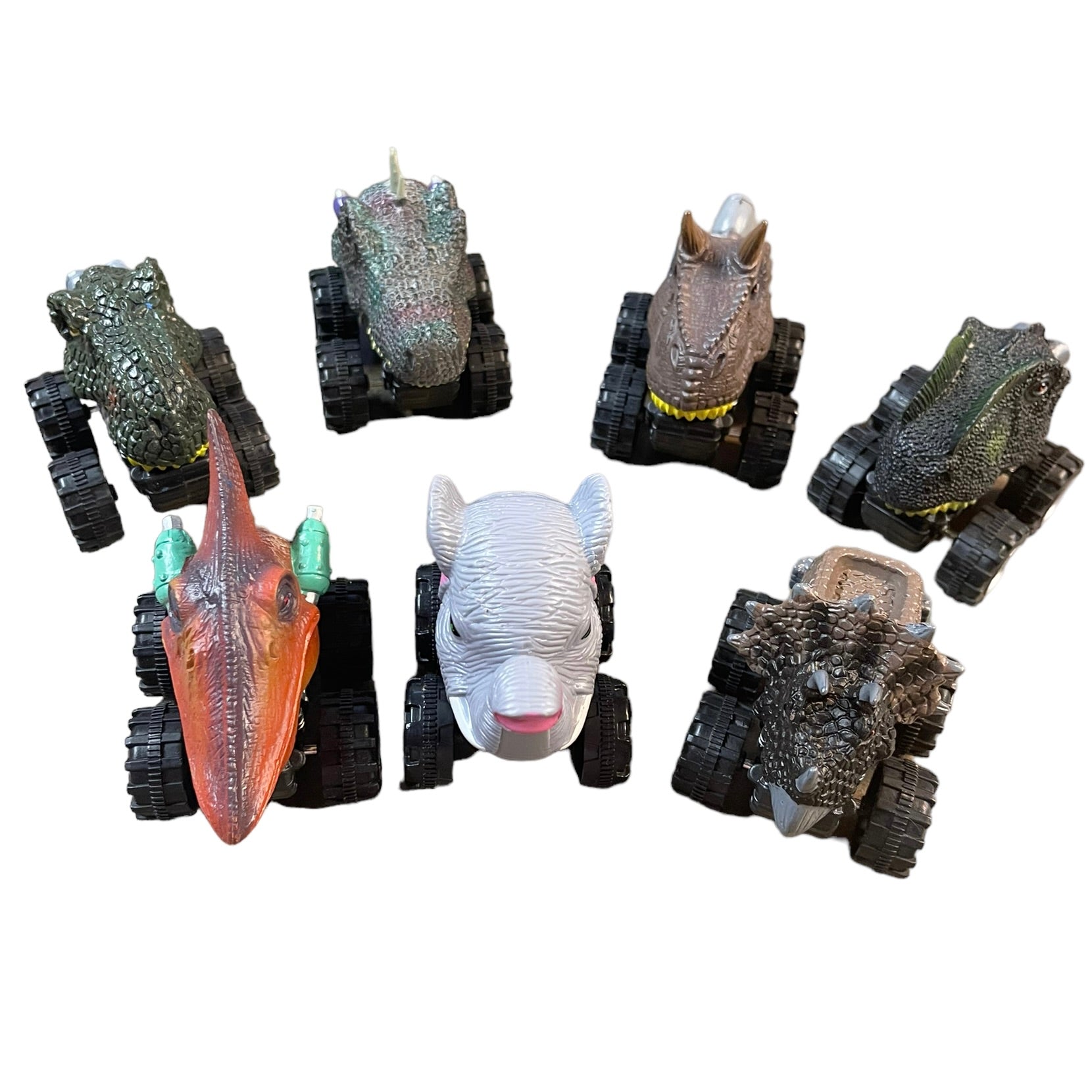 Dinosaur Head / Wild Zoomies Monster Pull Back Fast Action Mini Toy Trucks Lot of 7