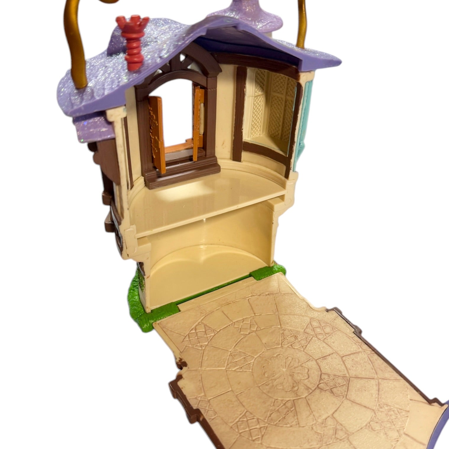 Cute little Disney Tower from Tangled, window shades open in the front. and the back of the house opens to a cobbled backyard. No accessories Very cute!
