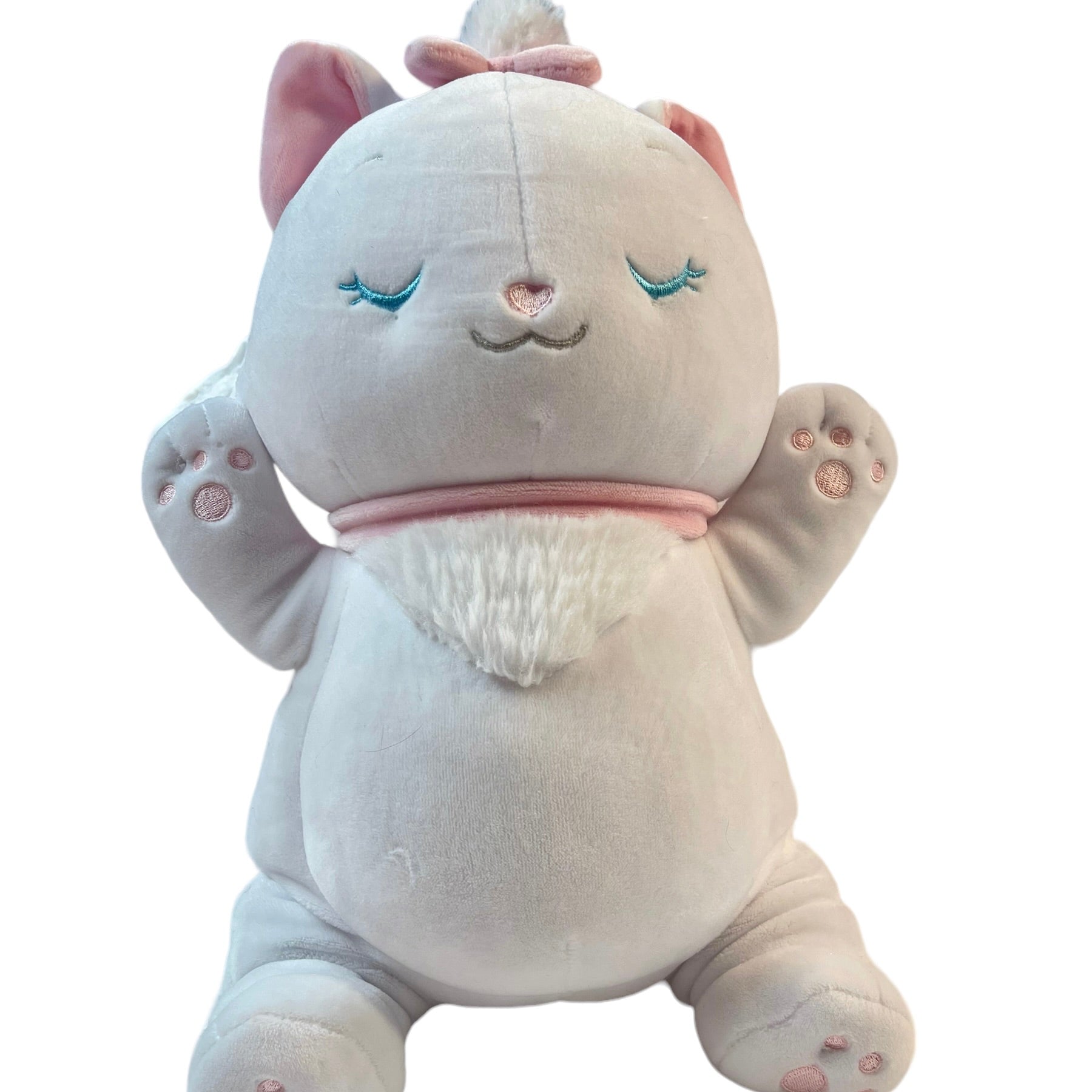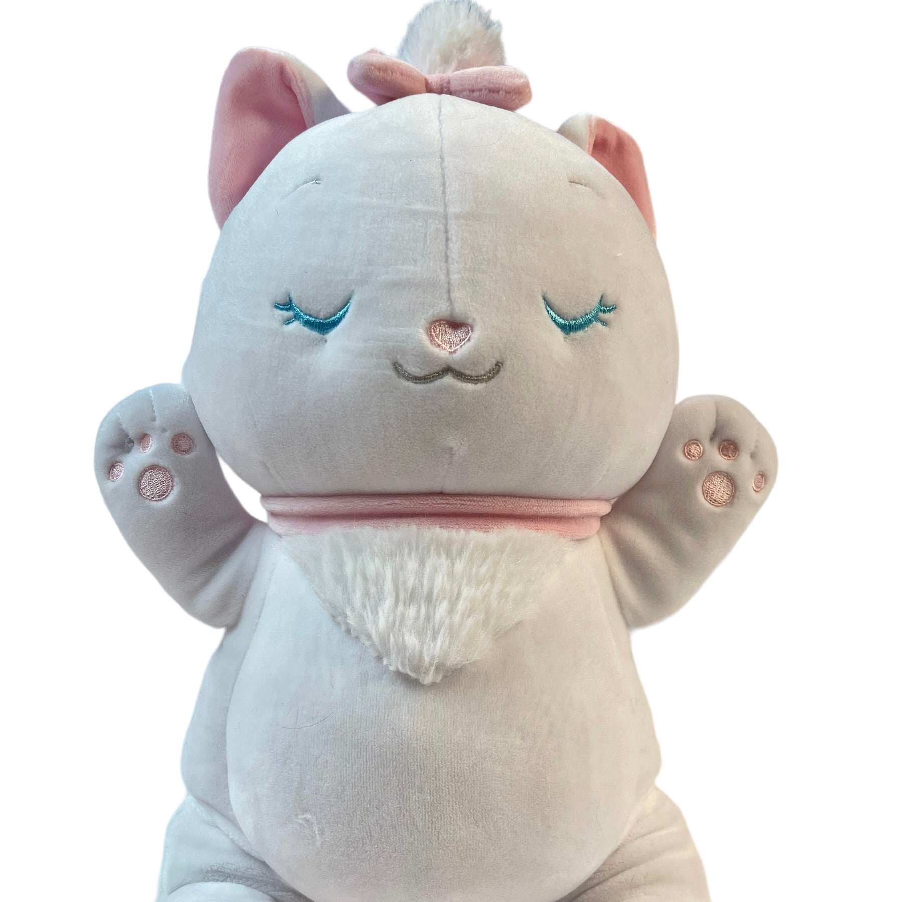 Beautiful Marie, a Disney Cuddleeze Plush Ultra Soft Toy. 14 pillowy inches to cuddle and enjoy. White with blue embroidered sleepy eyes and a sweet pink nose and accents, with her signature oversize pink bow on her back. A very Special Stuffed Animal.